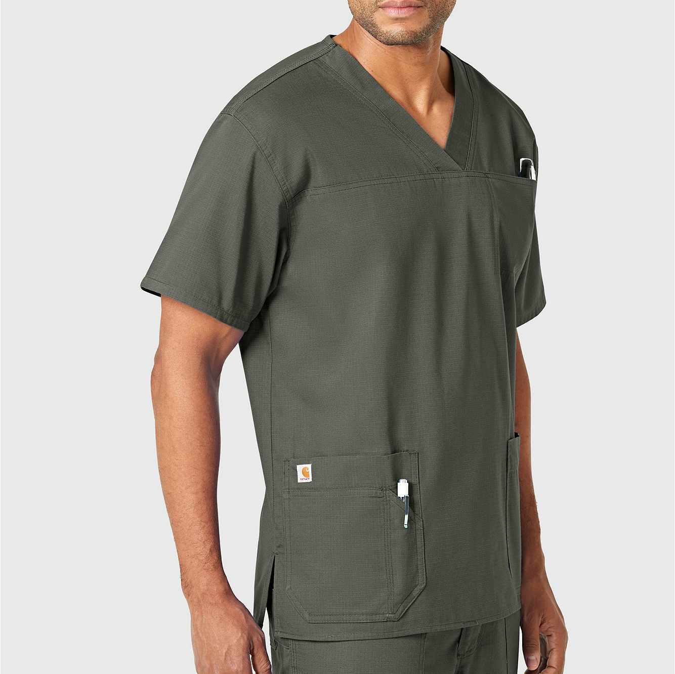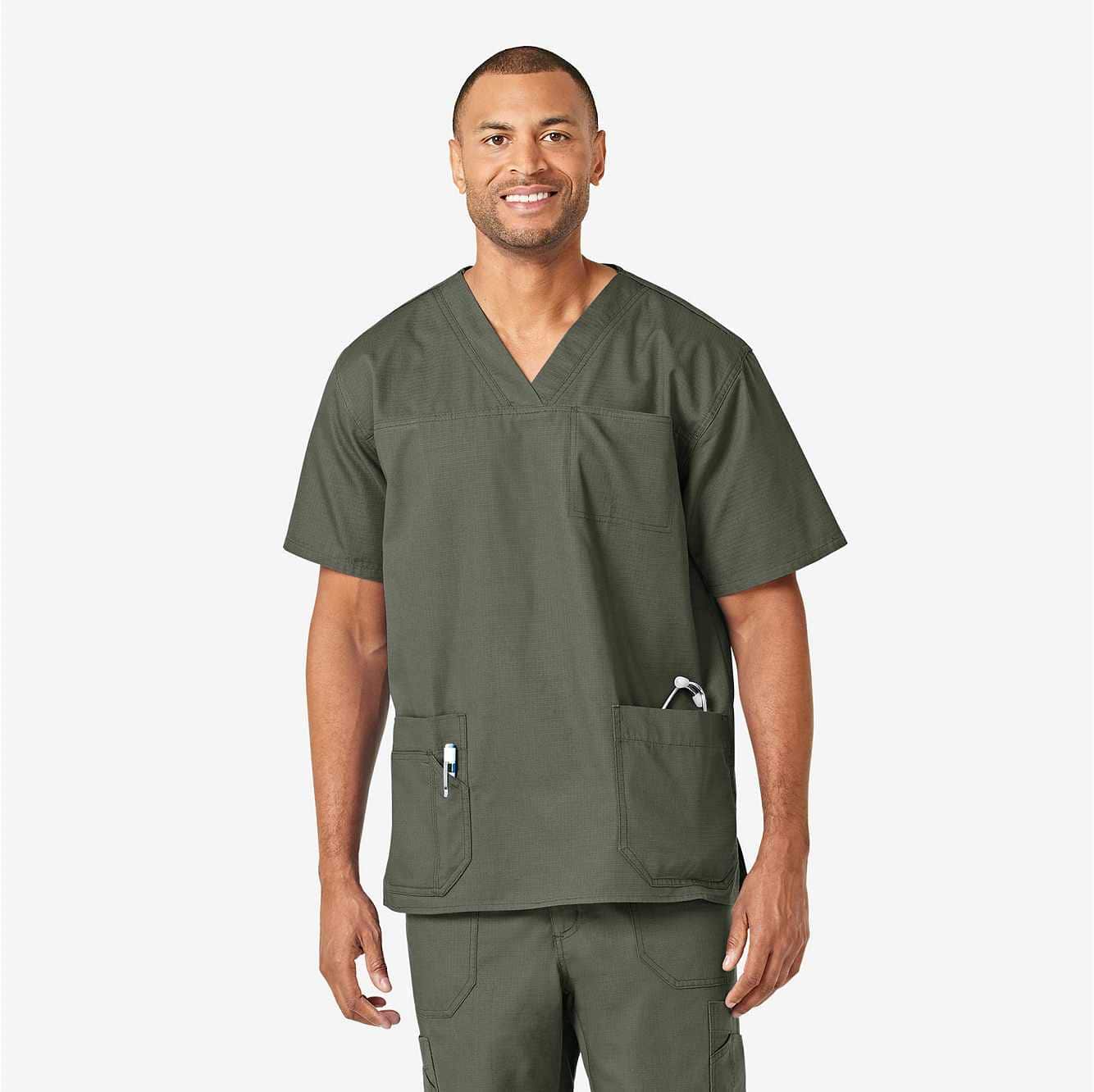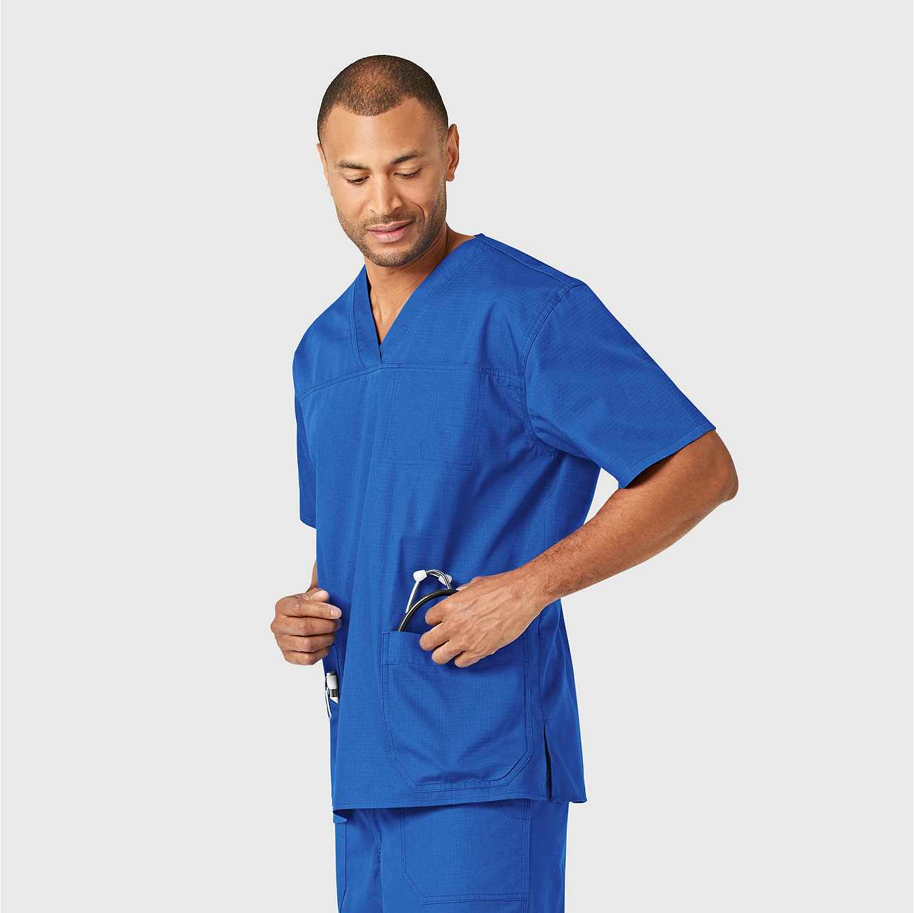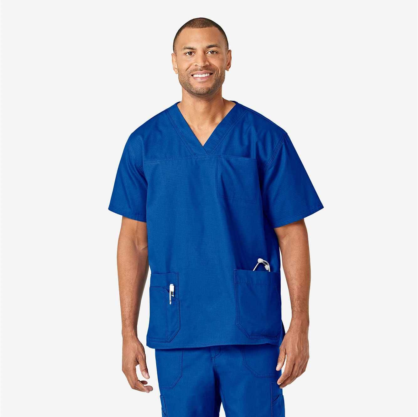 Stay organized throughout your shift in this men's scrub top. A chest pocket complements two front patch pockets to keep everything from your pen to your phone within easy reach. The ripstop cotton-blend build features a back pleat and a split hem for a full range of mobility for reaching, lifting, and bending on the job