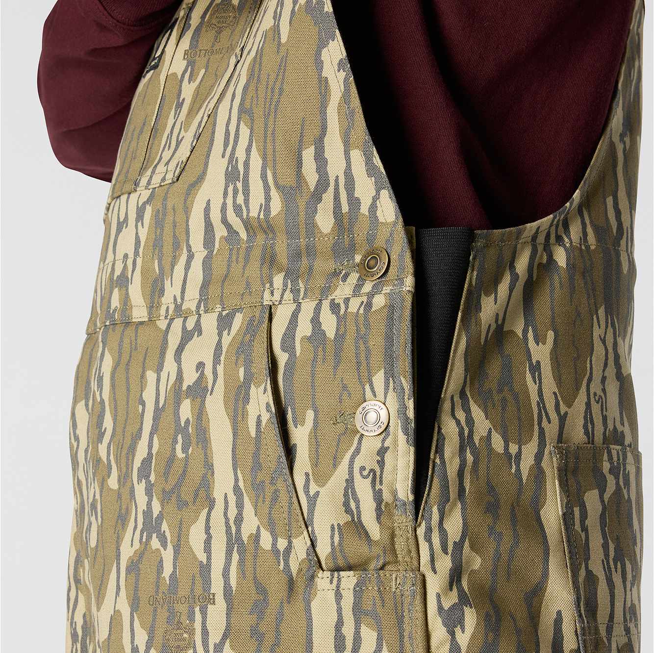 Carhartt durability meets insulated warmth in these men's insulated camo overalls. A combination of built-in flex and an insulated and wind-resistant build stands up to hard work in cold, damp weather. Synthetic insulation in the legs seals in heat without bulk. A seam-to-seam, chap-style front makes them easy to pull on and off over layers. A loose fit includes extra room in the seat and thighs for easy movement.