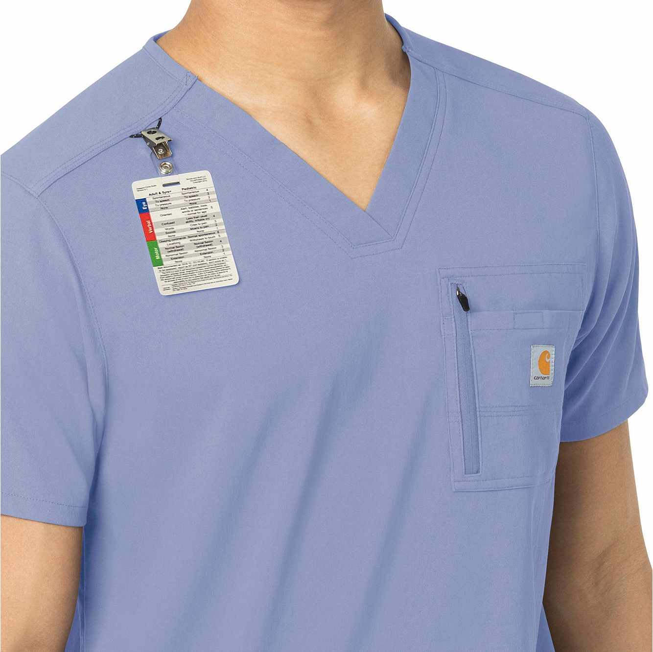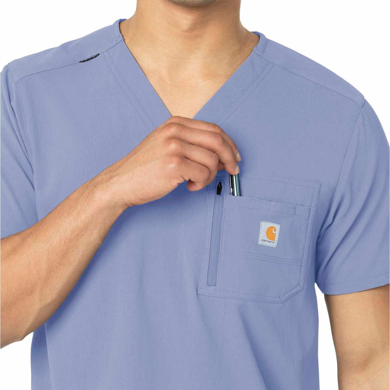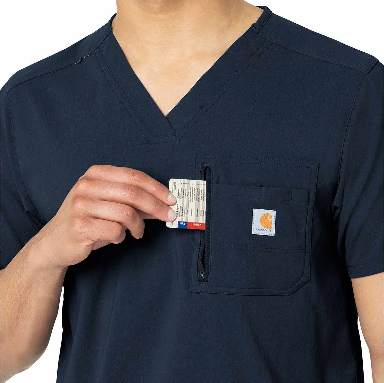 Stay connected and ready for the demands of your shift in this men's tuck-in V-neck scrub top. The nylon/spandex blend is built for mobility and eco-friendly durable water repellency. Easy access triple chest pocket with zipper and hook-and-loop closures keep items close.