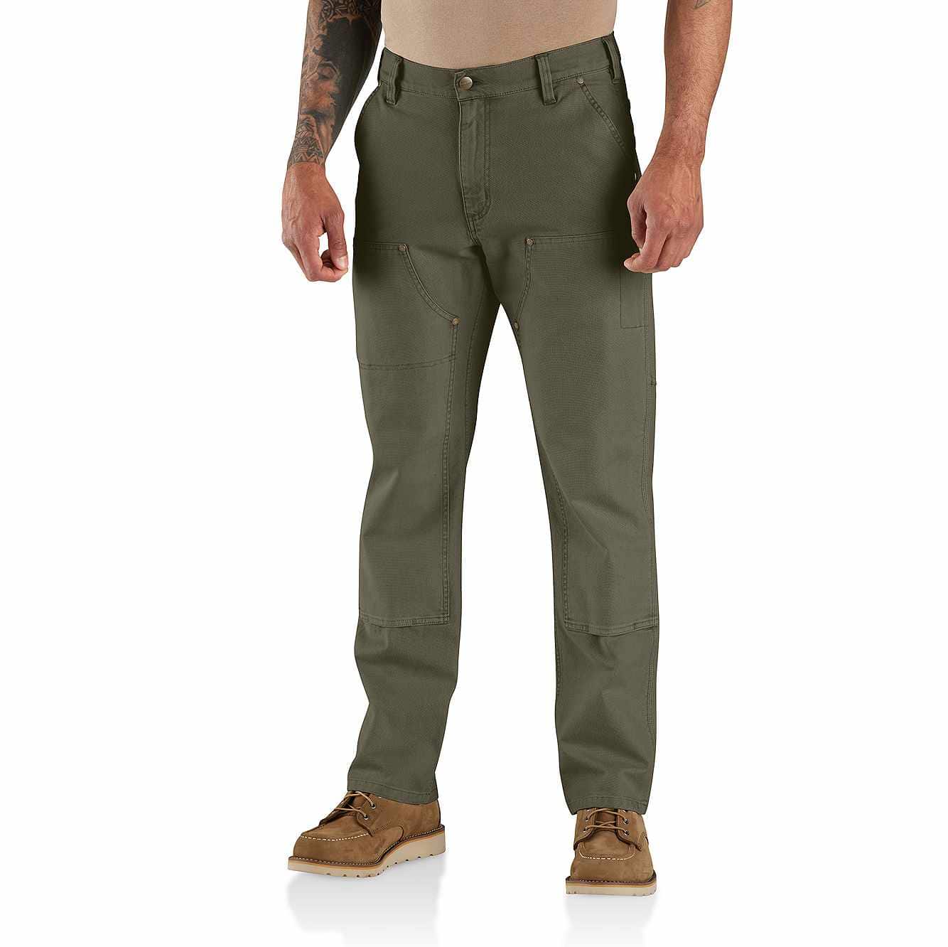 An updated version of our iconic B01, these men's double-front utility pants let you move without restriction. They're made from durable duck with built-in flex and garment-washed for a unique look. The double-layer front leg panel adds durability and accommodates knee pads. Multiple pockets and a utility loop keep essential tools close at hand.