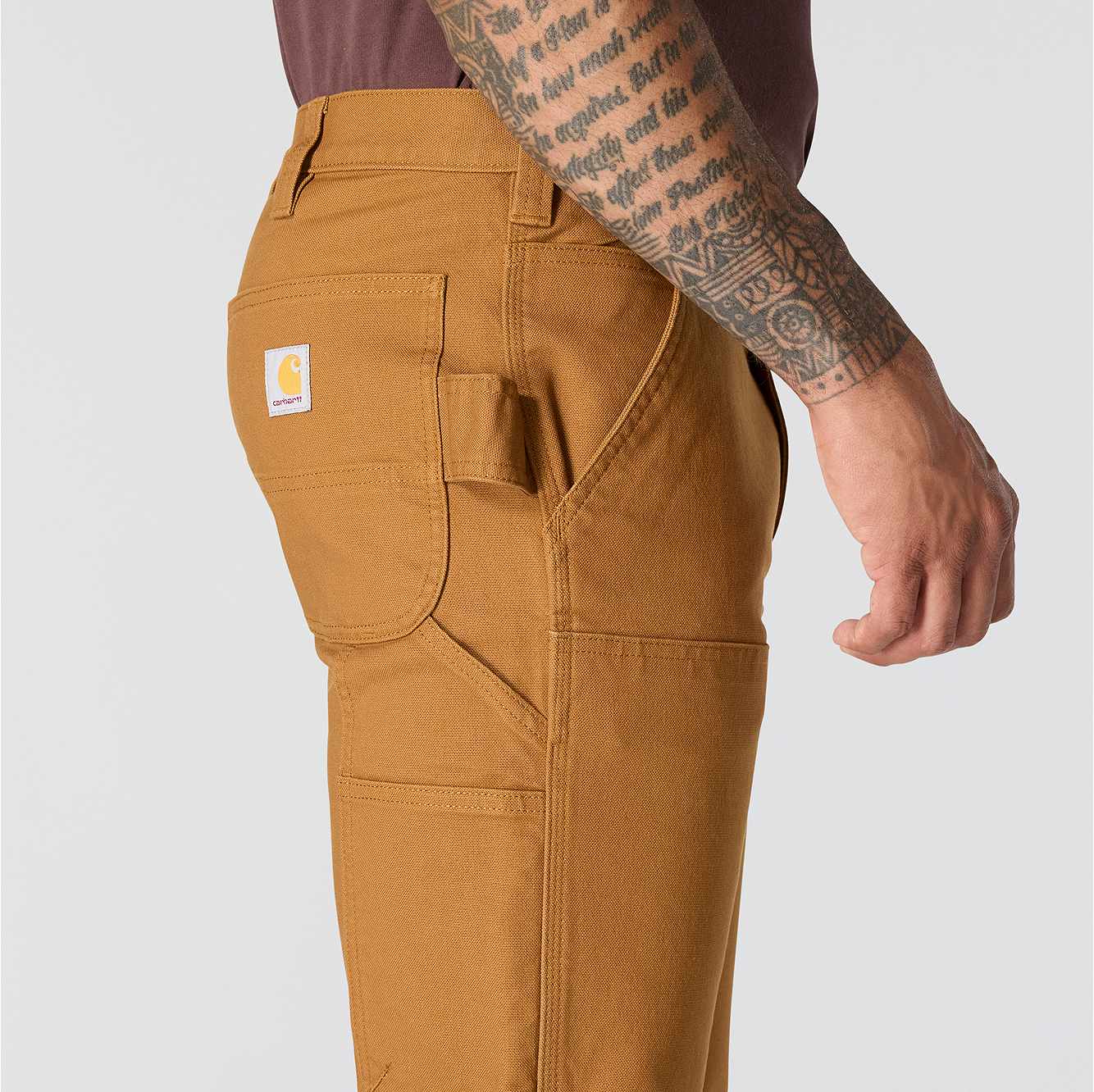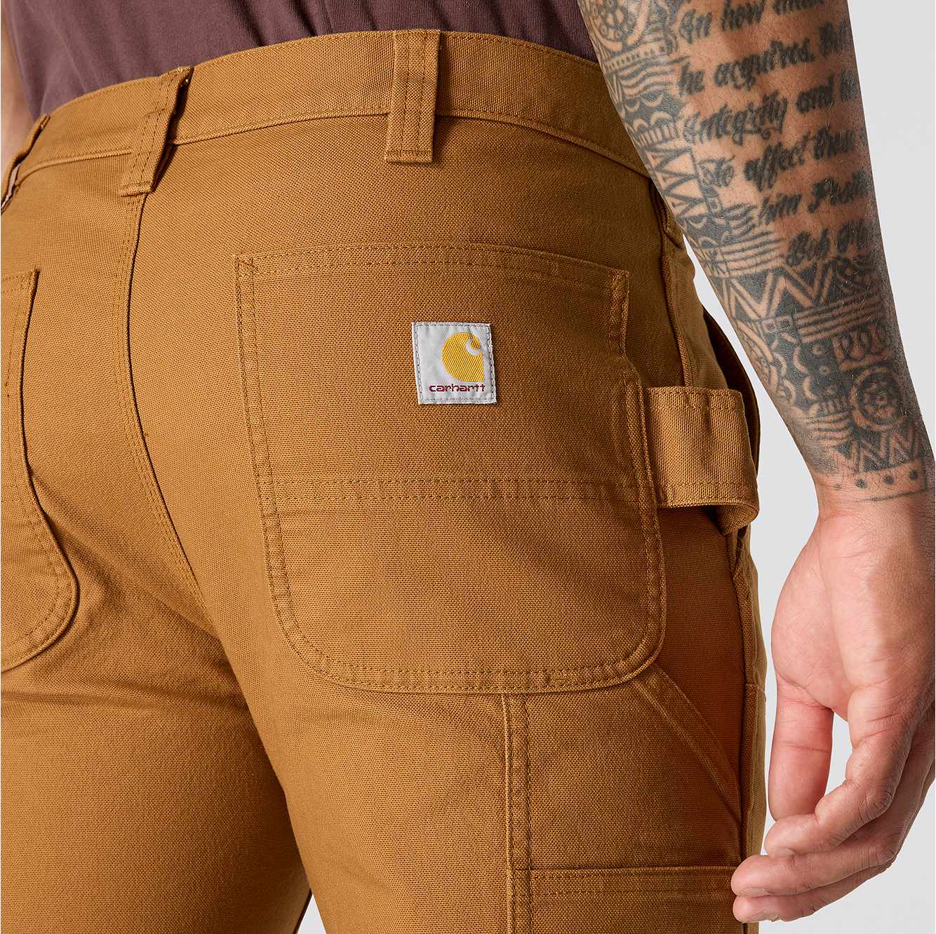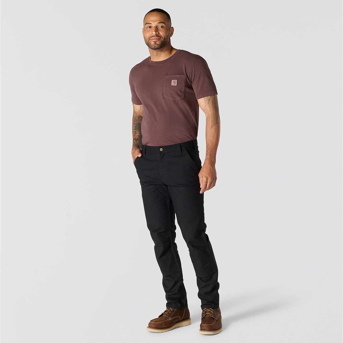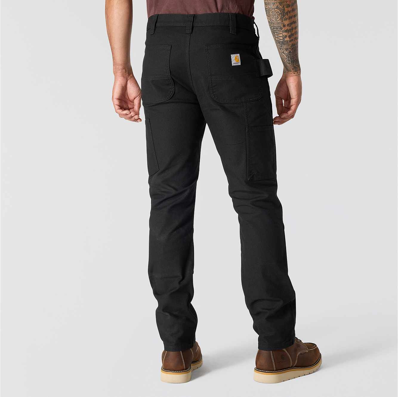 Carhartt double-knee pants are constructed for durability and comfort to get you through long days on the job. These double-knee work pants feature heavyweight cotton duck material with enough flex to kneel, squat, and climb easily. They're compatible with Carhartt knee pads for additional comfort and durability and include plenty of pockets for stashing tools. Fitted through the hips and thigh, this fit has a slimmer cut and cuffs that fit over most work boots.
