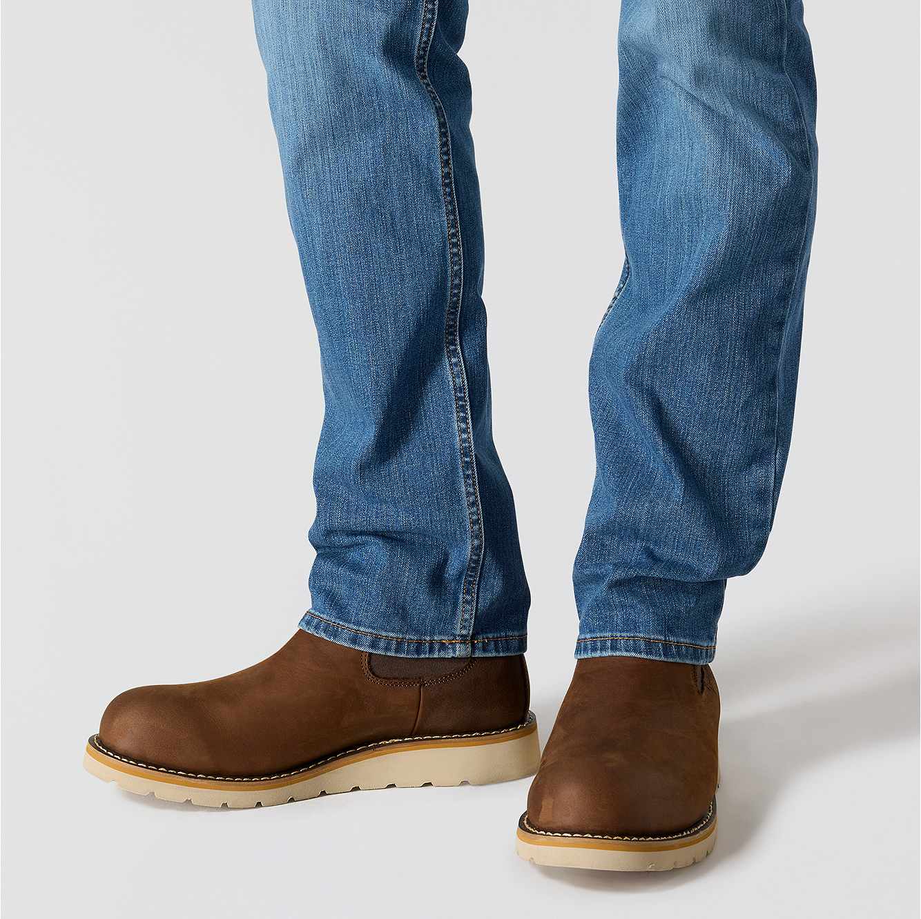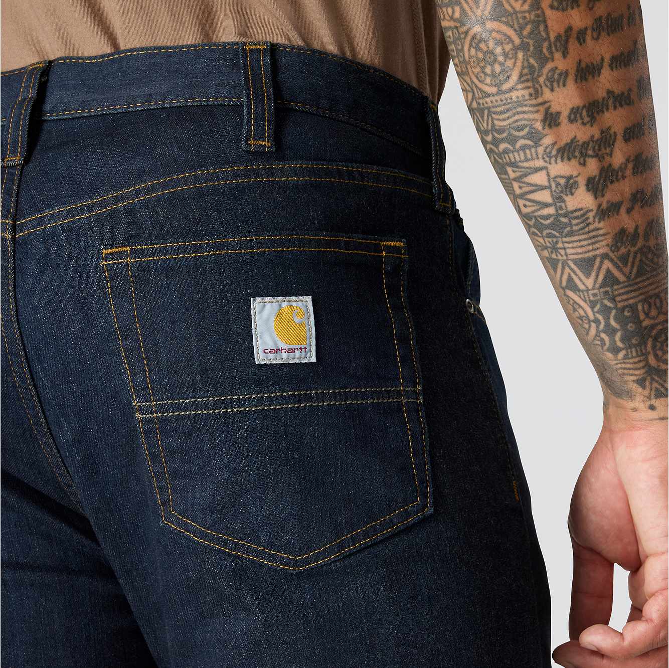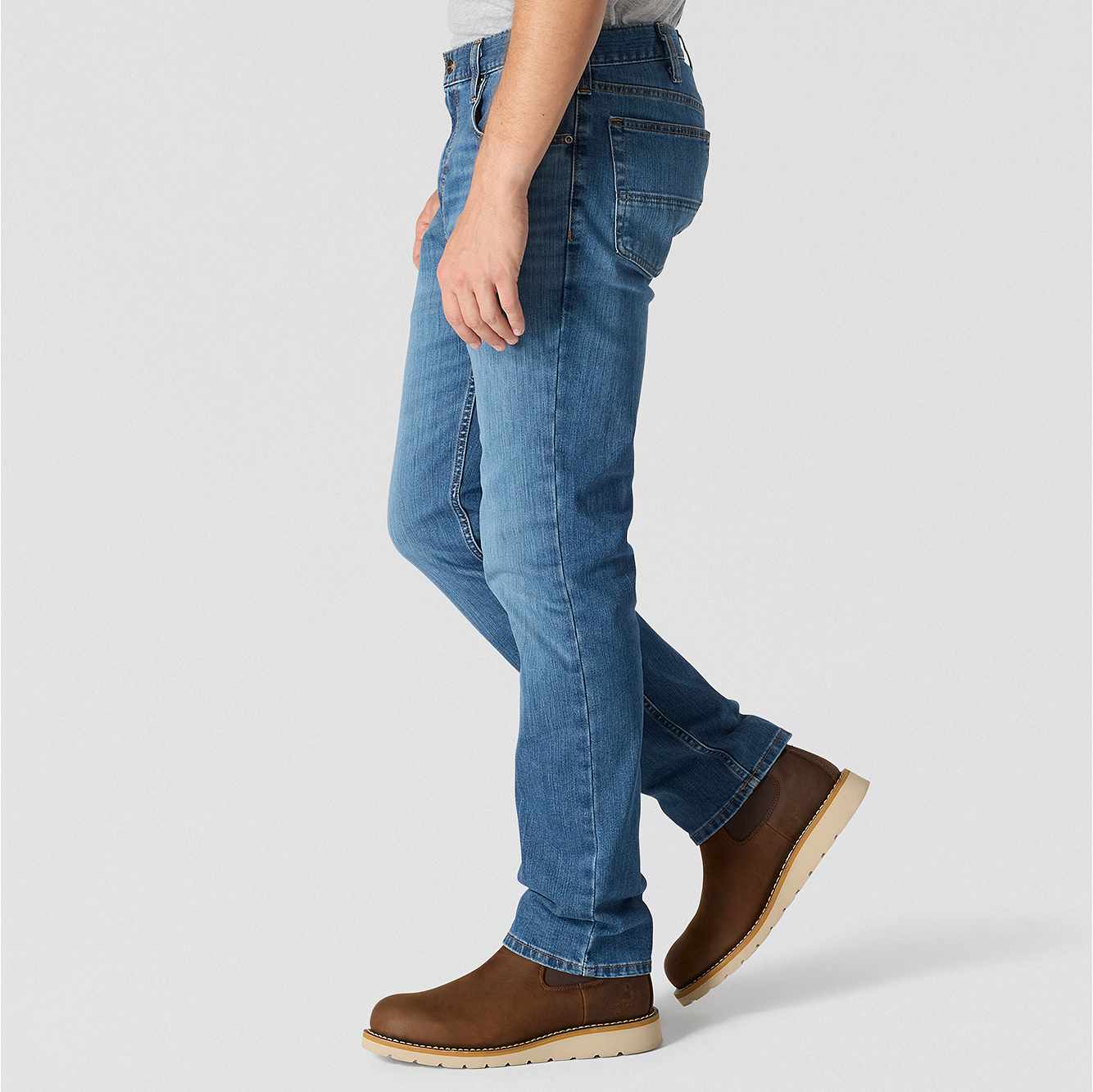 Long hitches or 14-hour days. These men's jeans can stand up to almost anything. They're made of our most durable, abrasion-resistant denim with enough stretch for easy movement. Fitted through the hips and thigh, this fit has a slimmer cut and cuffs that fit over most work boots.