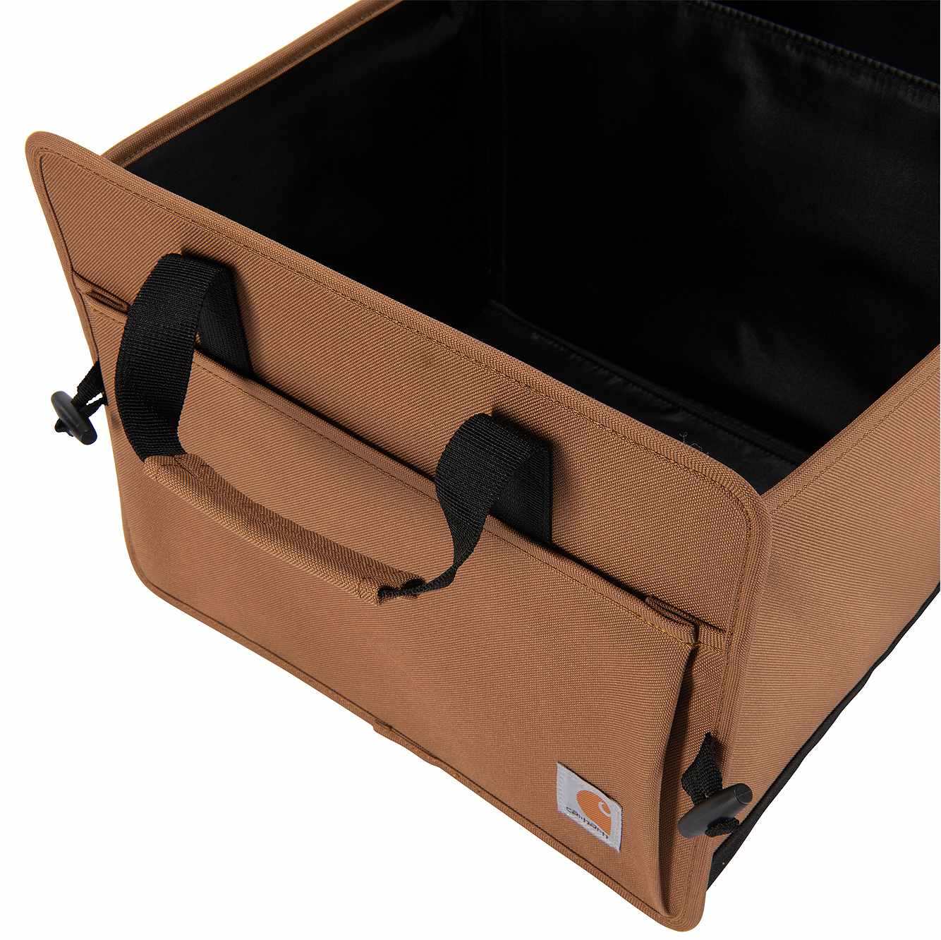 Keep groceries, camping equipment or emergency supplies neat and tidy with this Carhartt cargo organizer. The collapsible organizer is made of sturdy, water-repellent fabric and fits in your car's trunk or cargo area. Stretch pockets on one side plus pockets on both ends add 6 pockets to its capacity.