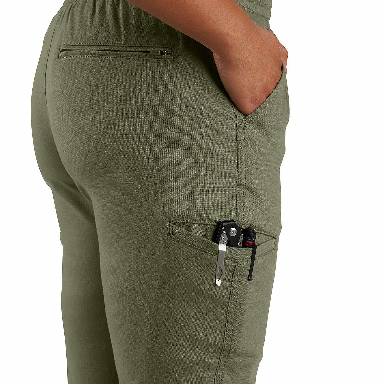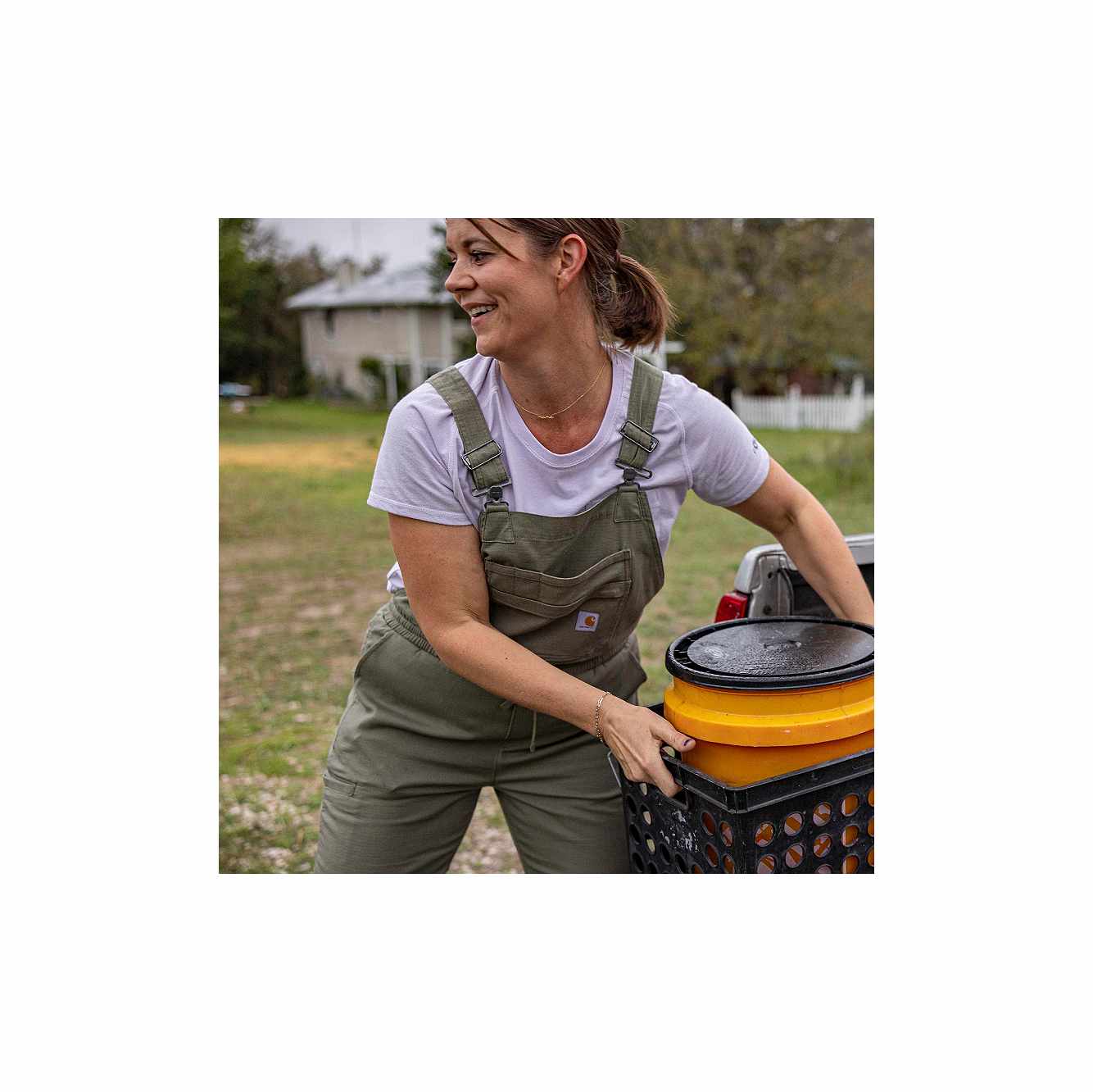 Construction site or cramped attic, you'll stay cool and comfortable in these women's overalls. They have all the durability you expect from the Carhartt name, but they're made for warmer weather. A ripstop cotton blend fights sweat and dries fast, plus they're built with extra flex for easy movement. A multi-compartment bib pocket keeps small items organized.