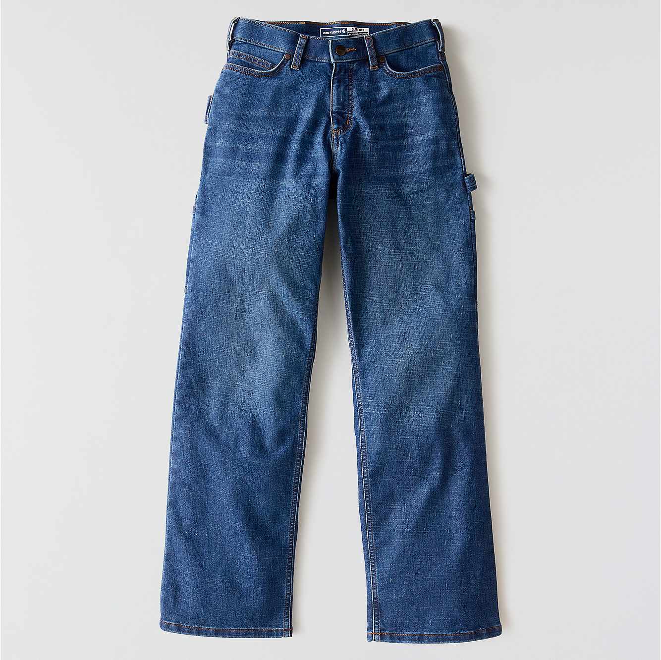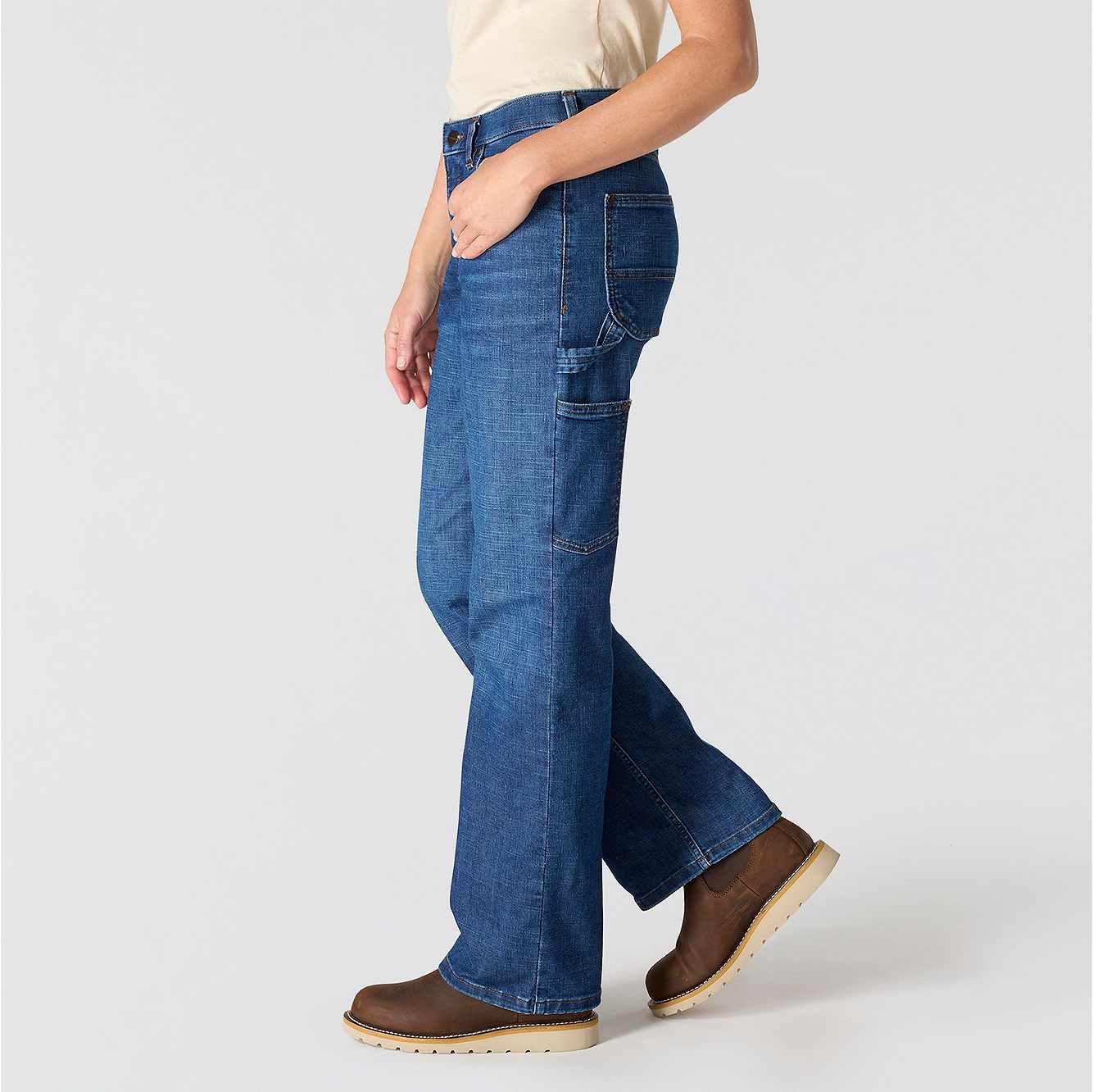 Meet the Carpenter Jean. Built with cotton rich fabric that stretches and recovers for all day comfort. With a mid-rise that sits just below the waist and a loose leg opening, these women’s jeans give you a roomier fit in the hip and thigh, so you have the freedom to move how you need, when you need. Plus, it’s called all the tool and utility pockets you need to get the job done.