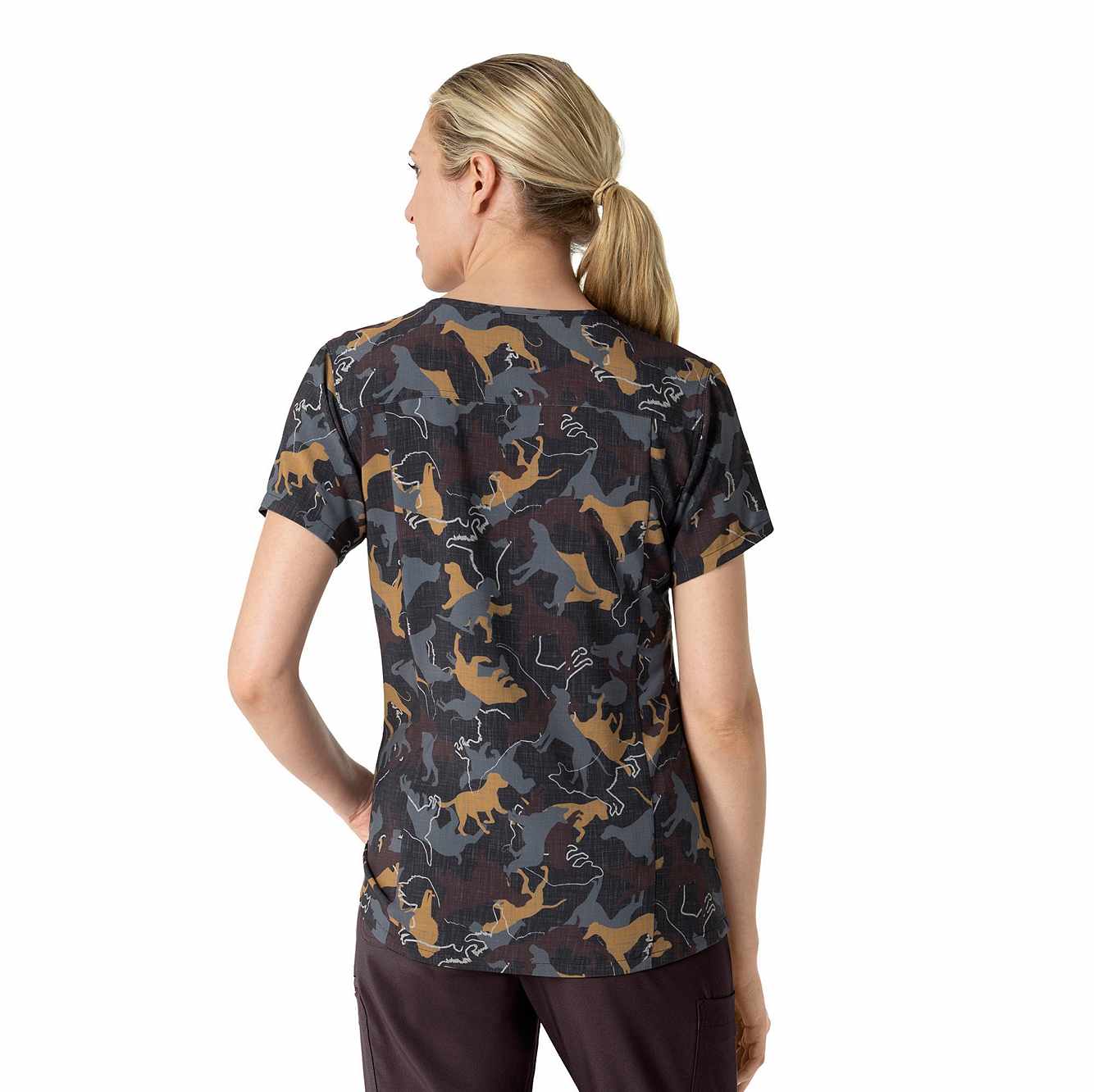 The Carhartt Women's V-Neck Print scrub top stays with the trend offering new and exciting prints scrub tops. This style offers all of the extras you expect from Carhartt with rugged durability yet a comfortable scrub top from a brand you can trust. The Polyester blend fabric offers lasting comfort and style while the pockets keep you organized and prepared for the task at hand.