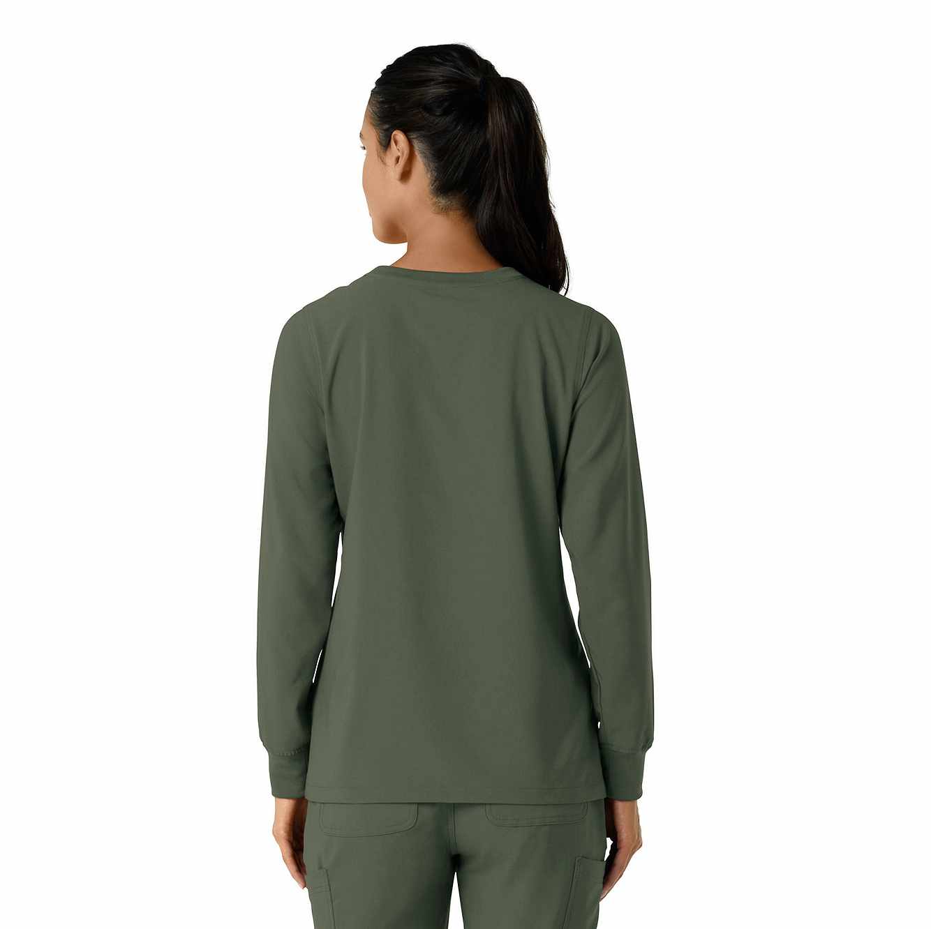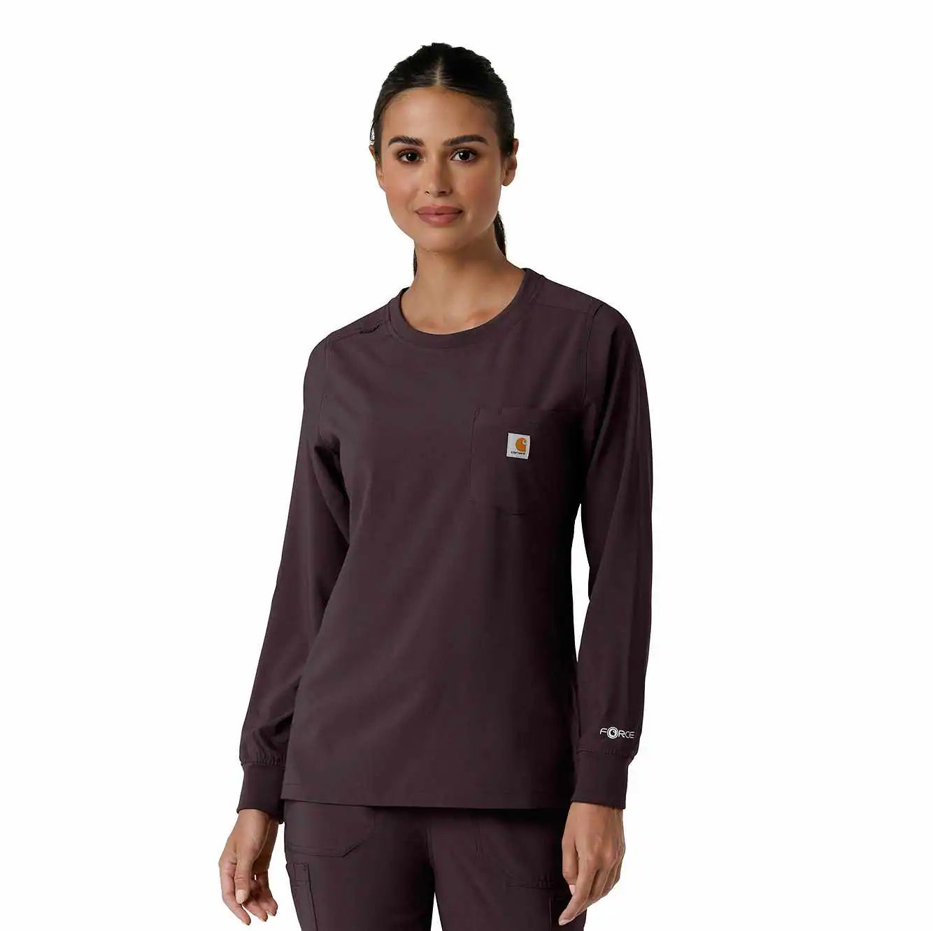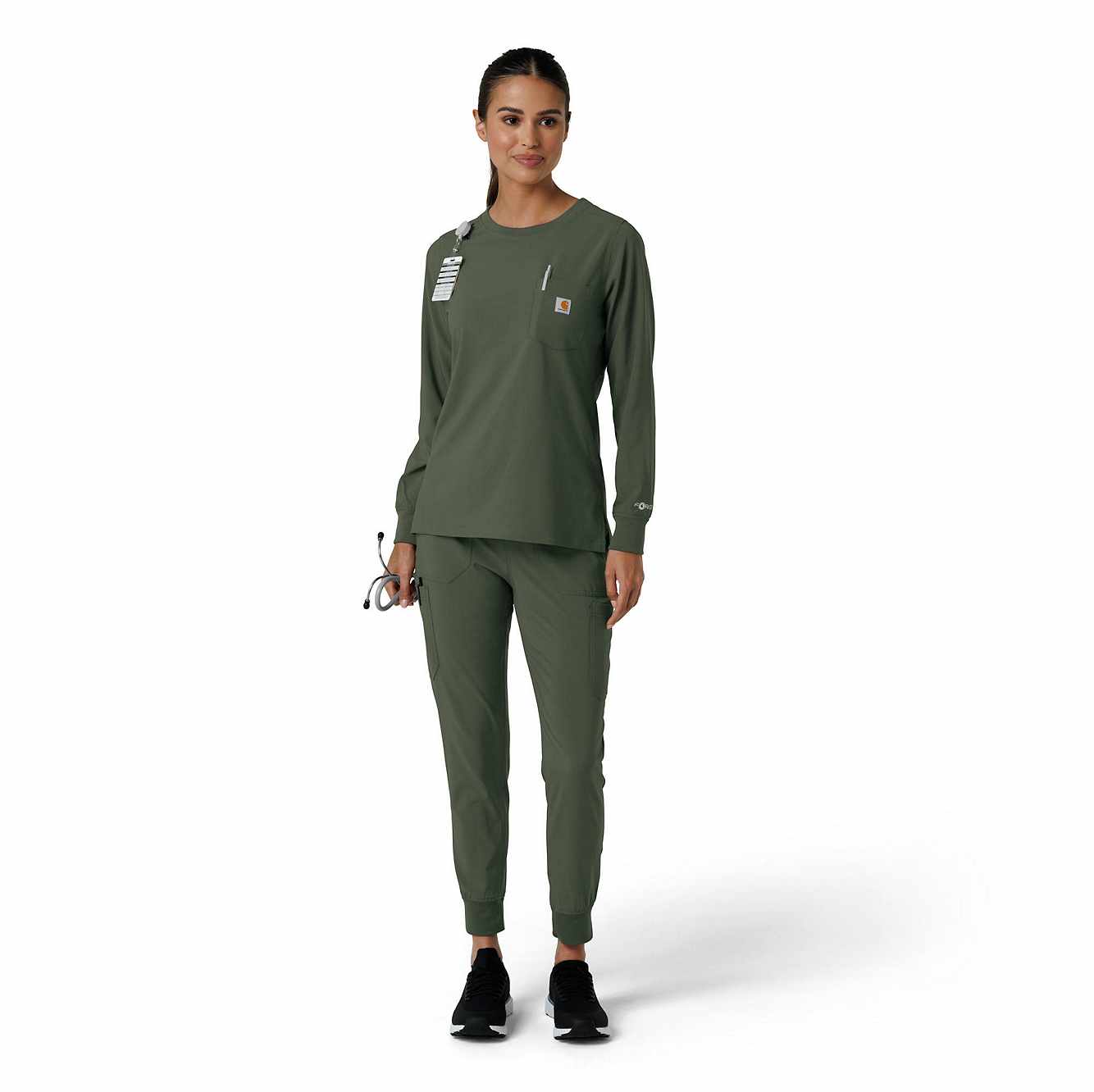 When you need a dependable layer for demanding workdays, this women's Carhartt long sleeve scrub top delivers. Designed for lasting comfort and functionality, it's a piece you'll consistently rely on. The durable fabric withstands the rigors of your shift, while the long sleeves provide added warmth and coverage. This scrub top is packed with practical features, including a zip pocket for storing small essentials. A dedicated pen slot ensures you're always prepared, and the badge loop allows for clear and visible display of your credentials. The knit collar and cuffs offer a comfortable, relaxed fit, adding a touch of casual style to your professional attire. This top seamlessly blends practicality with comfort, making it ideal for long hours on your feet. It's built to endure, ensuring you have a reliable and comfortable option for your daily workwear. The thoughtful design details and durable construction make this Carhartt long sleeve scrub top a valuable addition to any healthcare professional's wardrobe.