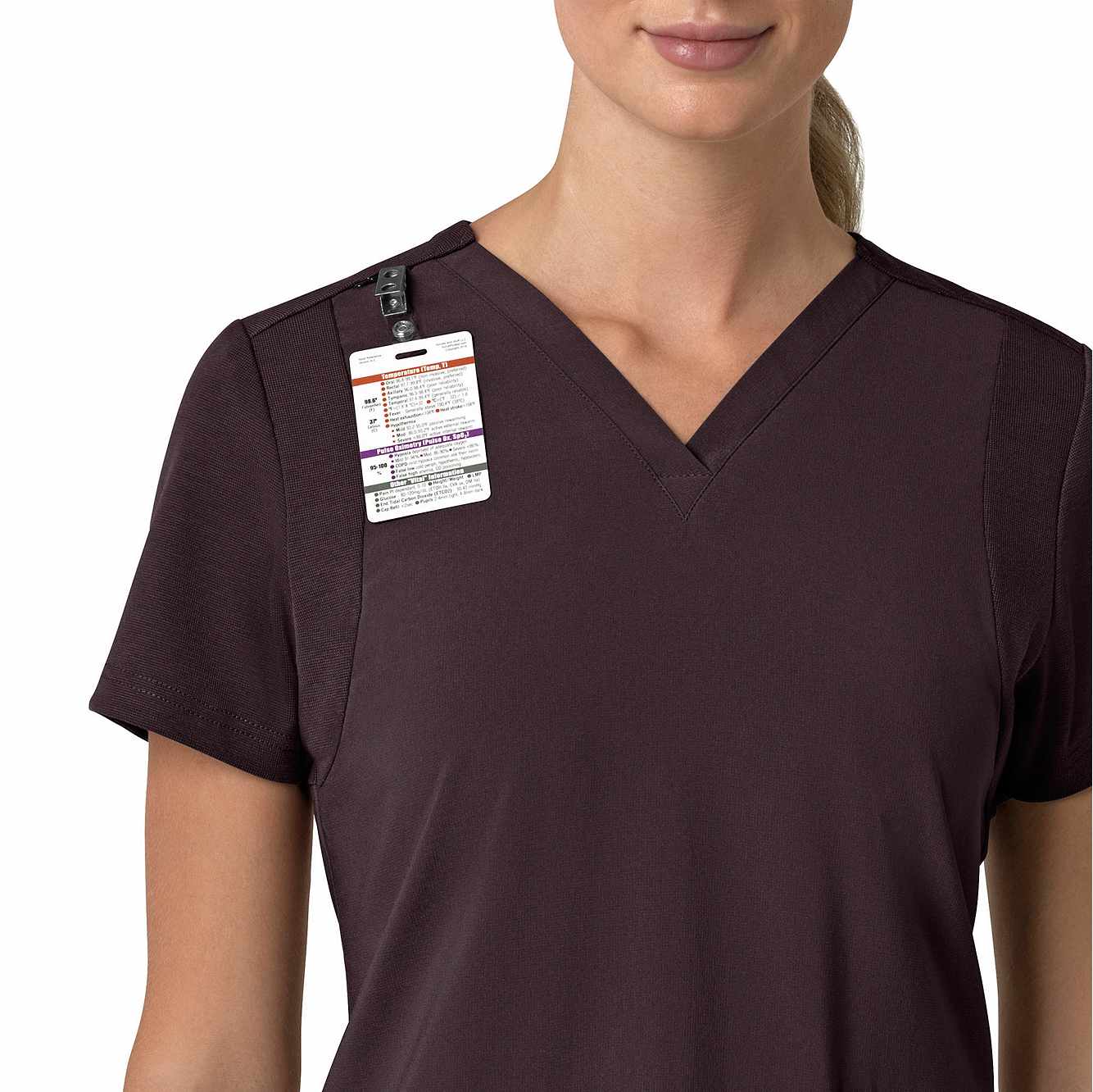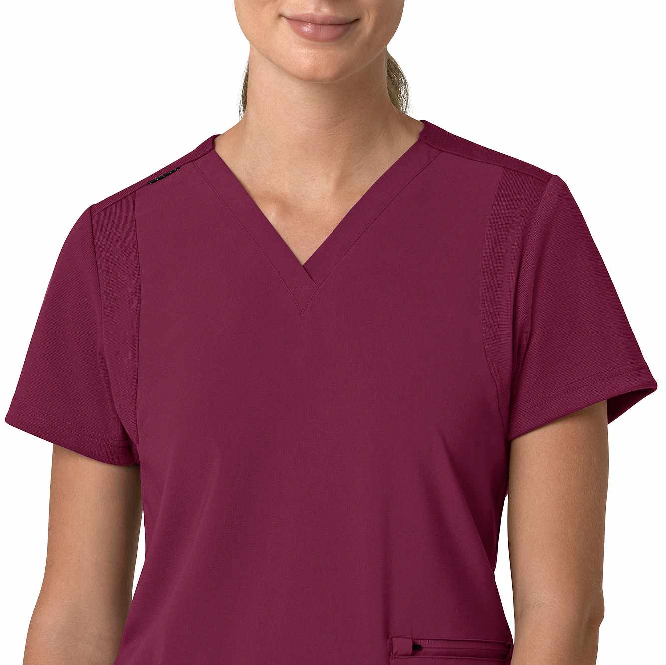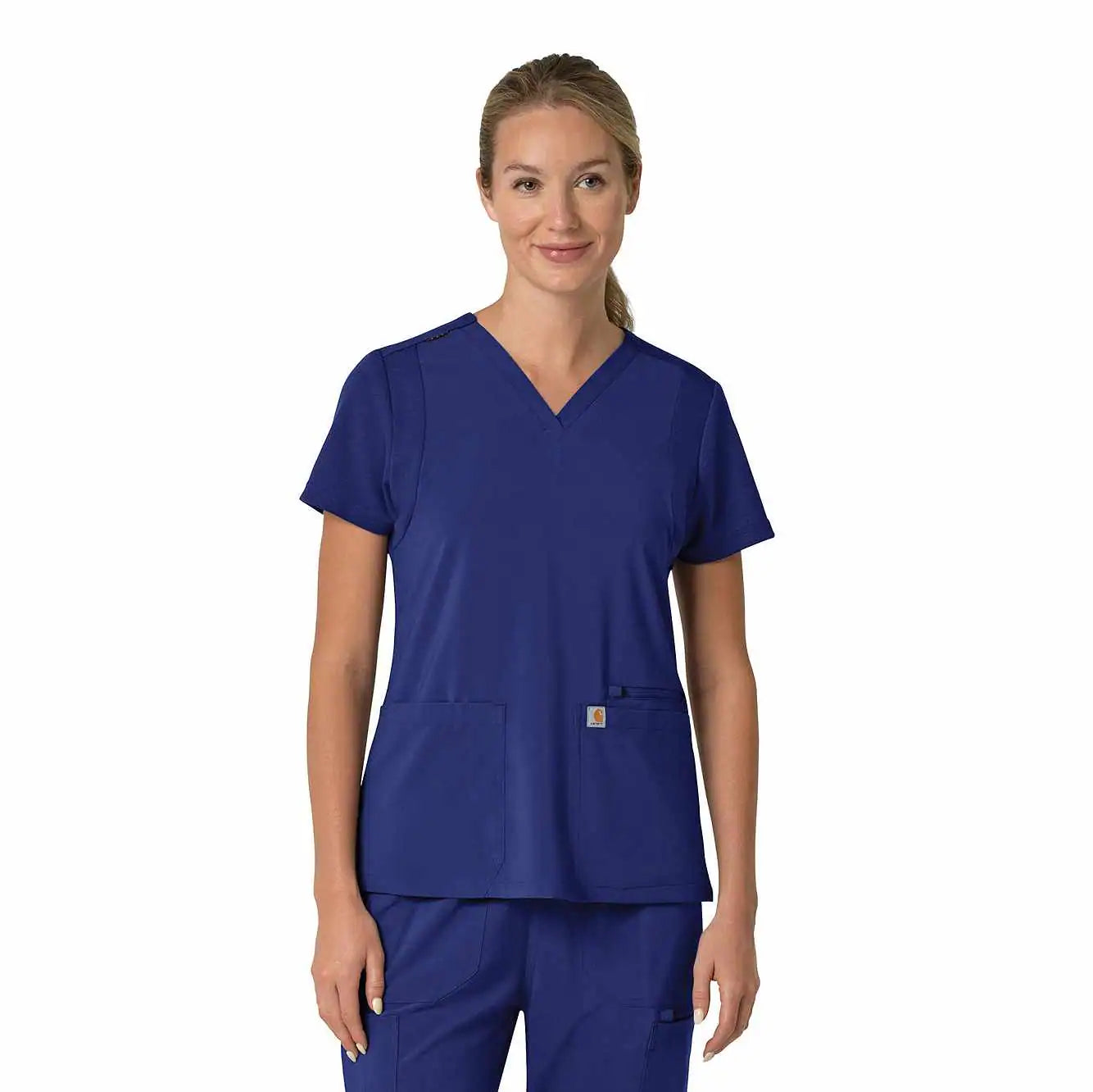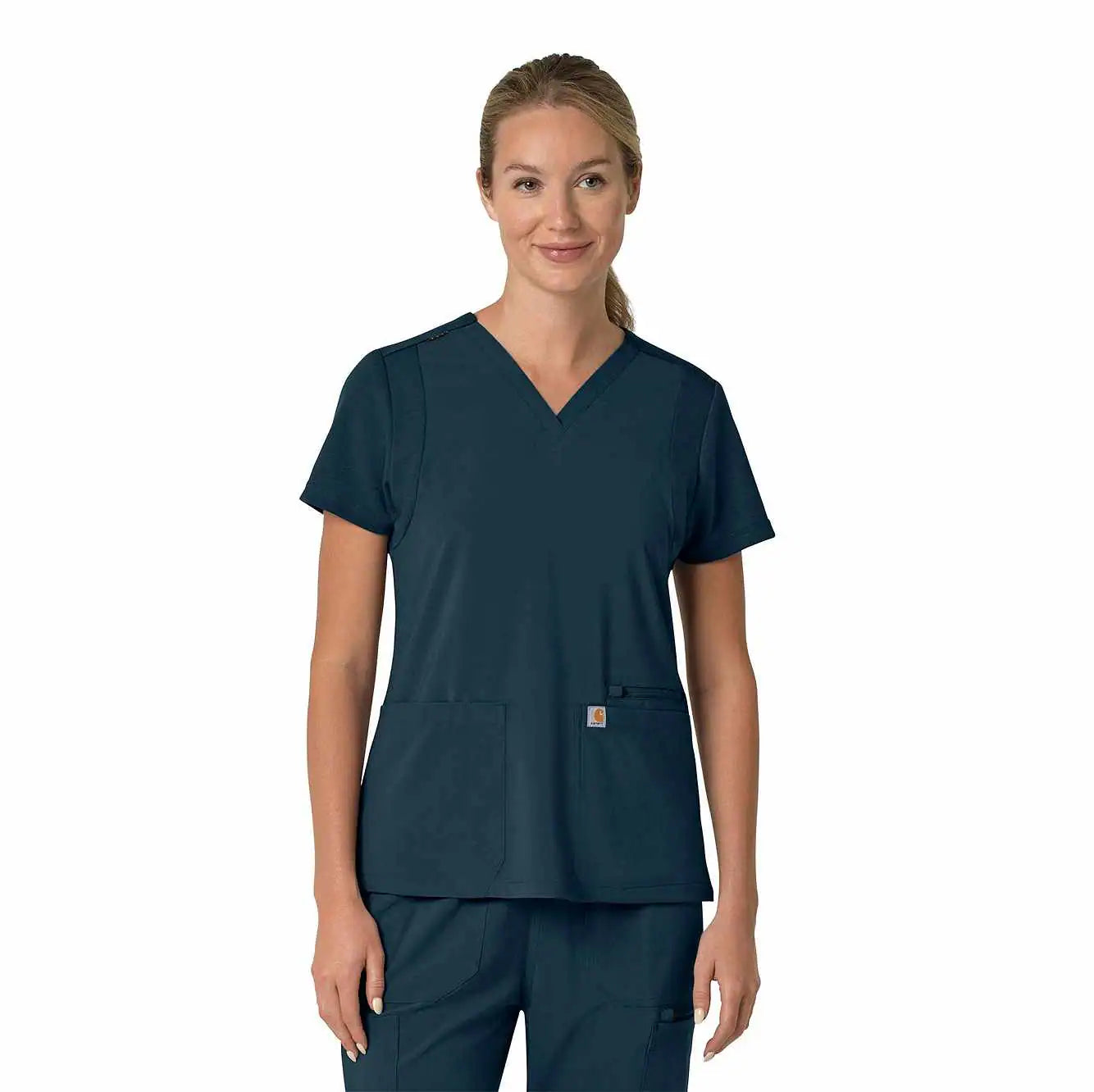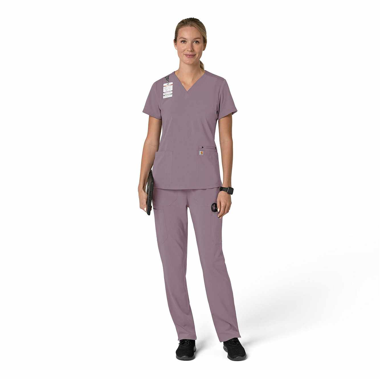 The Carhartt Women's Flex Panel V-Neck Scrub Top, constructed from durable, comfortable polyester material with Carhartt's signature Rugged Flex™ stretch technology. This scrub top ensures unrestricted movement, no matter the task. The rib-knit inserts at the shoulders and sleeves, along with the racerback detail, provide the freedom to move with ease, making your job more manageable. Not only do these scrubs keep you comfortable, but they also enhance your productivity. Part of the Force Cross-Flex collection, they wick away sweat and dry quickly, ensuring you stay fresh and focused during every shift. With a V-neck design and convenient features like a shoulder badge loop, two spacious front patch pockets, a pen slot, and a zipped cell pocket, these scrubs are designed to make your life easier. Plus, side vents around the hips offer even more mobility. Choose the Carhartt Women's Flex Panel V-Neck Scrub Top and experience comfort, durability, and performance in one stylish package.
