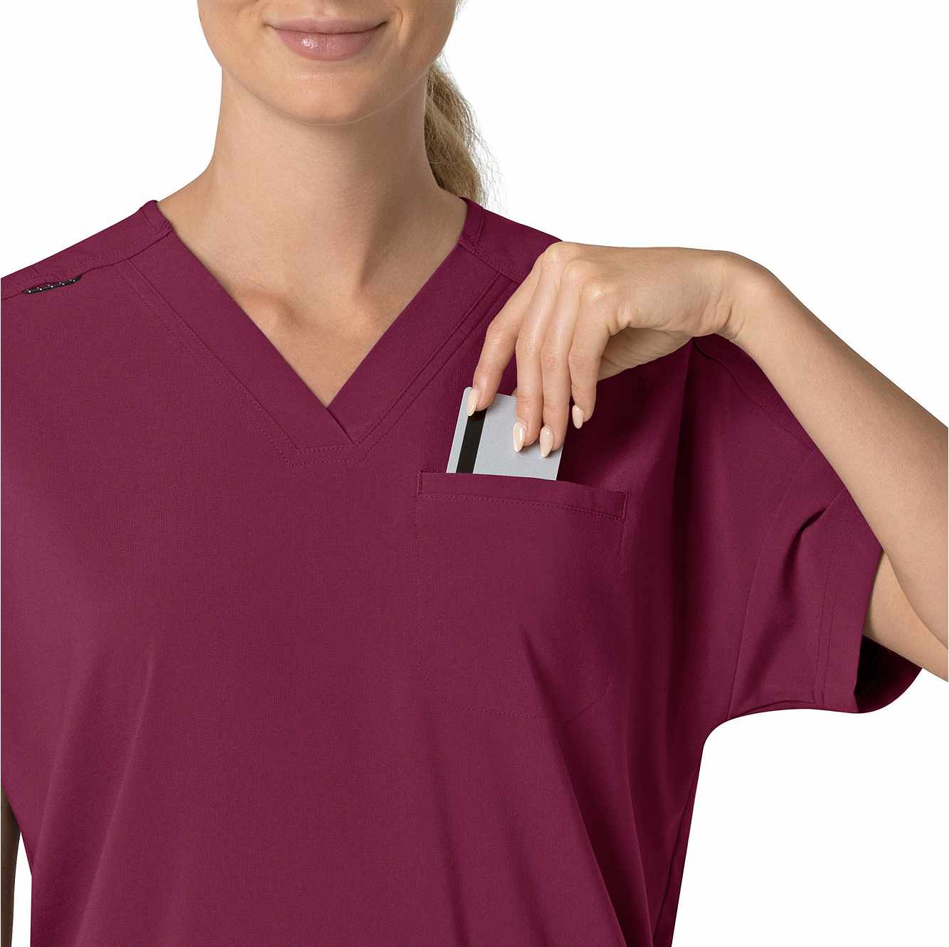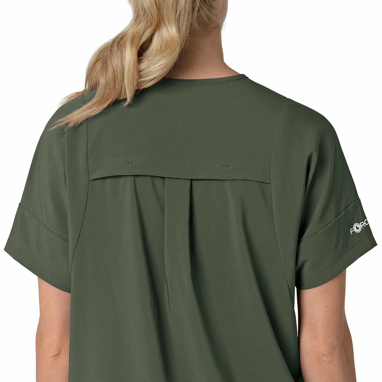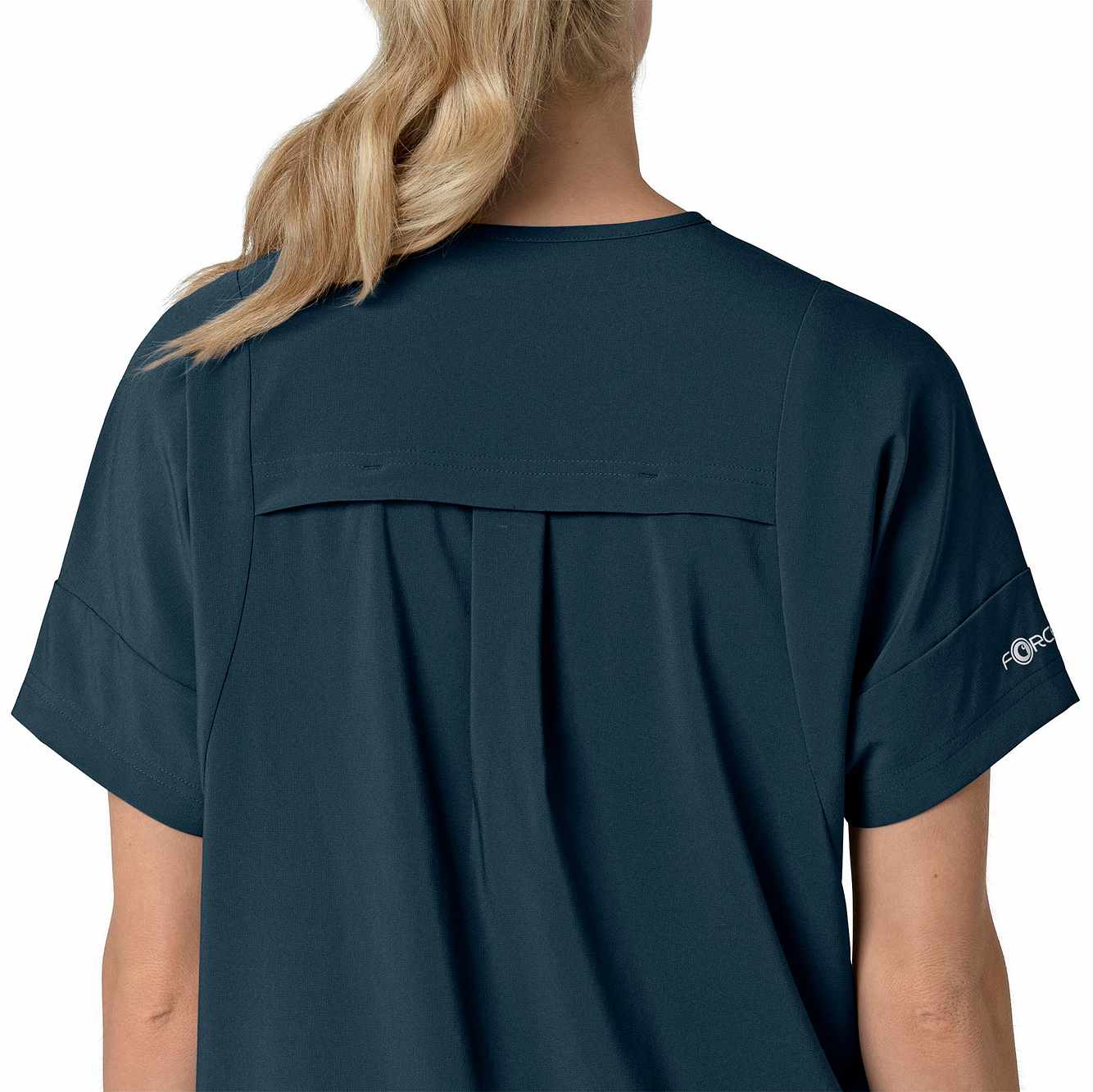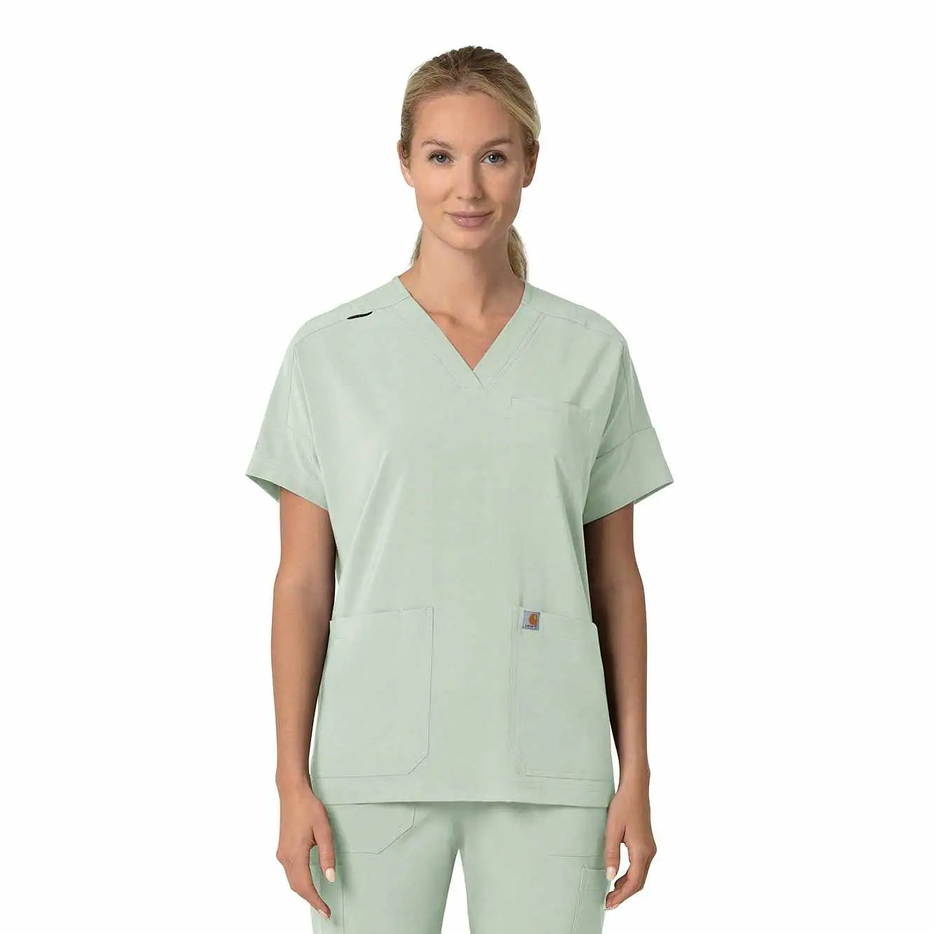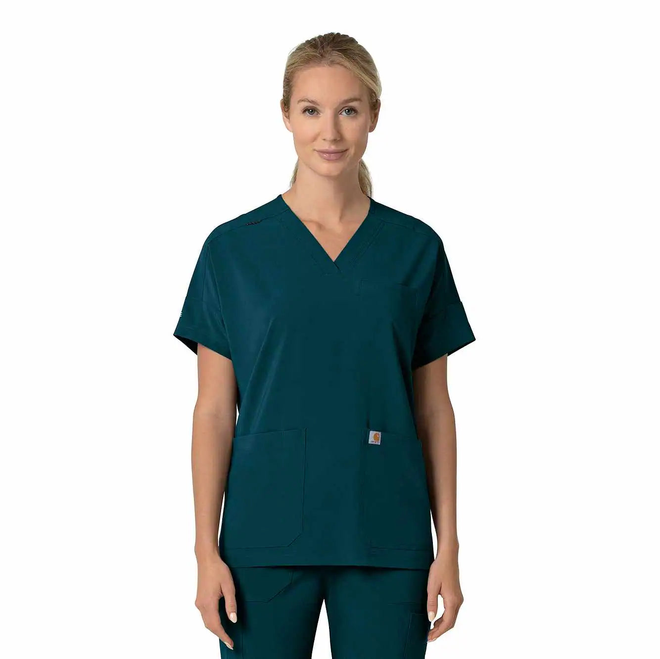 Step into your workday with confidence in the Carhartt Women's Oversized V-Neck Scrub Top. Engineered for healthcare professionals, this scrub top combines style and functionality. The curved V-neck with slim binding and a shoulder badge loop adds a touch of sophistication, while the vented yoke ensures breathability during long shifts. Practicality meets convenience with features like a welt chest pocket, two front top load pockets, a mesh cellphone pocket, and a pen slot. The racerback detail and box pleat at the back provide ease of movement, ensuring you're ready for any task. The straight hem at the front and slightly curved back, along with side vents, create a flattering silhouette. Crafted from a durable and comfortable polyester-spandex blend, this scrub top is not only reliable but also equipped with FastDry® technology to keep you dry under pressure. Elevate your professional look and excel on every shift with Carhartt's Force Cross-Flex collection.