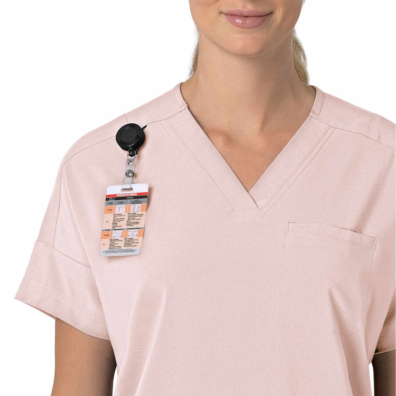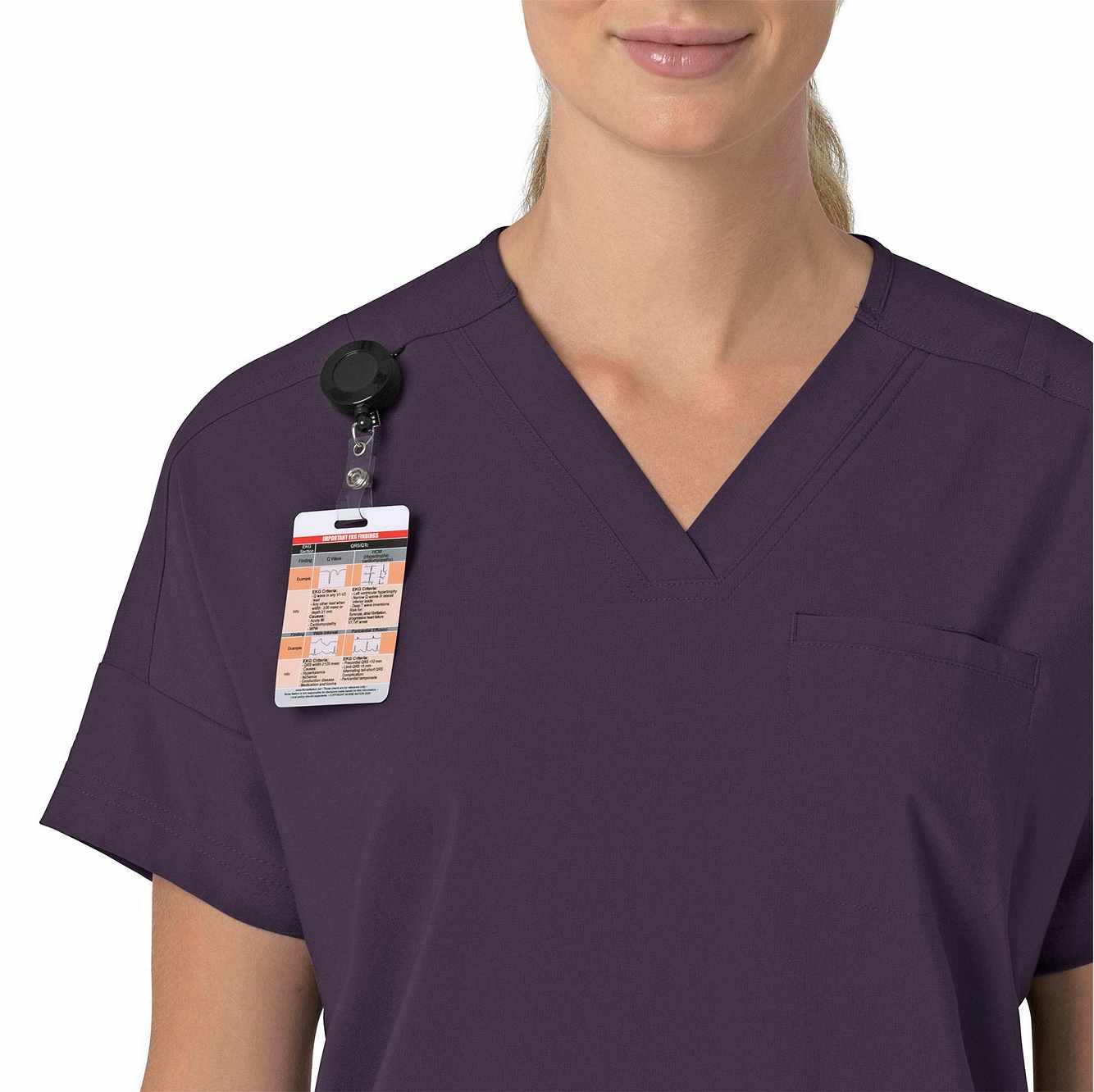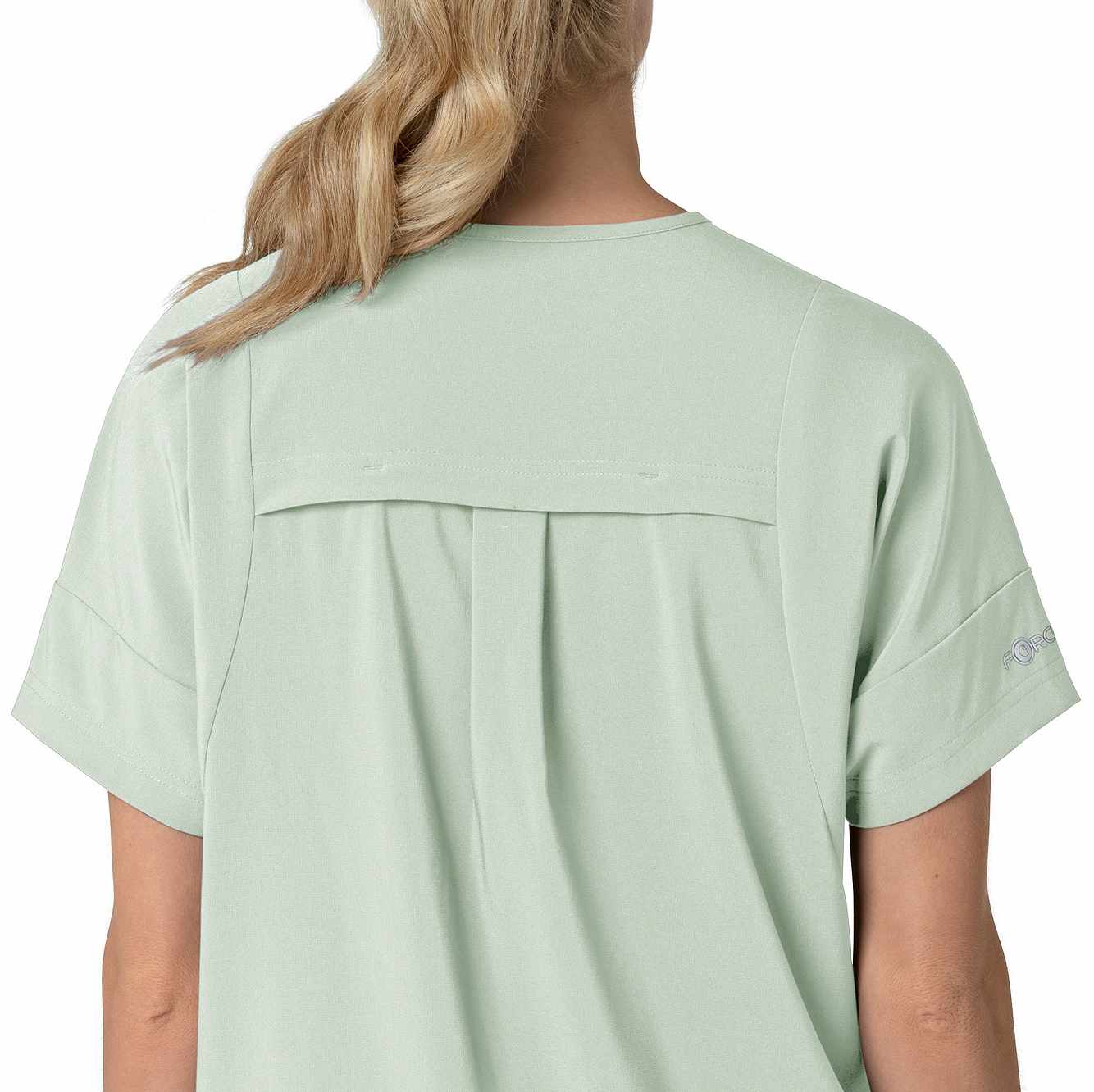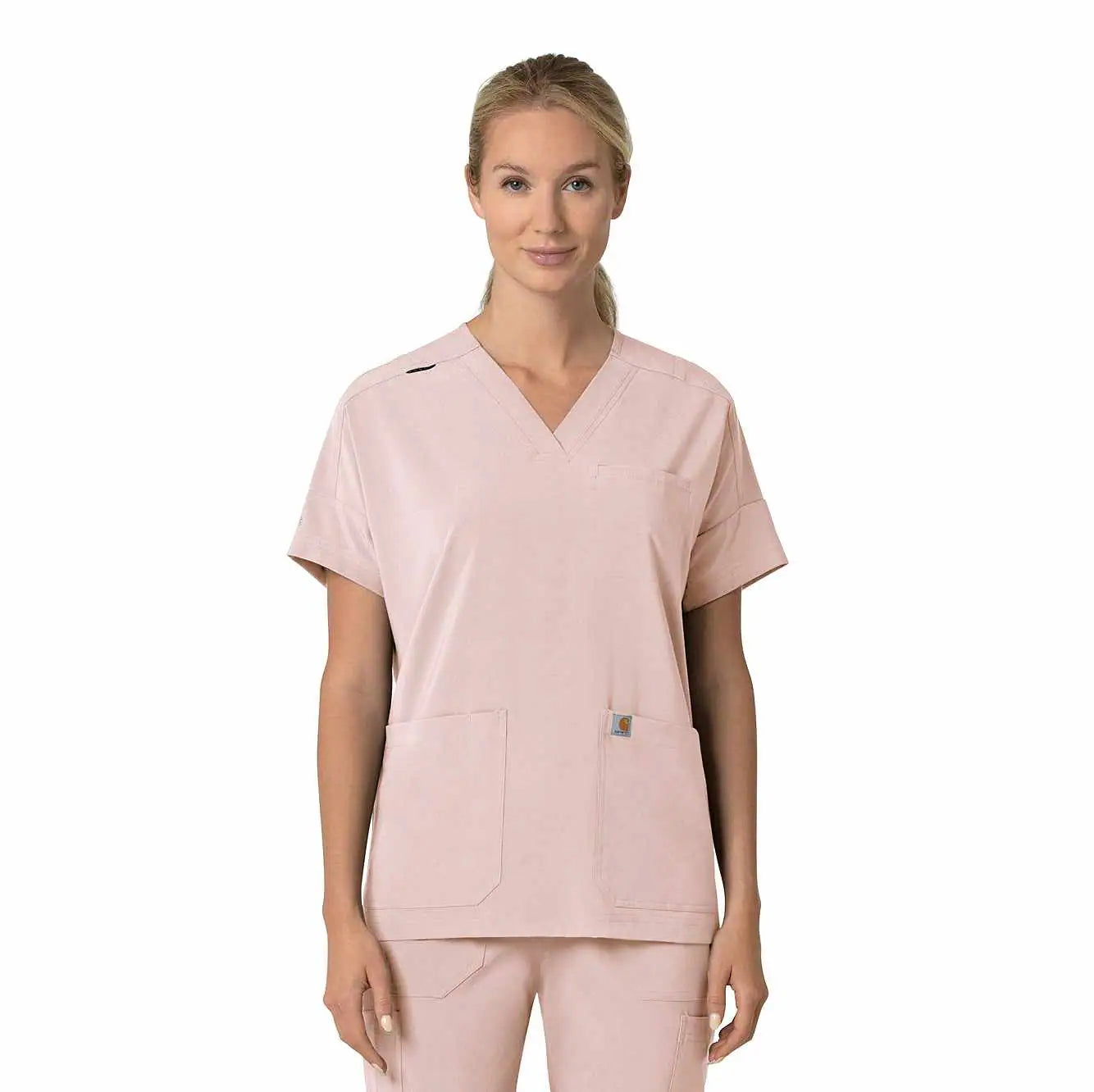 Step into your workday with confidence in the Carhartt Women's Oversized V-Neck Scrub Top. Engineered for healthcare professionals, this scrub top combines style and functionality. The curved V-neck with slim binding and a shoulder badge loop adds a touch of sophistication, while the vented yoke ensures breathability during long shifts. Practicality meets convenience with features like a welt chest pocket, two front top load pockets, a mesh cellphone pocket, and a pen slot. The racerback detail and box pleat at the back provide ease of movement, ensuring you're ready for any task. The straight hem at the front and slightly curved back, along with side vents, create a flattering silhouette. Crafted from a durable and comfortable polyester-spandex blend, this scrub top is not only reliable but also equipped with FastDry® technology to keep you dry under pressure. Elevate your professional look and excel on every shift with Carhartt's Force Cross-Flex collection.