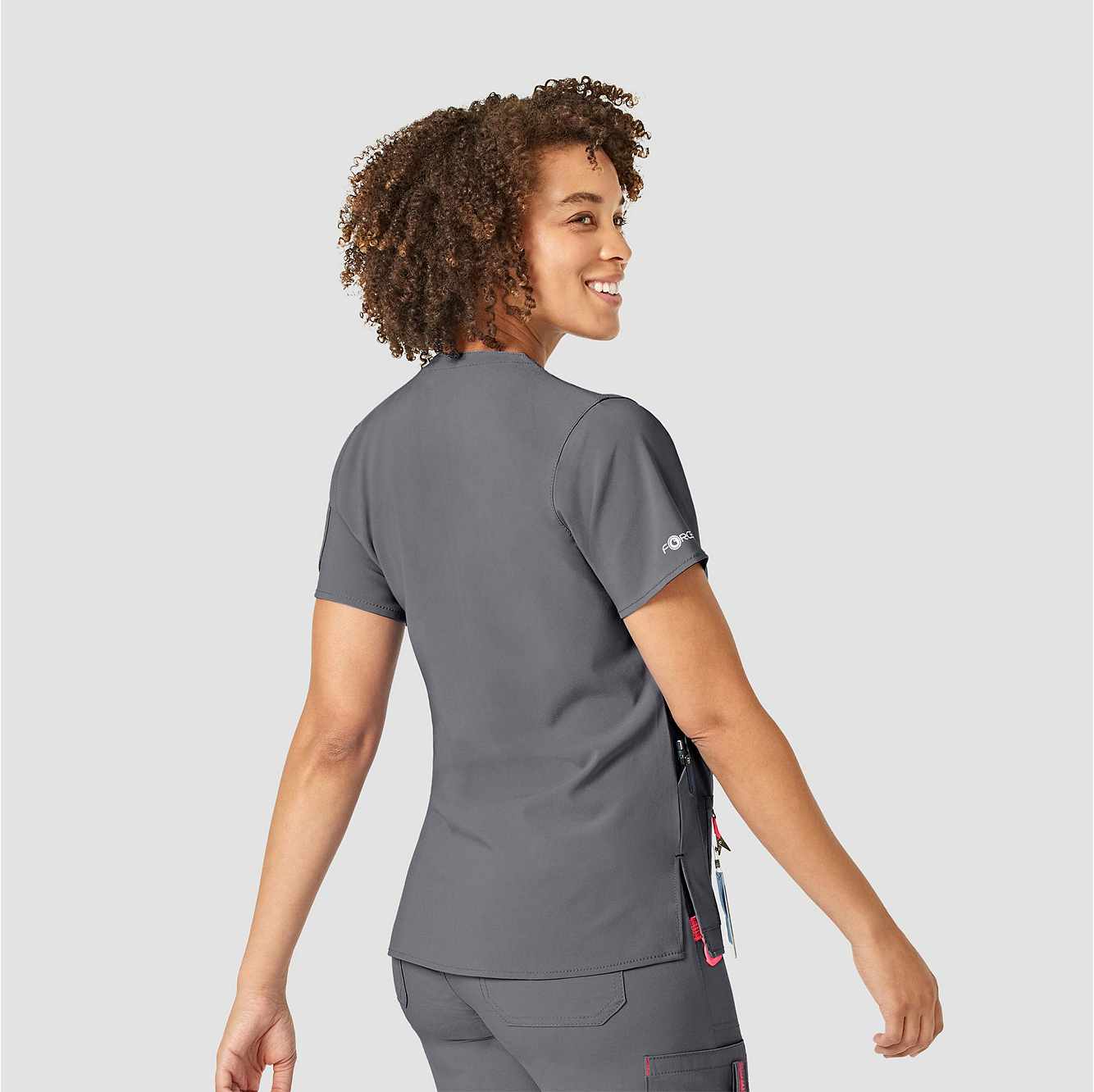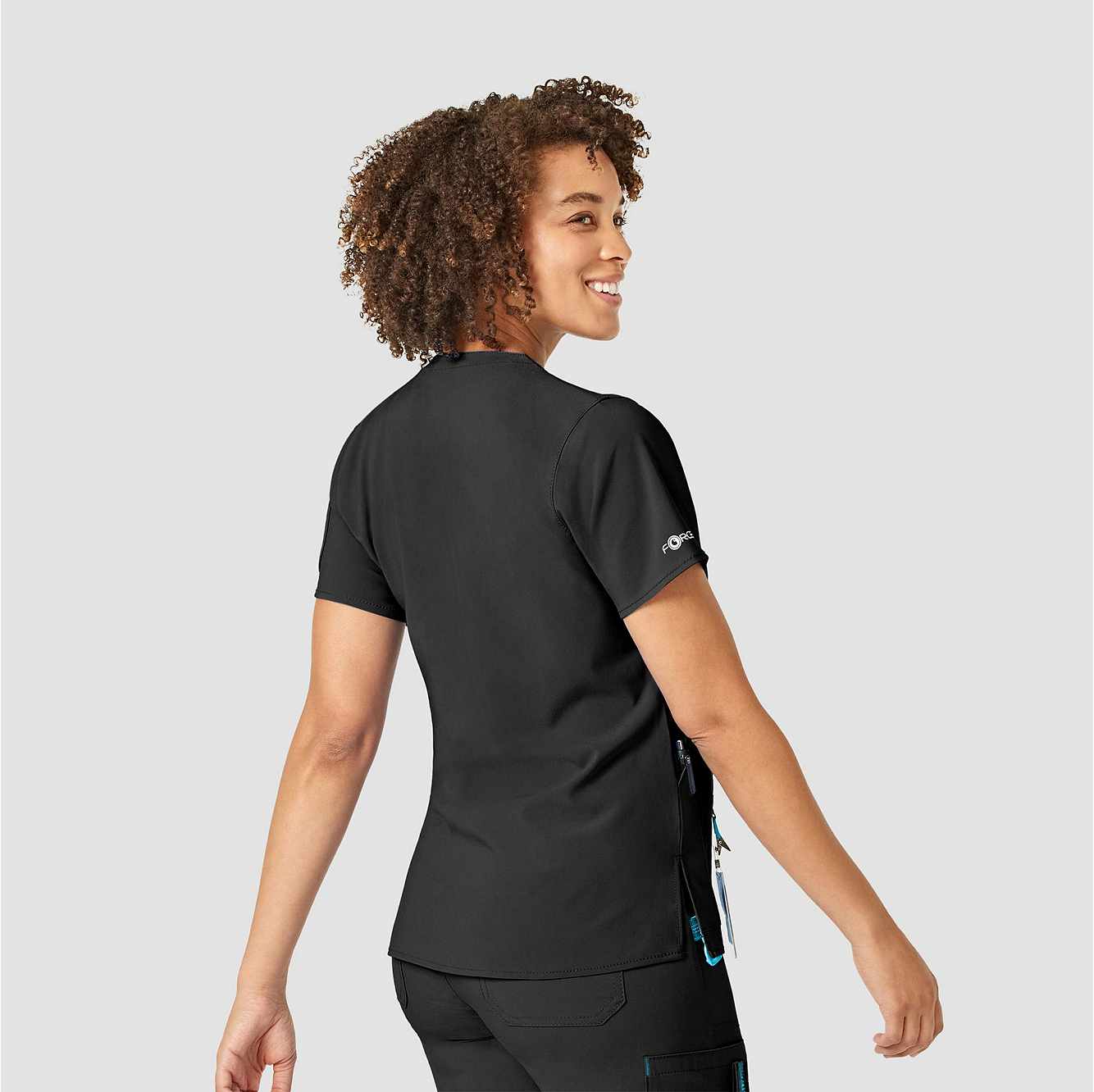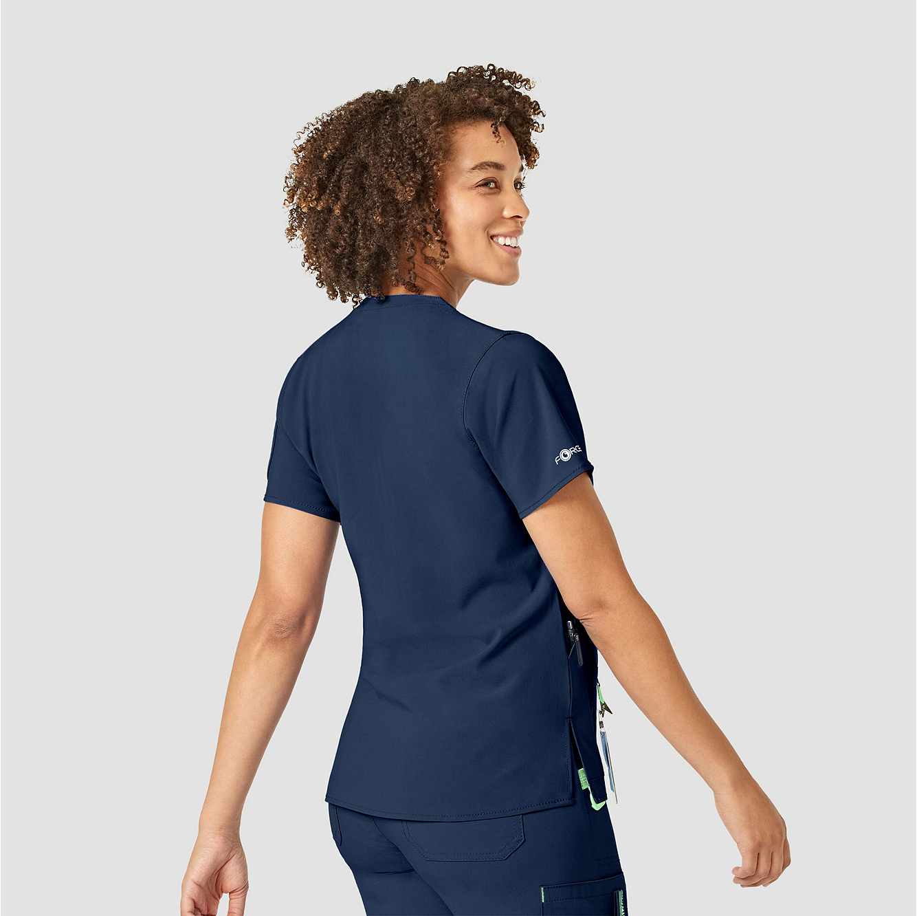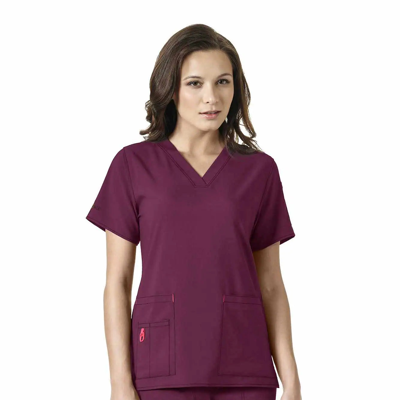 Stay connected and ready for the demands of your shift in this women's V-neck scrub top. The polyester blend is built for mobility and stain resistance to keep you clean and presentable all shift long. A dedicated media pocket includes routing for earbuds to keep cords safely out of the way. Easy access front pockets keep essentials close at hand.