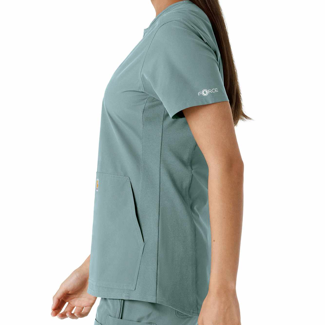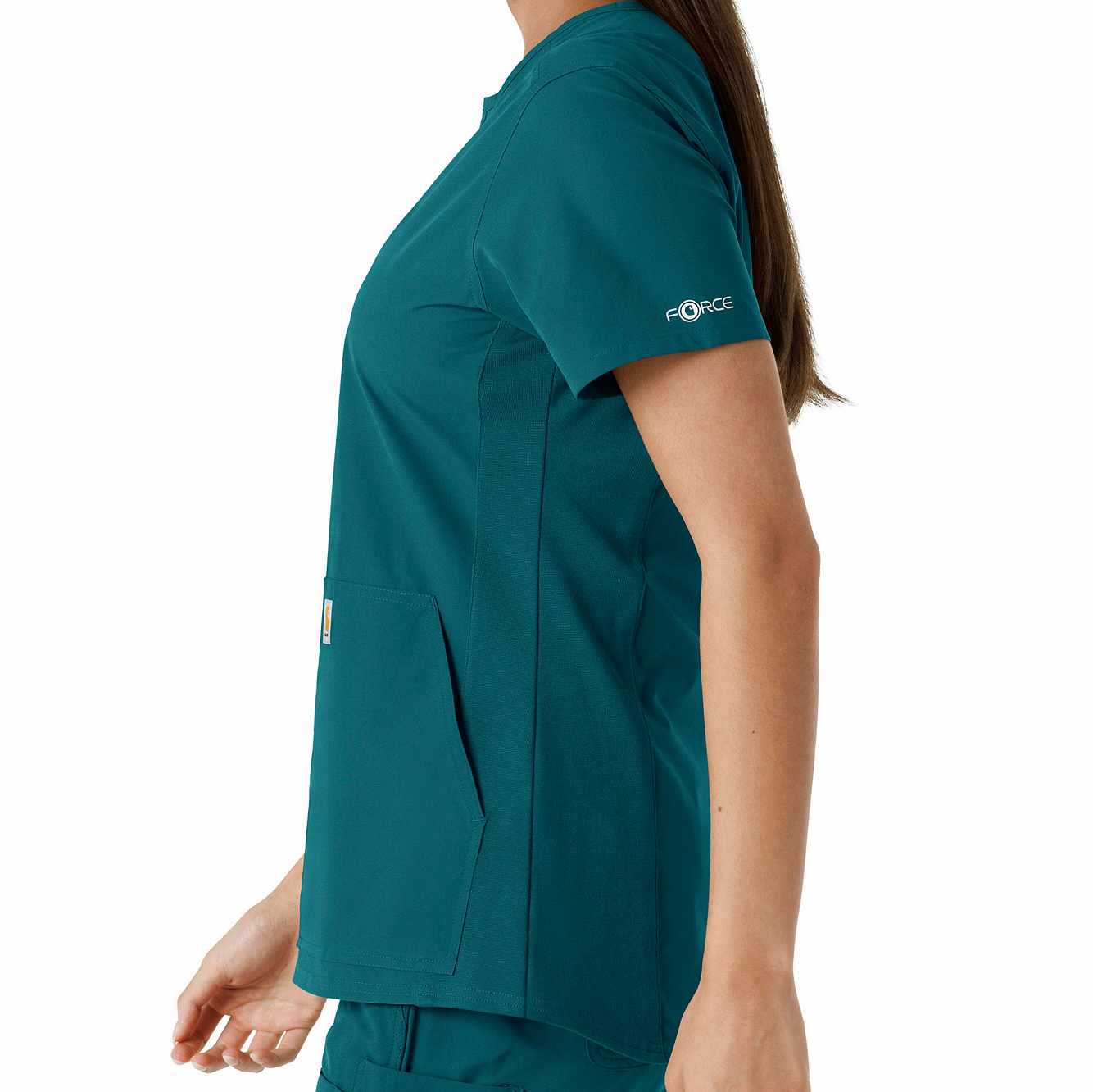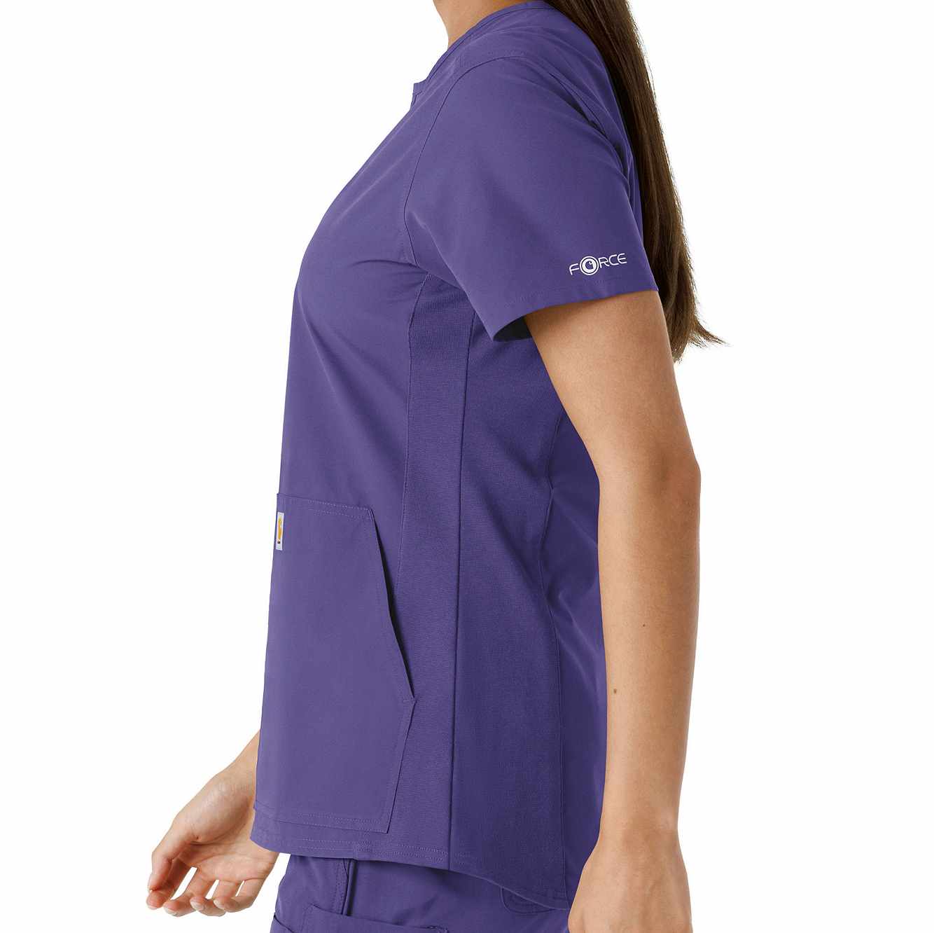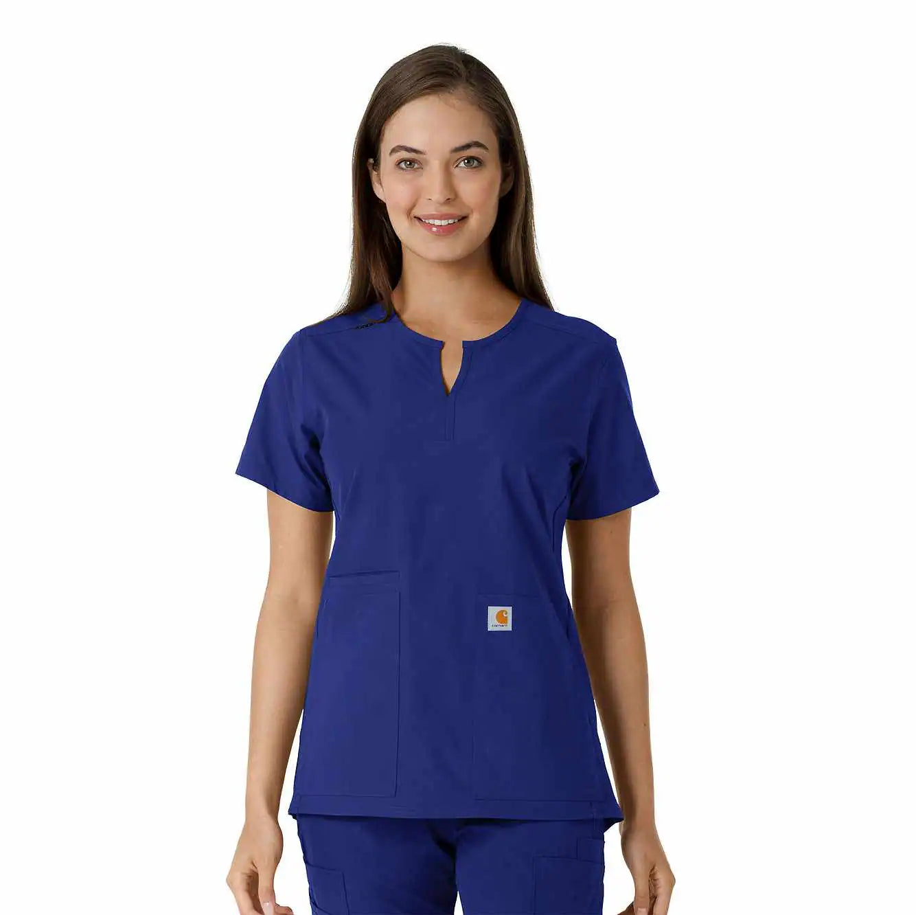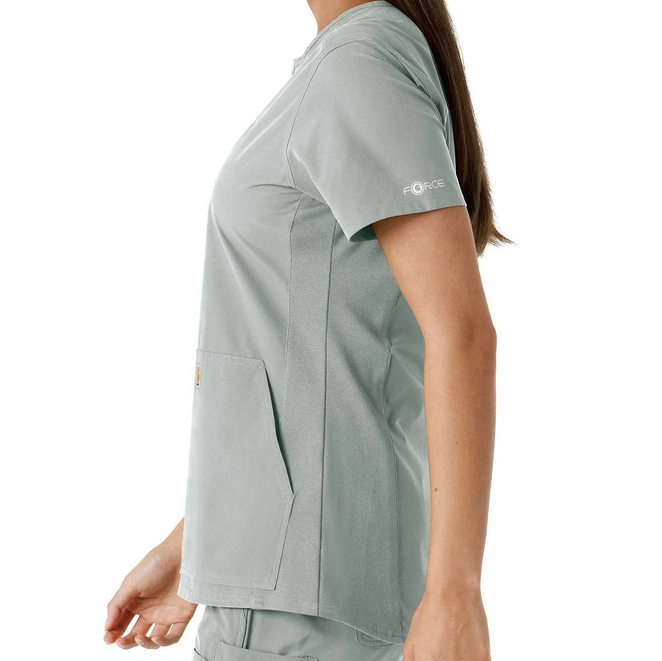 Designed for busy shifts, this Carhartt scrub top offers a polished look with unbeatable comfort. Made from a durable, lightweight polyester blend, it features Rugged Flex® stretch and knit side panels for easy movement, plus FastDry® and Stain Breaker® technologies to keep you cool and clean. Large pockets, a hidden phone pocket, and a badge ID loop make it practical, while princess seams and a curved hem add a professional finish. Perfect for those who need both style and performance on the job.