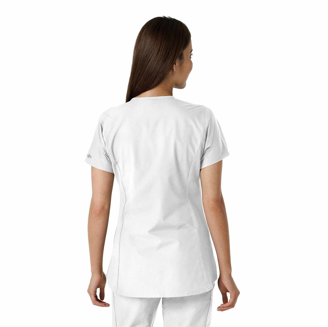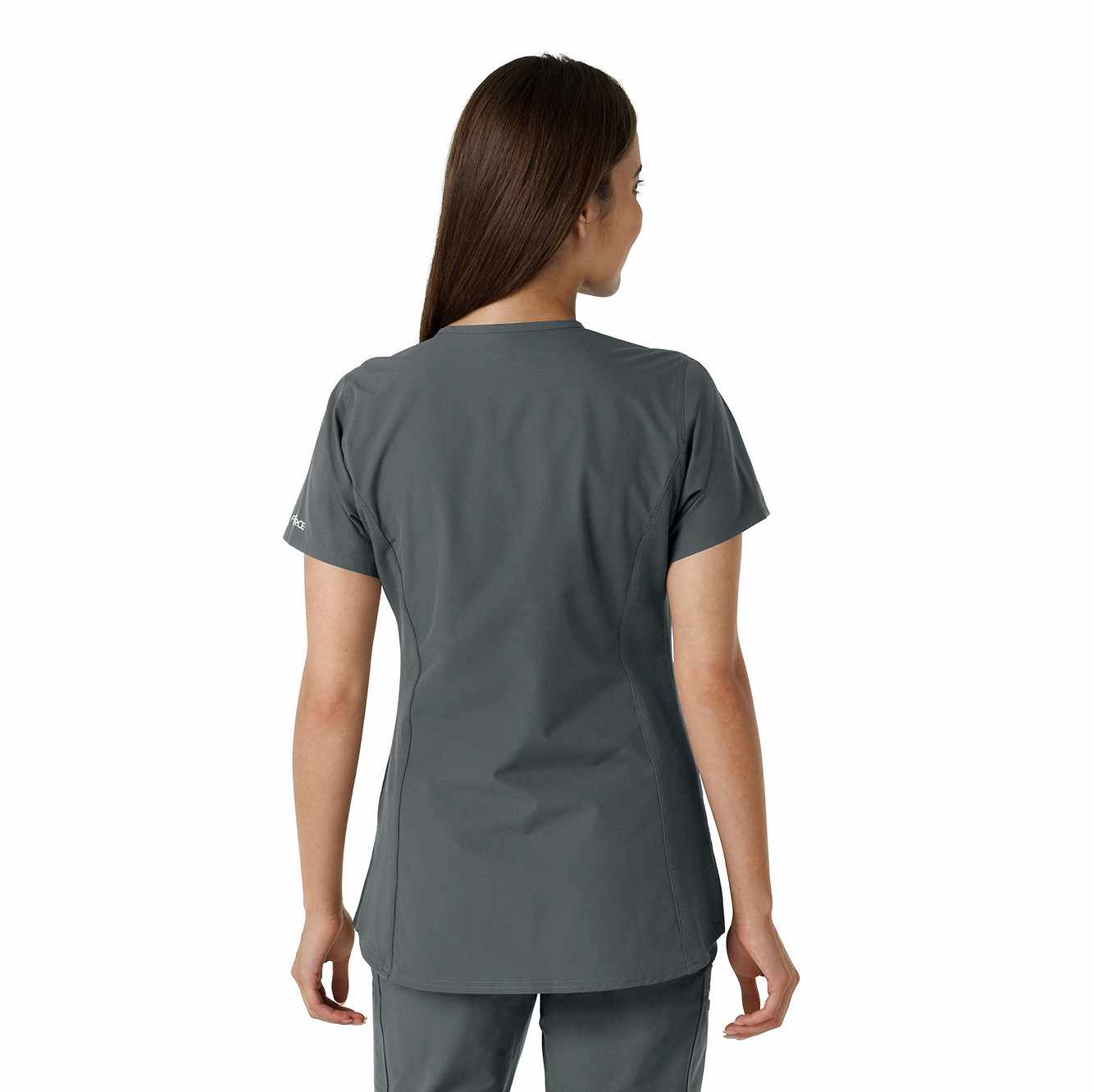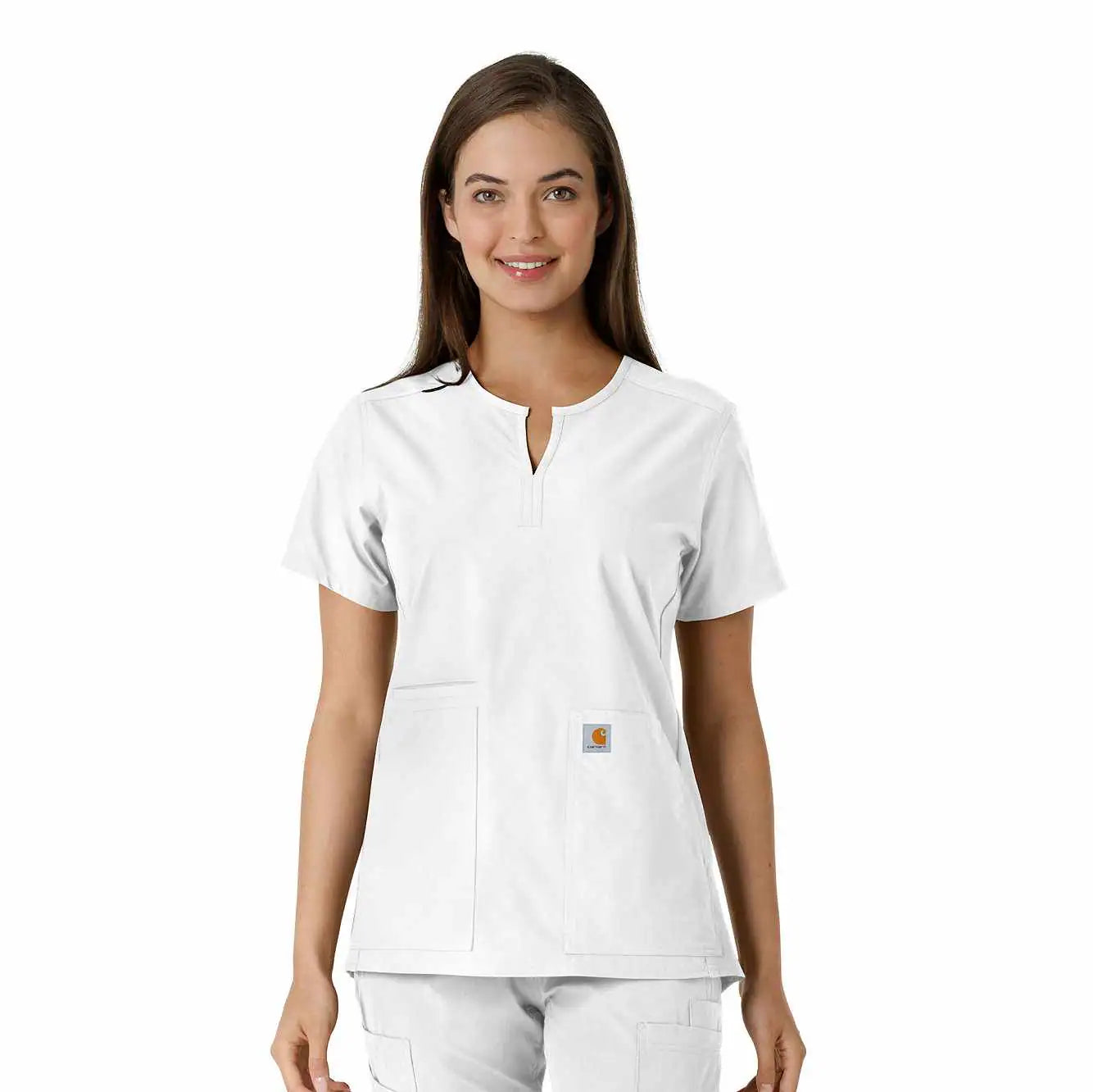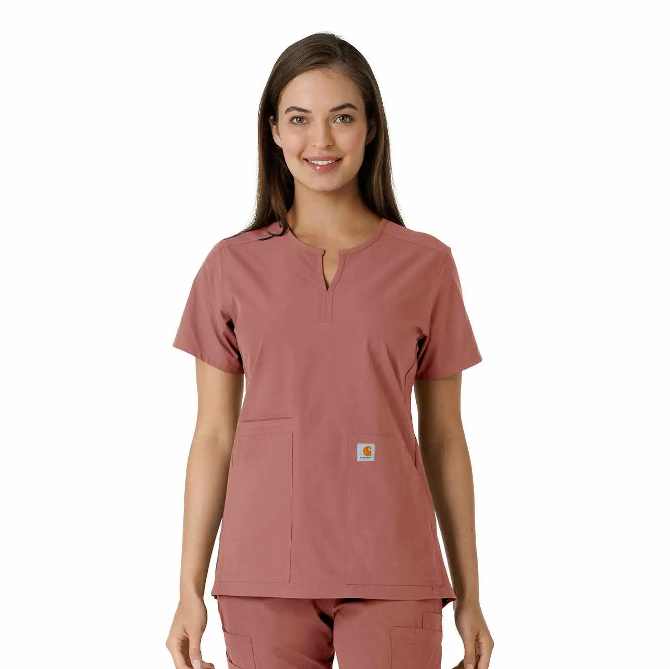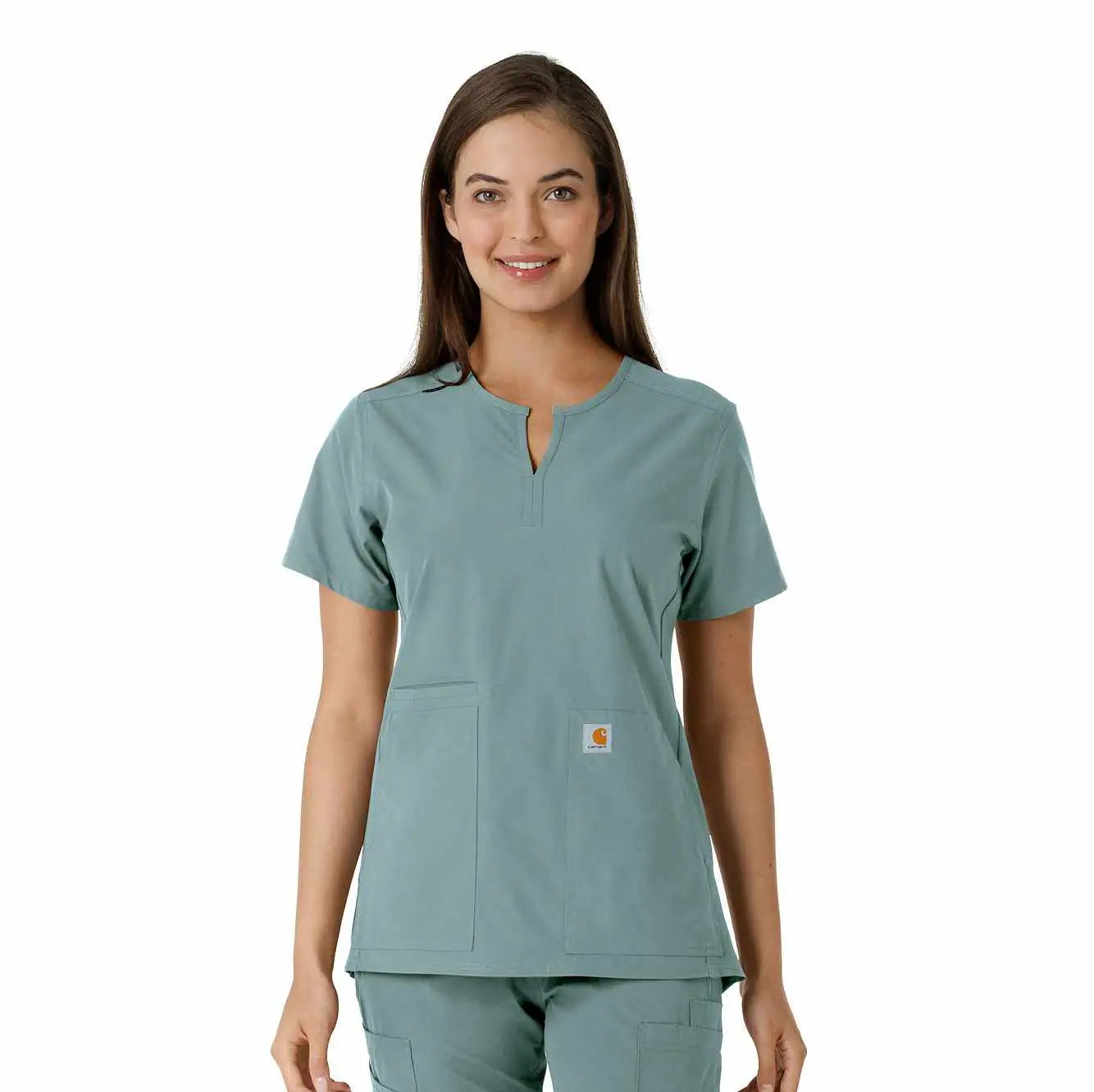 Designed for busy shifts, this Carhartt scrub top offers a polished look with unbeatable comfort. Made from a durable, lightweight polyester blend, it features Rugged Flex® stretch and knit side panels for easy movement, plus FastDry® and Stain Breaker® technologies to keep you cool and clean. Large pockets, a hidden phone pocket, and a badge ID loop make it practical, while princess seams and a curved hem add a professional finish. Perfect for those who need both style and performance on the job.