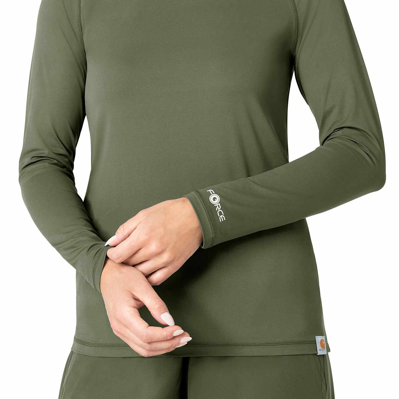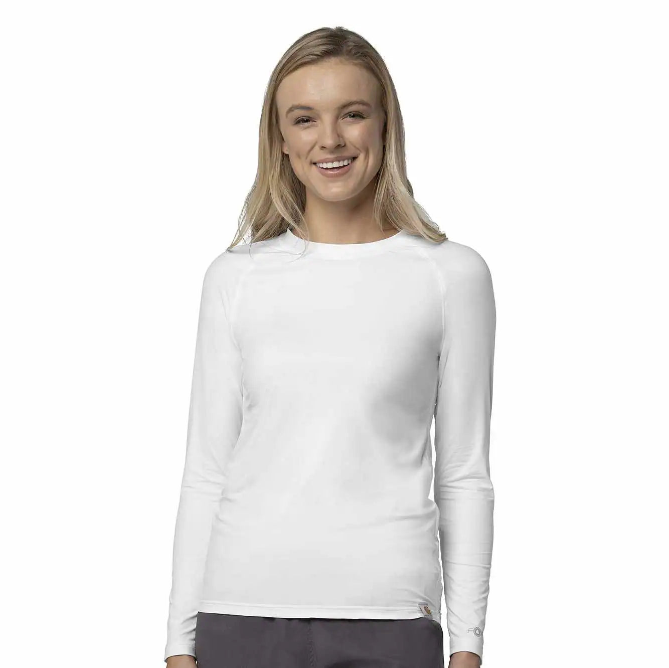 Keep yourself warm and protected while on your shift with this women's long sleeved scrub tee. Built to move with Rugged Flex® technology for easy range or motion and HEIQ FRESH technology for sustainable and highly effective odor control.