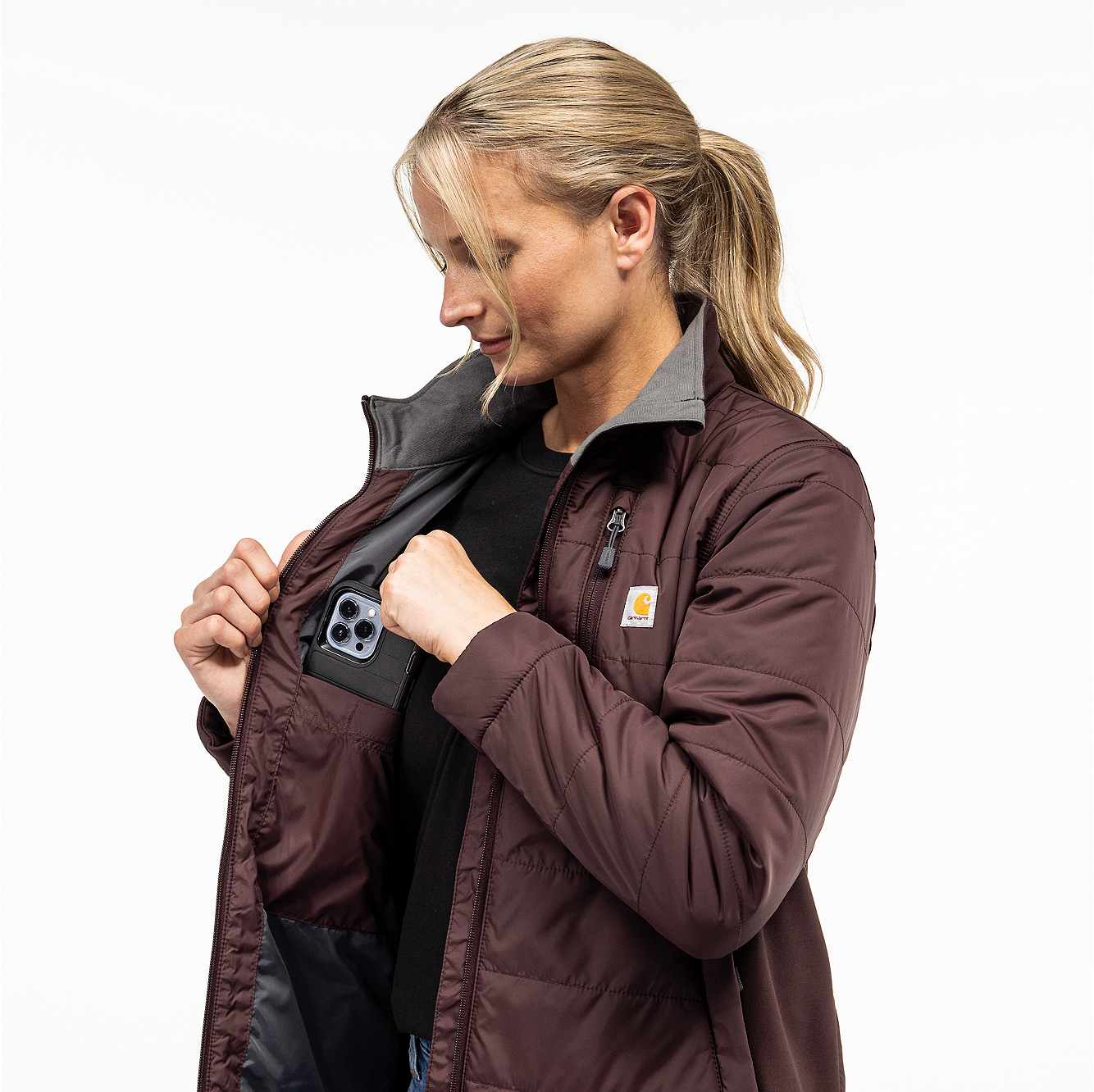 Take on cool, wet weather in this lightweight women's puffer jacket. Its reinforced weave holds up to the toughest jobs, and lightweight insulation adds critical warmth. Water-repellent and windproof technology fights inclement weather, so you can finish the job. It's made to move with a relaxed fit and built-in flex where you need it most for a full range of motion.