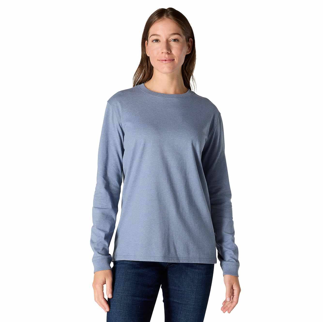 Clean and simple, our classic heavyweight long-sleeve tee for women can do it all. It's your everyday work shirt and around-the-house tee. It's cut for a loose fit to offer plenty of room to move so it won't ride up or bind as you swing an axe or reach for your hammer.