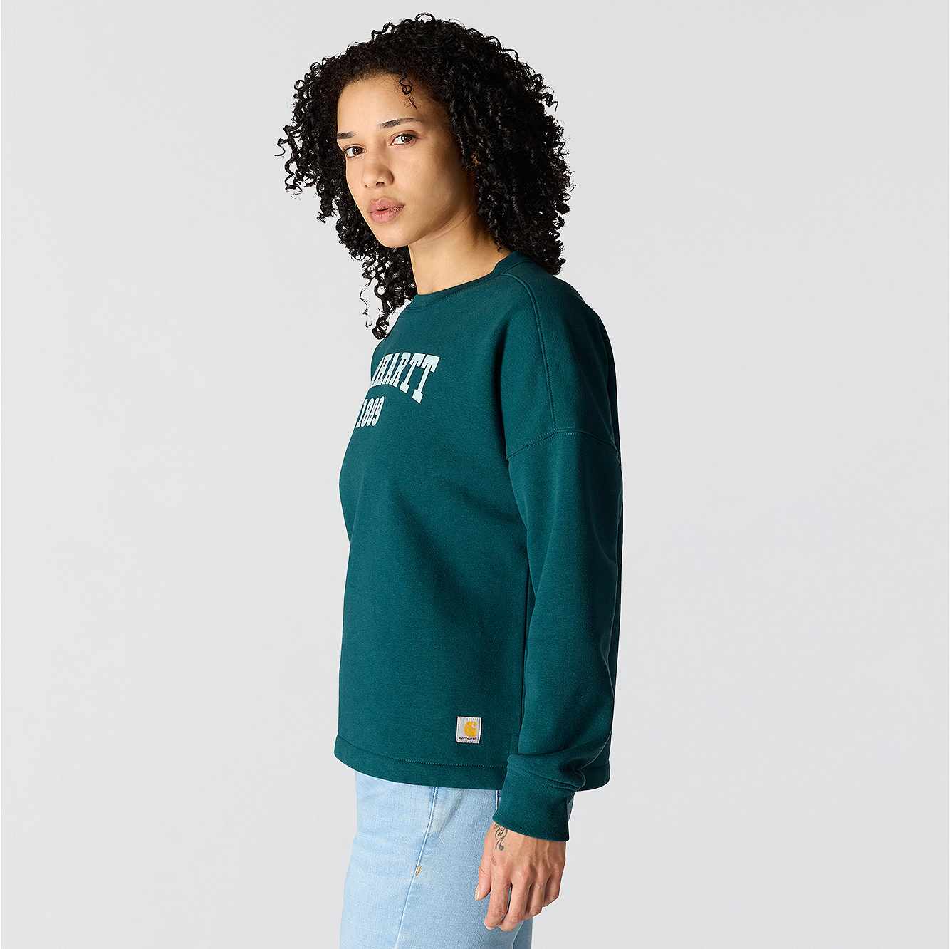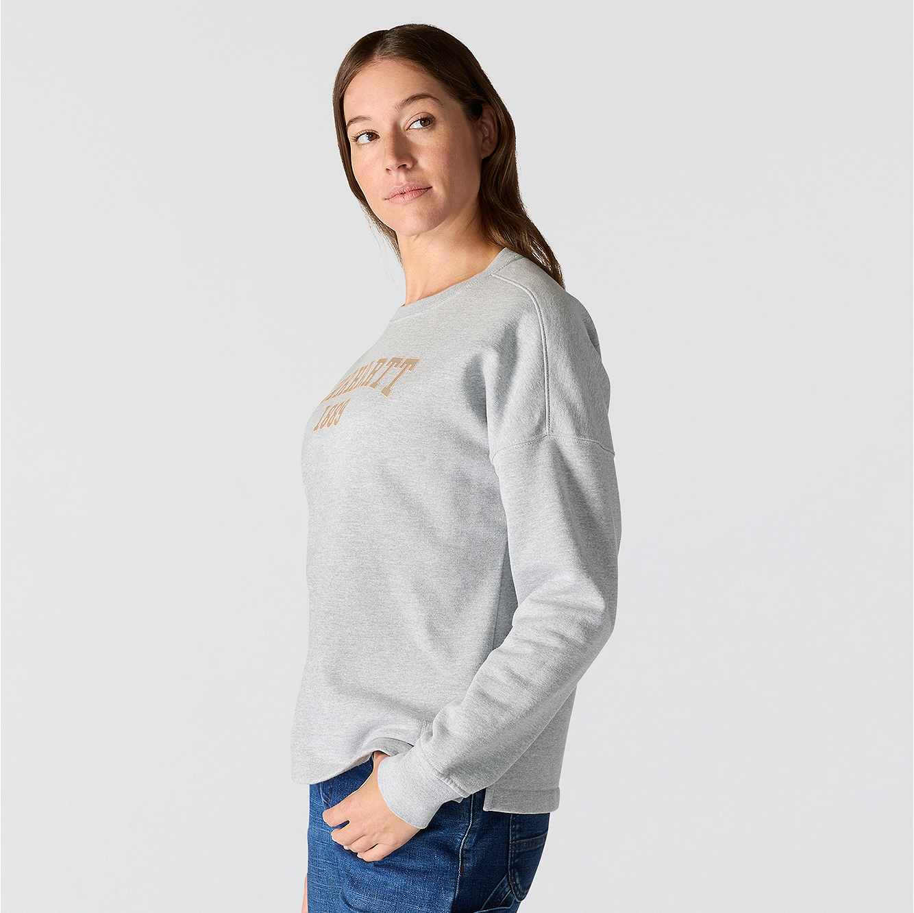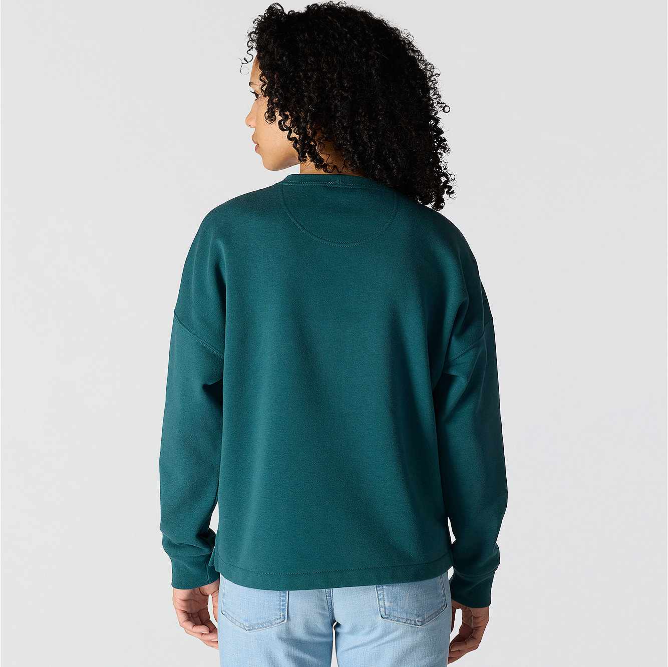 Versatile midweight warmth and casual comfort. This women's crew neck sweatshirt is a go-to layer for cool mornings and camp wear. A loose fit allows for easy layering and unrestricted movement.