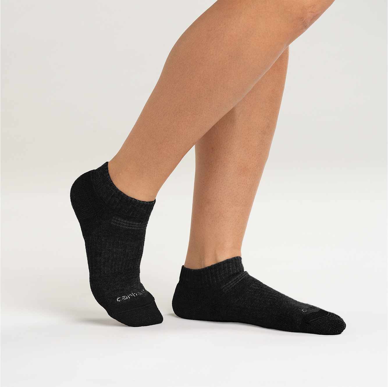 These women's low-cut socks are a workday staple that offer breathable comfort on the job. They're made of a soft cotton blend with a bit of spandex for a stay-put fit. Reinforcement at the heel and toe provides extra padding in high impact areas.