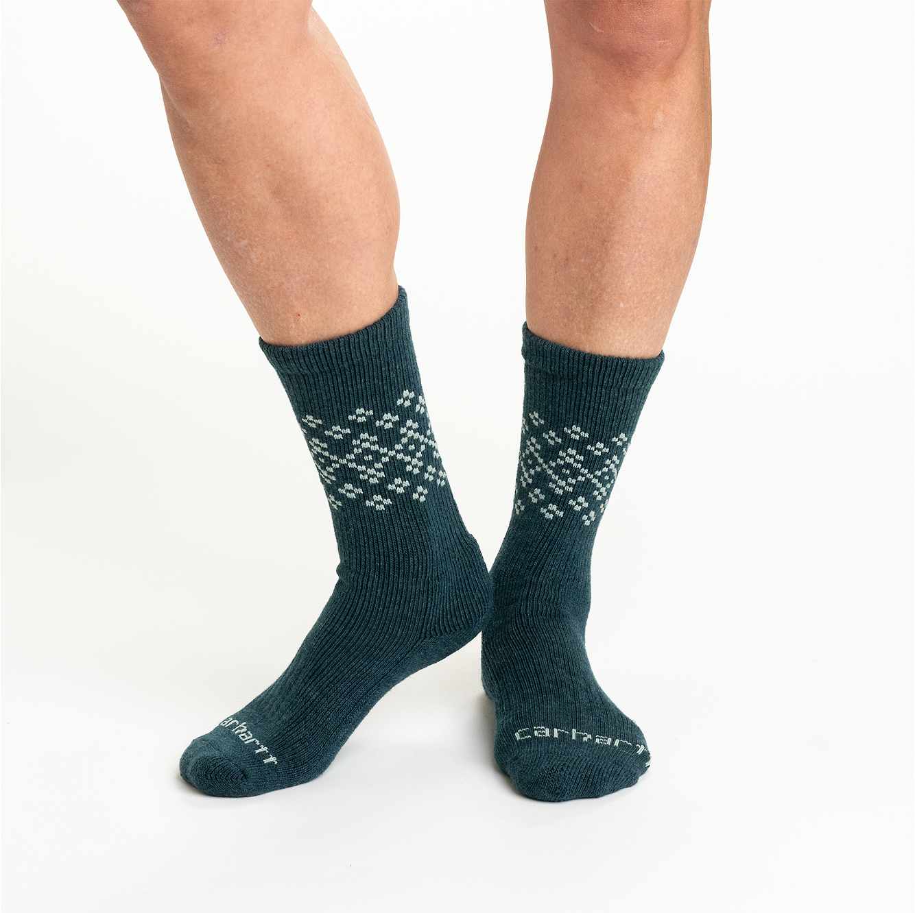 Jobs that keep you moving all day are hard on your feet and socks. These women's midweight crew socks stand up to active days. The Wool blend naturally regulates temperature while wicking sweat and resisting odor. Cushioning at the heel, toe, and arch supports long days on your feet, and abrasion-resistant yarns at the heel and toe extend durability.