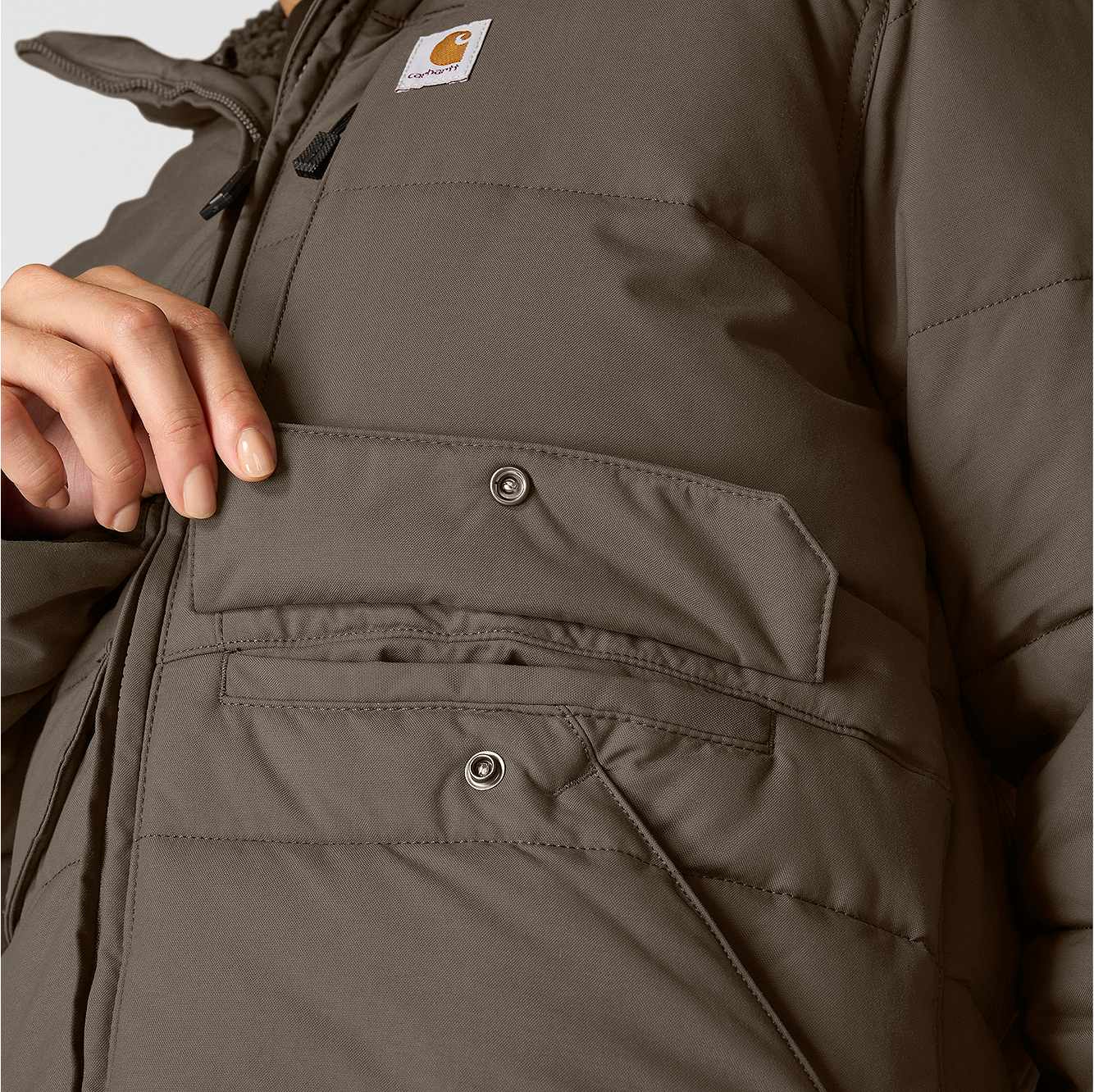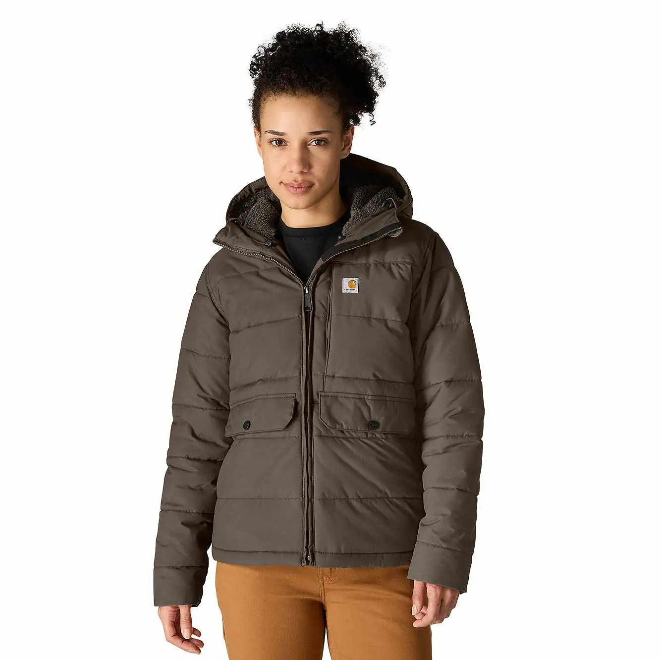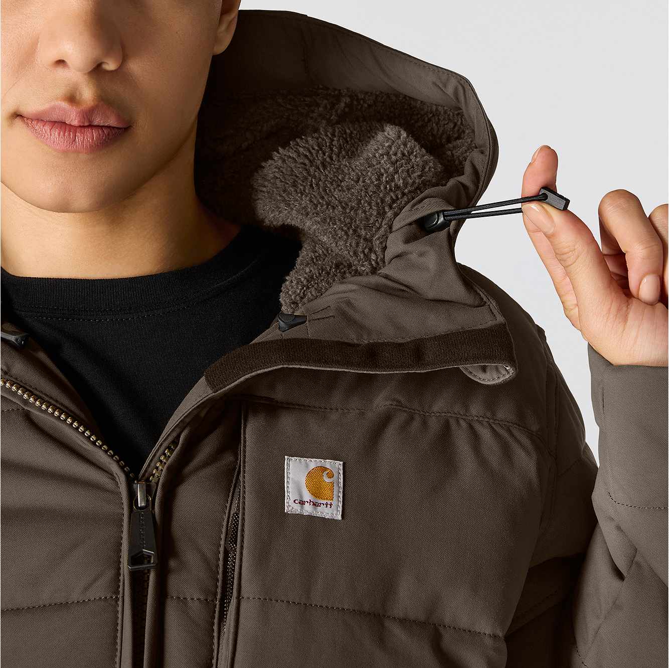 You can rely on this women's puffer jacket to keep you warm and dry on blustery days or during surprise snow showers. It's built to last from quilted nylon that blocks wind and sheds light rain. Synthetic insulation and a soft sherpa fleece lining in the upper body seal in heat, while hidden elastic cuffs keep out the chill.