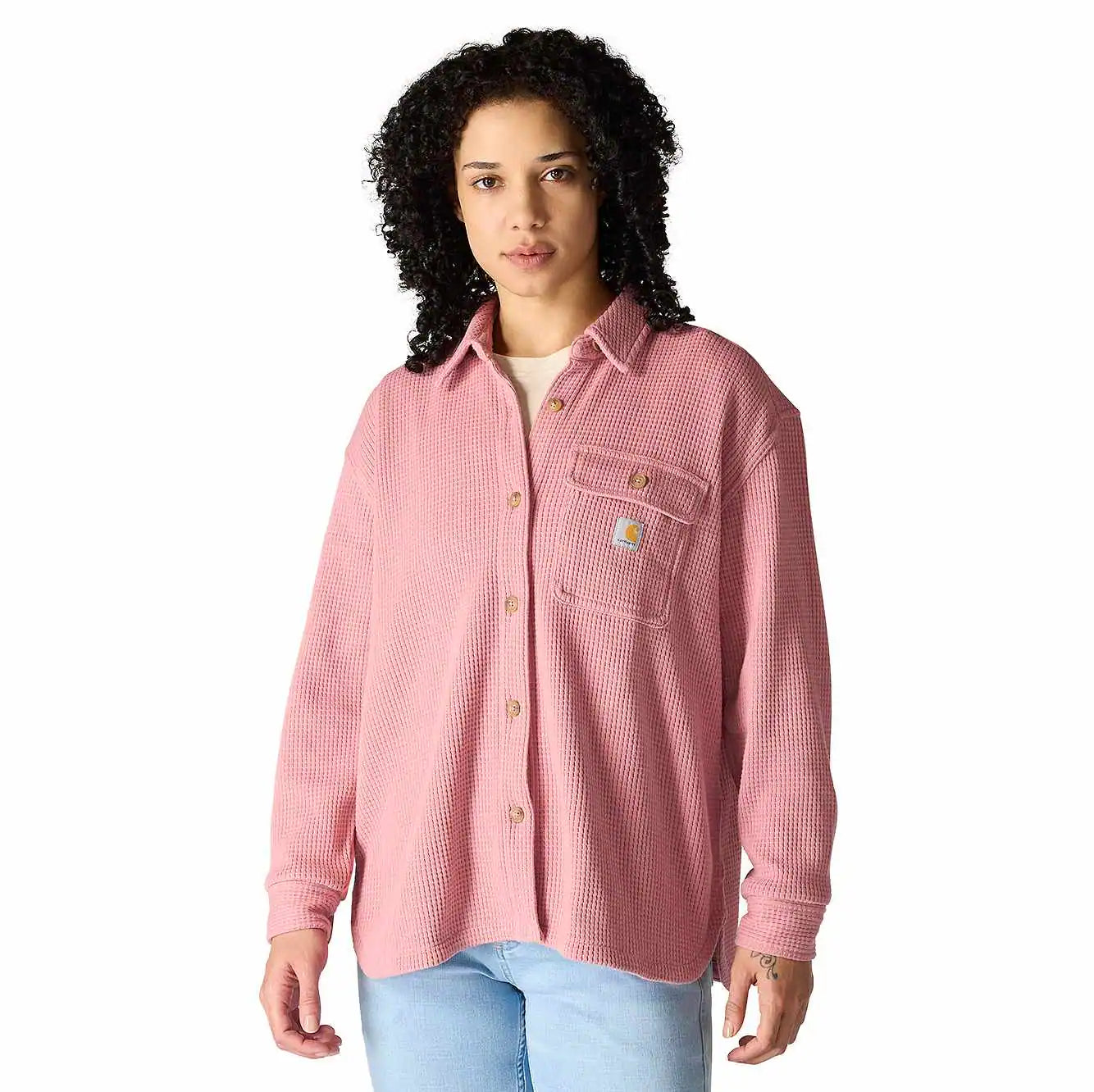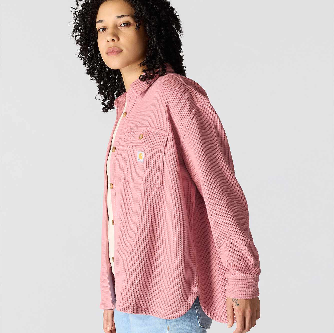 Made with an oversized fit for layering on cold days, this women's waffle knit shirt balances warmth and breathability. The heavyweight cotton blend has a soft feel and everyday durability.
