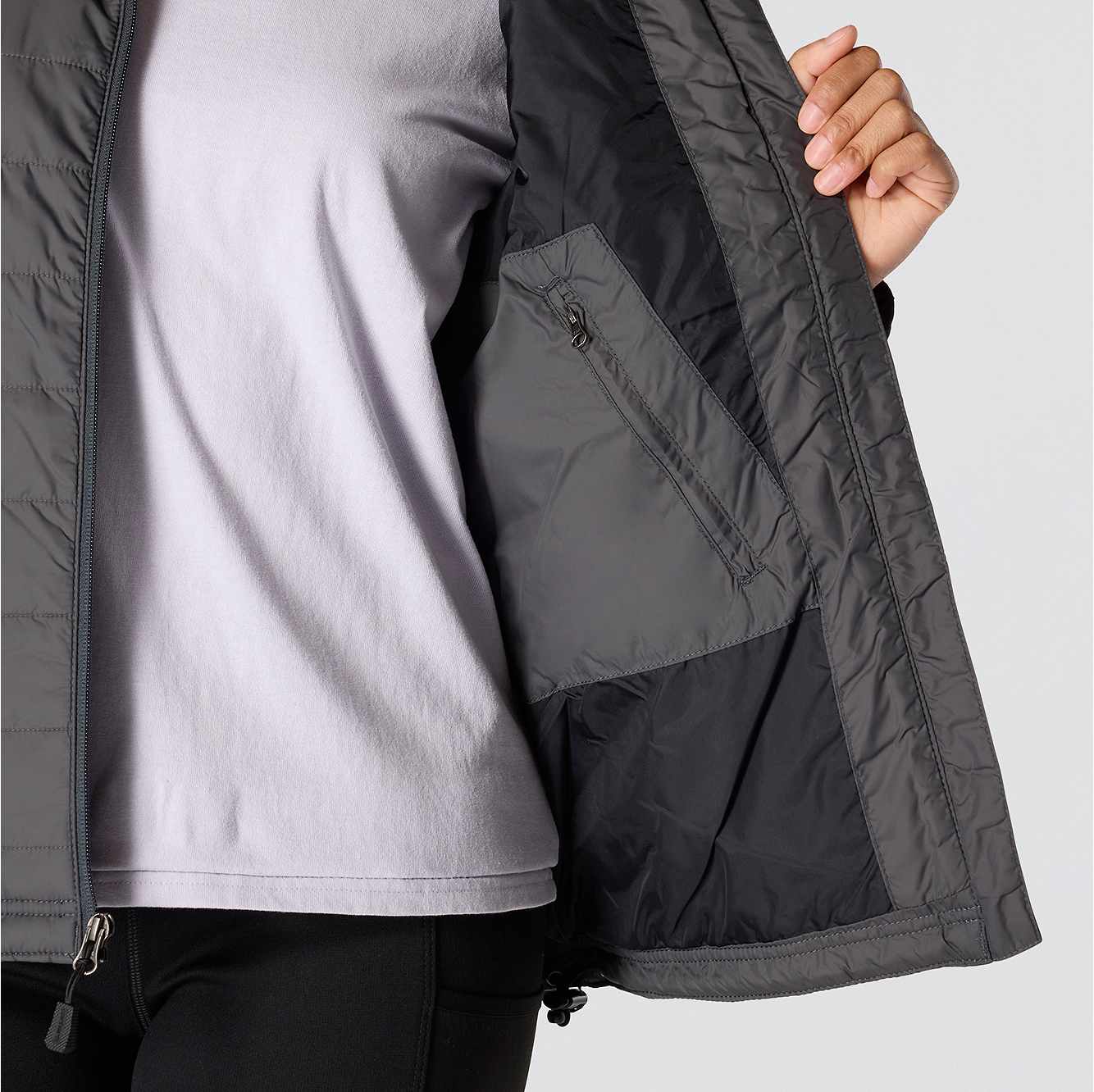 Keep working through cold, wet weather. This women's lightweight jacket has a sturdy nylon shell that shrugs off light rain. Insulated for warmth with a quilted lining for extra comfort