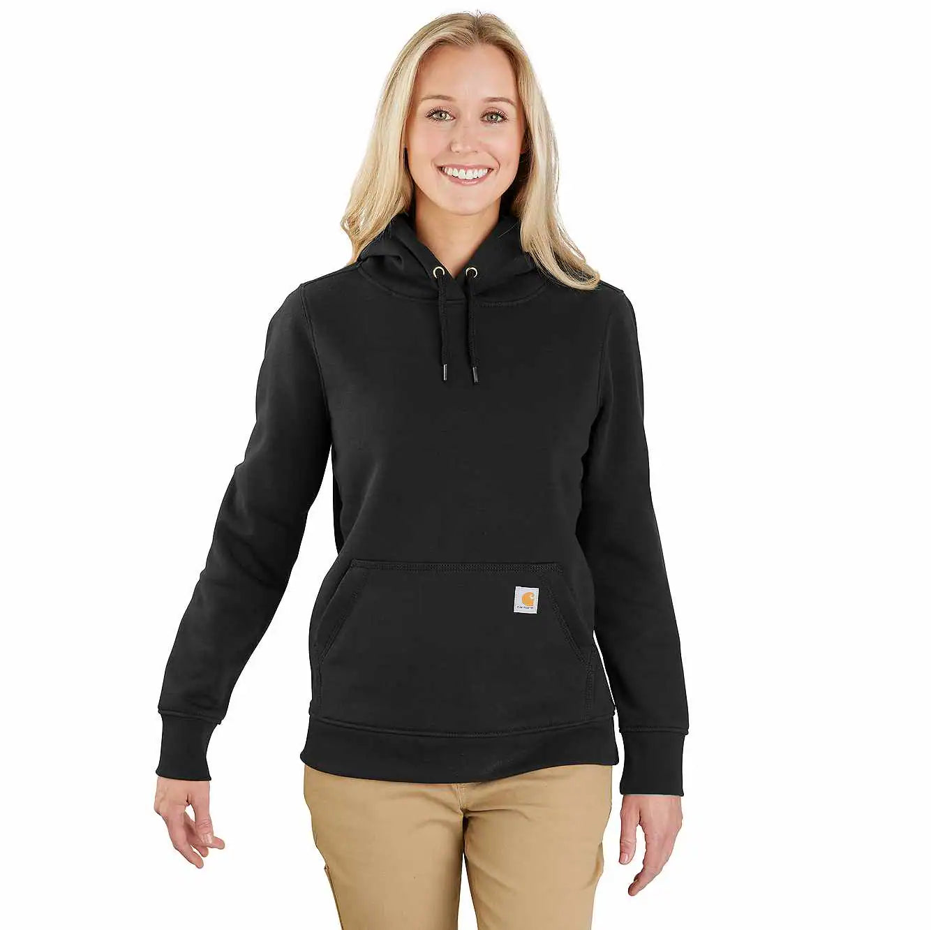 When there's rain in the forecast, this women's hooded Carhartt sweatshirt keeps you dry through damp weather. The midweight cotton blend resists light rain and adds warmth to keep you focused on the job at hand. The relaxed fit sits closer to the body than our loose fit but still offers a little extra room to move.