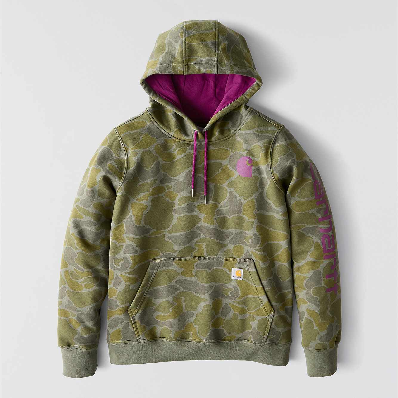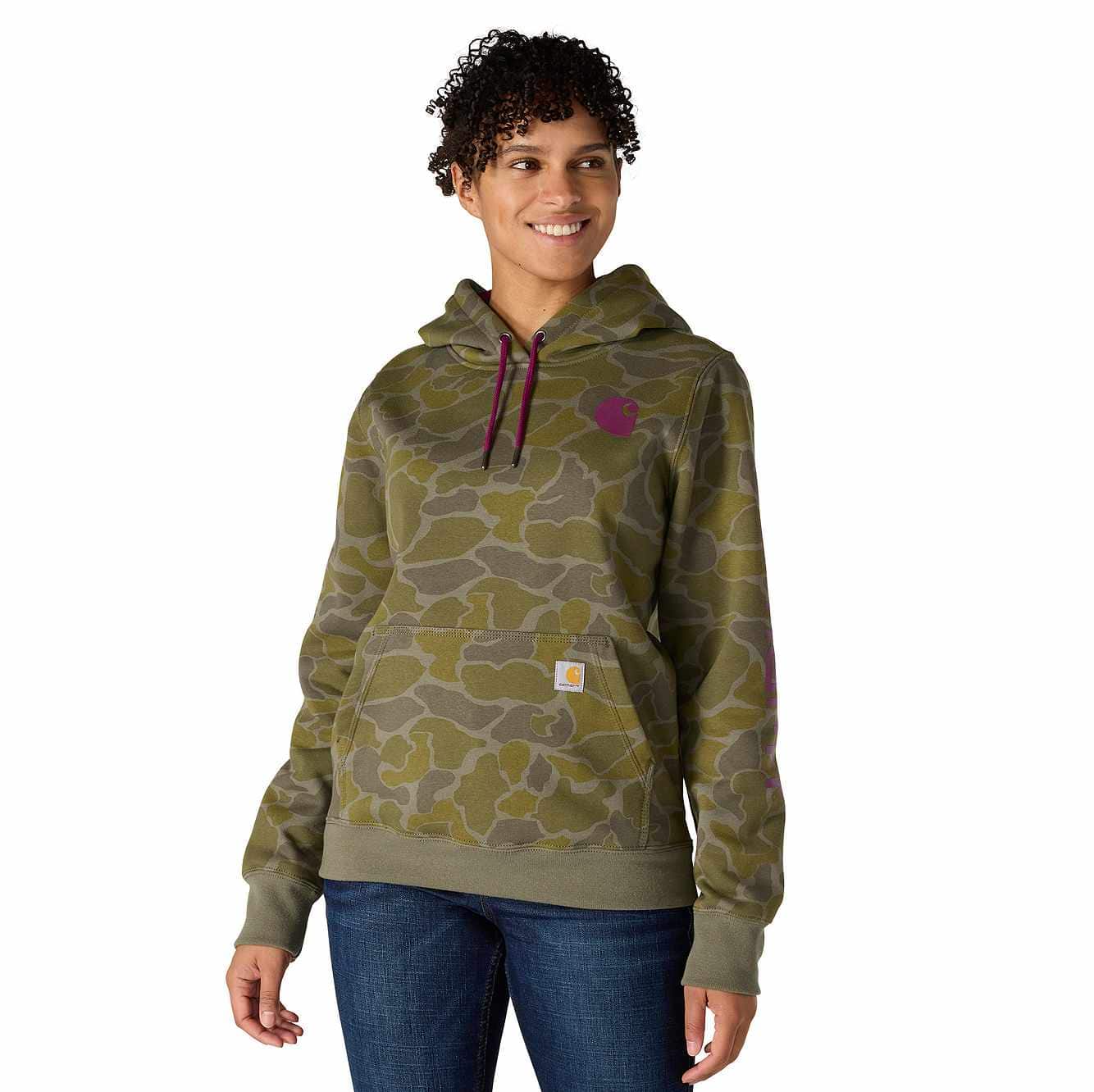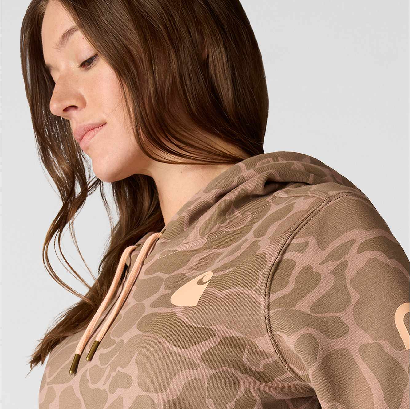 Versatile midweight warmth and casual comfort. This women's camo hoodie is a go-to layer on workdays and weekends alike. A relaxed fit offers a little extra room to move.