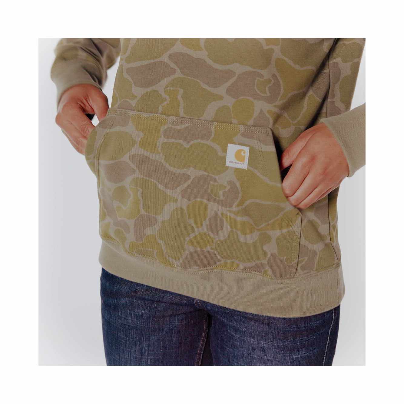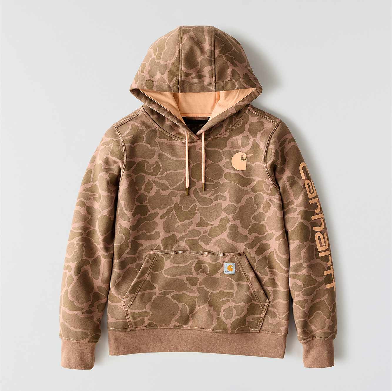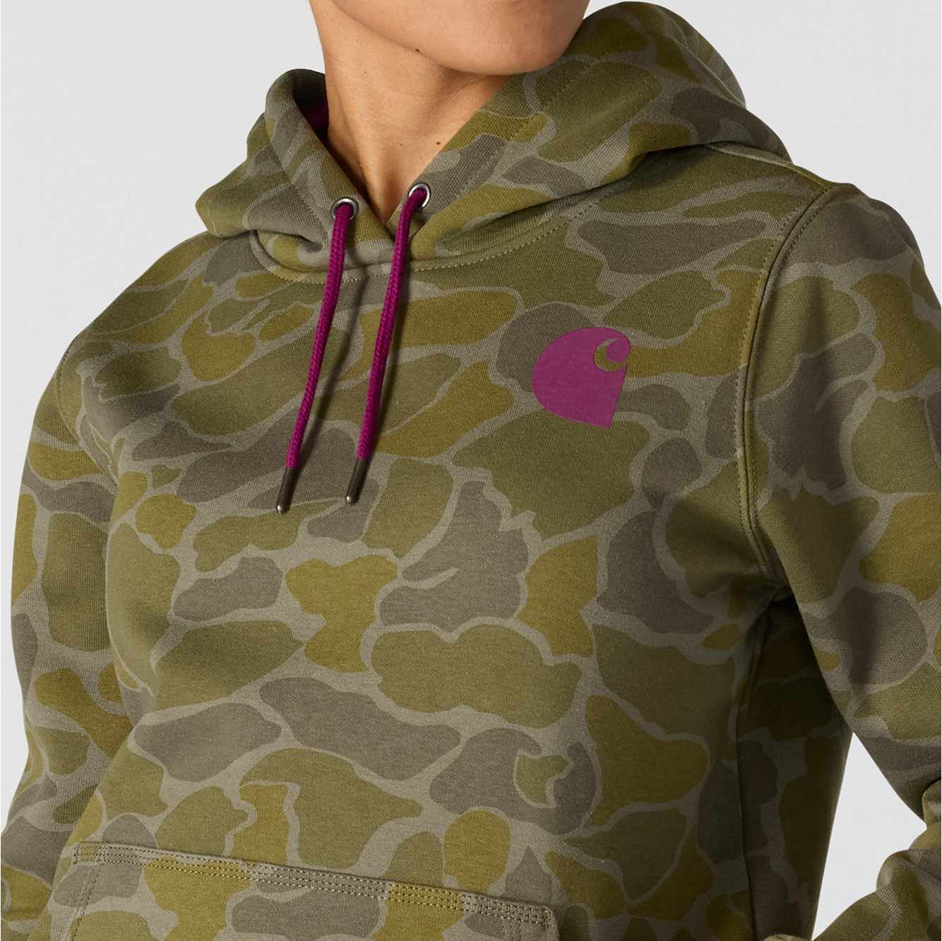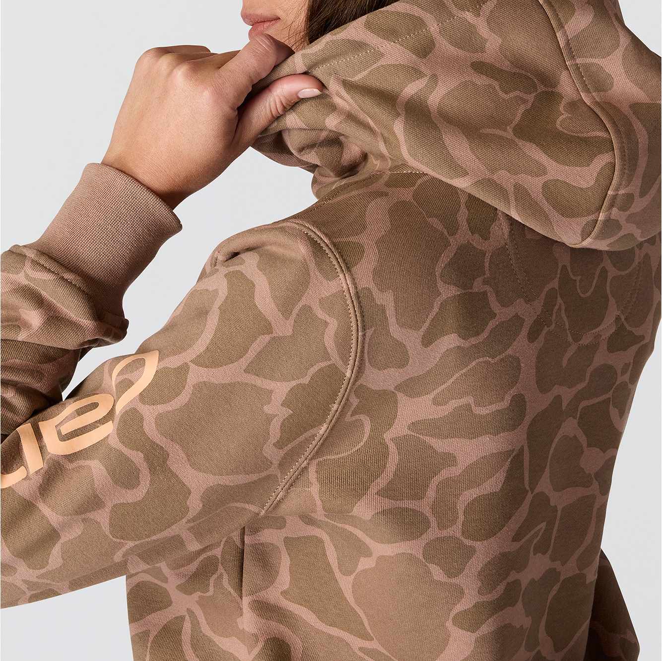 Versatile midweight warmth and casual comfort. This women's camo hoodie is a go-to layer on workdays and weekends alike. A relaxed fit offers a little extra room to move.