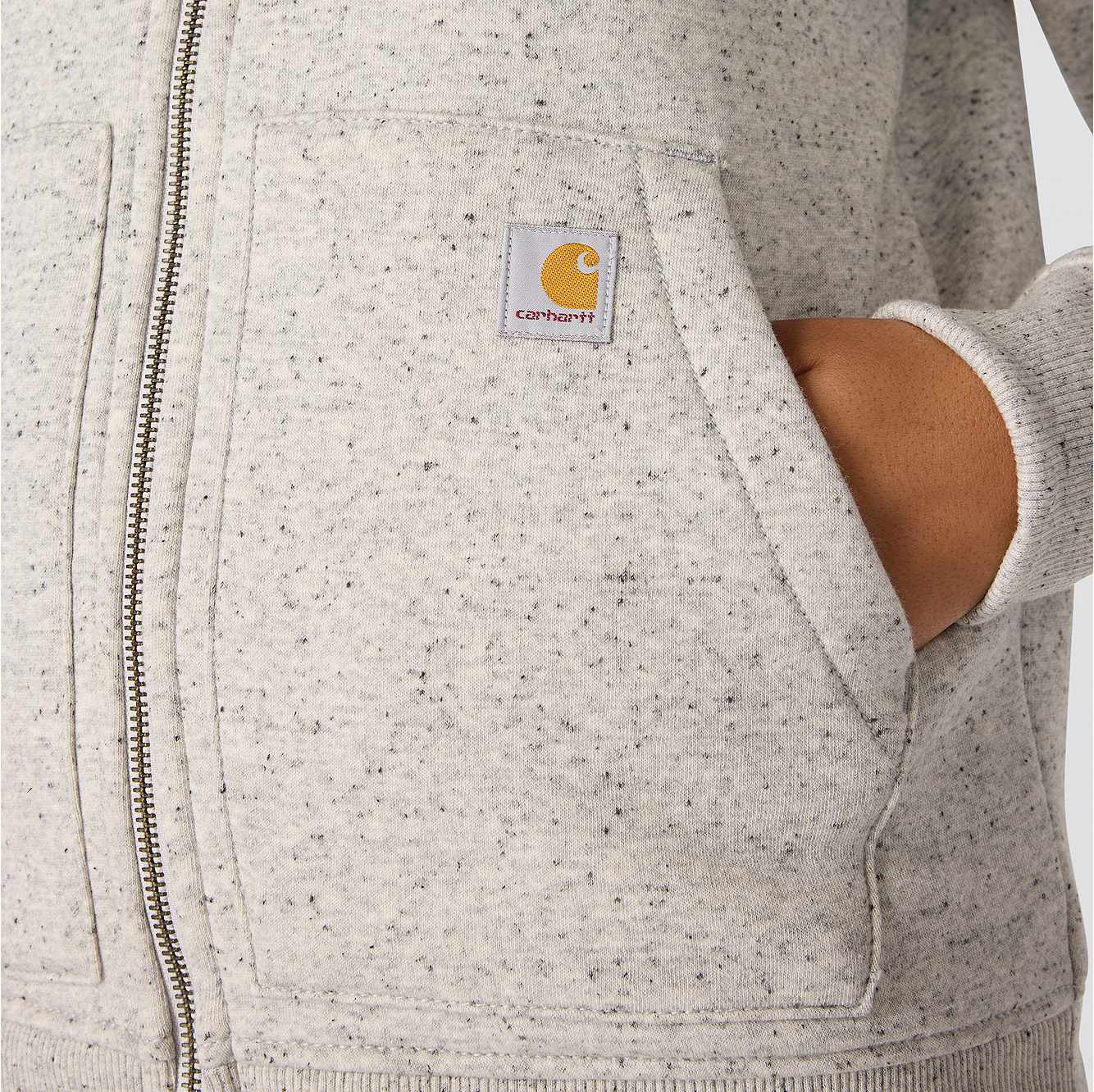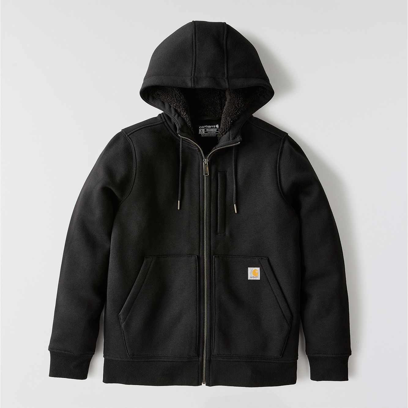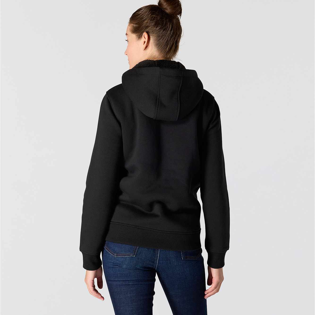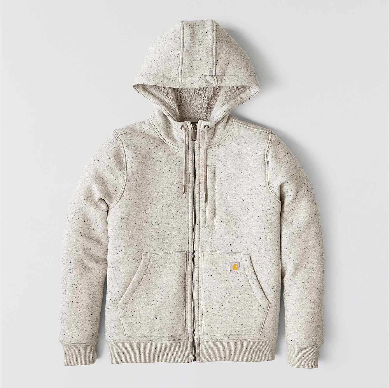 Weekend project or brisk evening around camp, this women's full-zip Carhartt sweatshirt packs the warmth to get you though cool days and nights. It's lined with thick sherpa fleece including the hood for warmth that you can feel as soon as you pull it on. The relaxed fit sits closer to the body than our loose fit but still offers a little extra room to move.