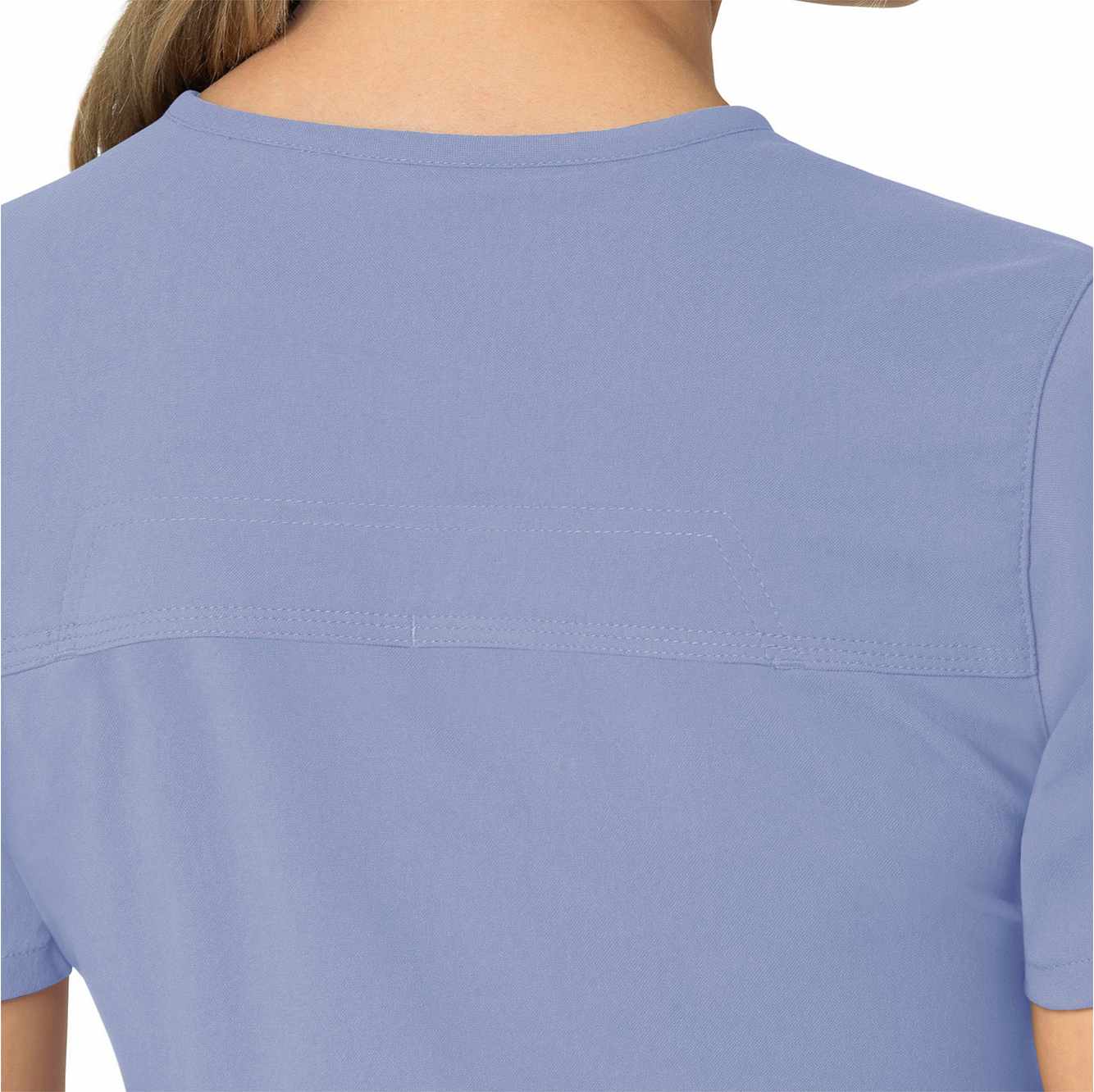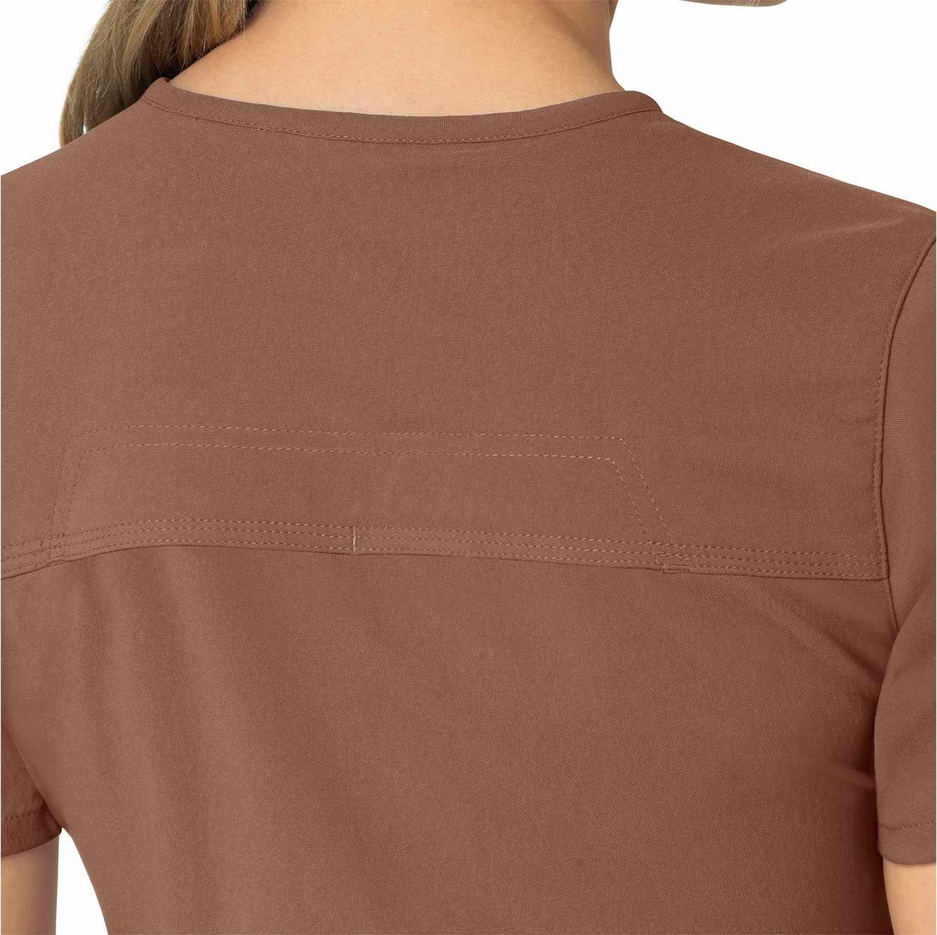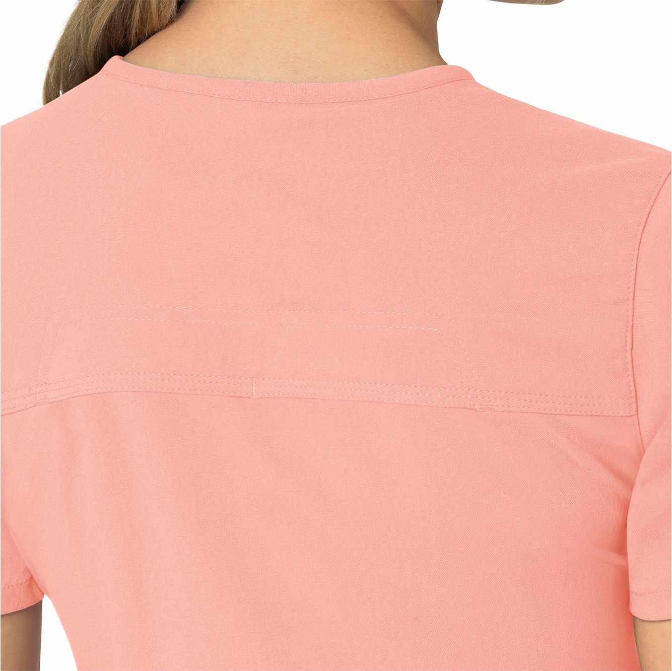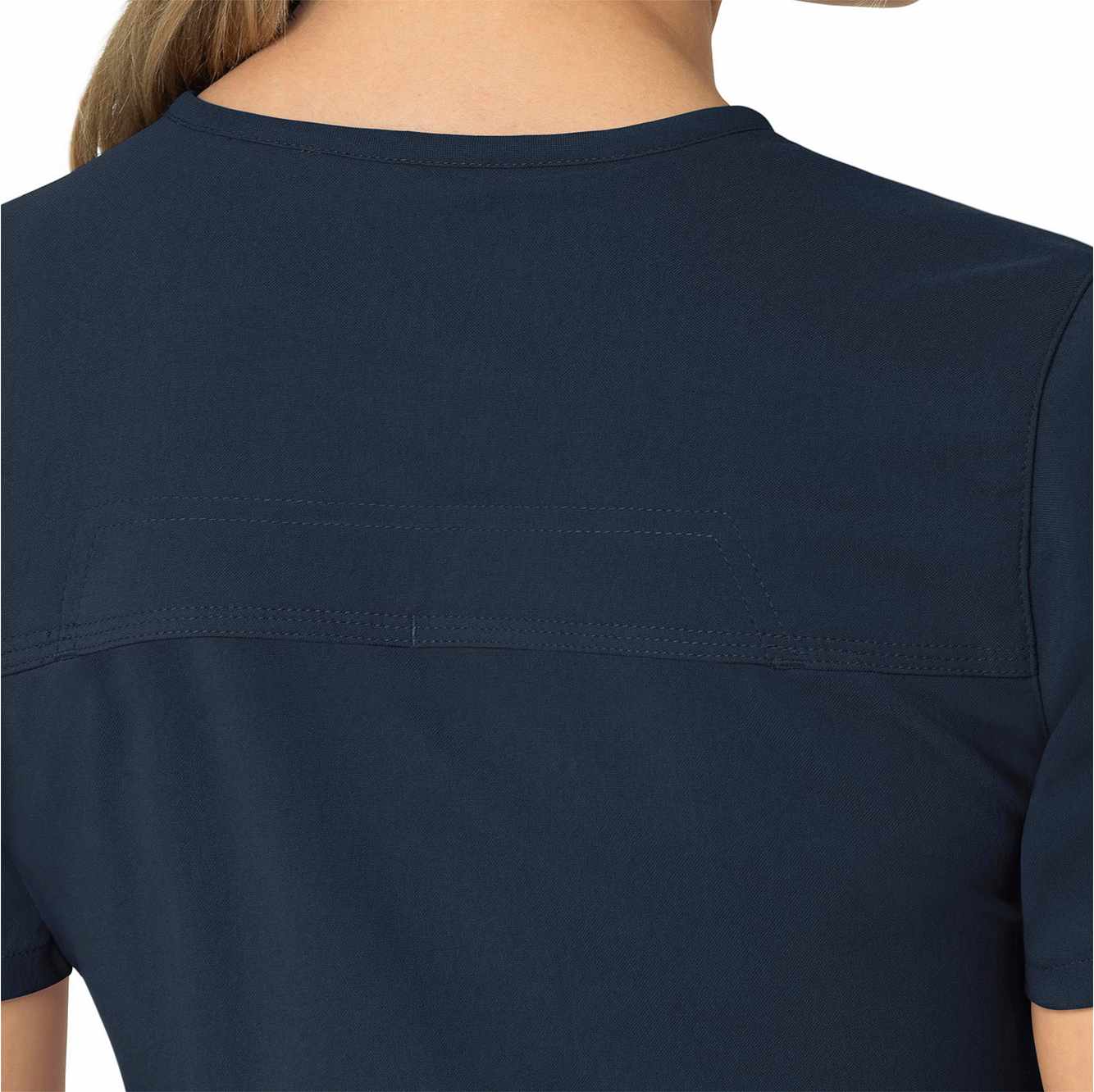 When your workday is non-stop, this women's scrub top keeps you cool and comfortable. Polyester fabric with built-in flex repels water and water-based stains. A mesh-lined back panel allows the air to flow as you move through busy shifts. Multiple pockets, including two angled zip pockets, keep supplies within easy reach.