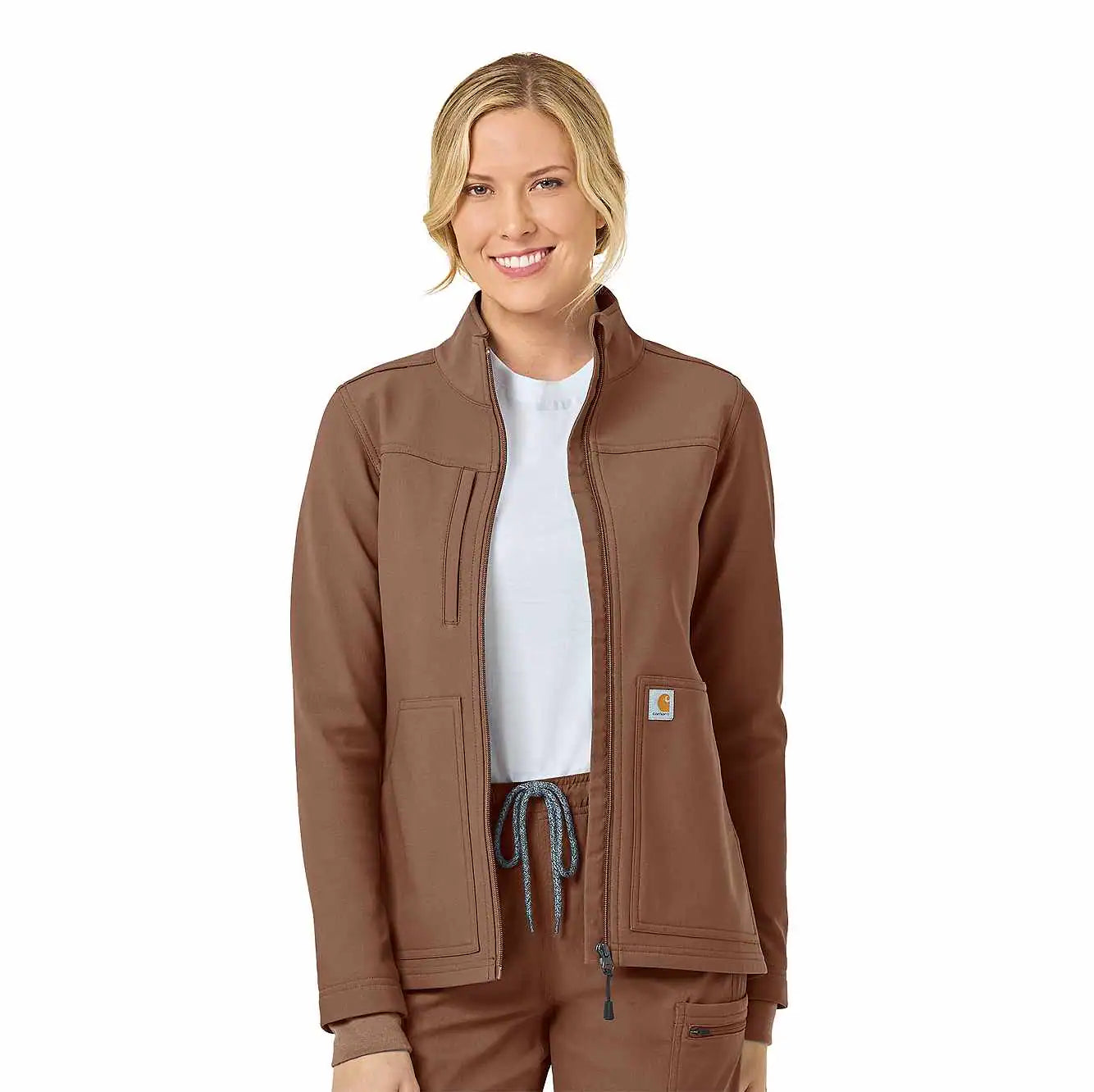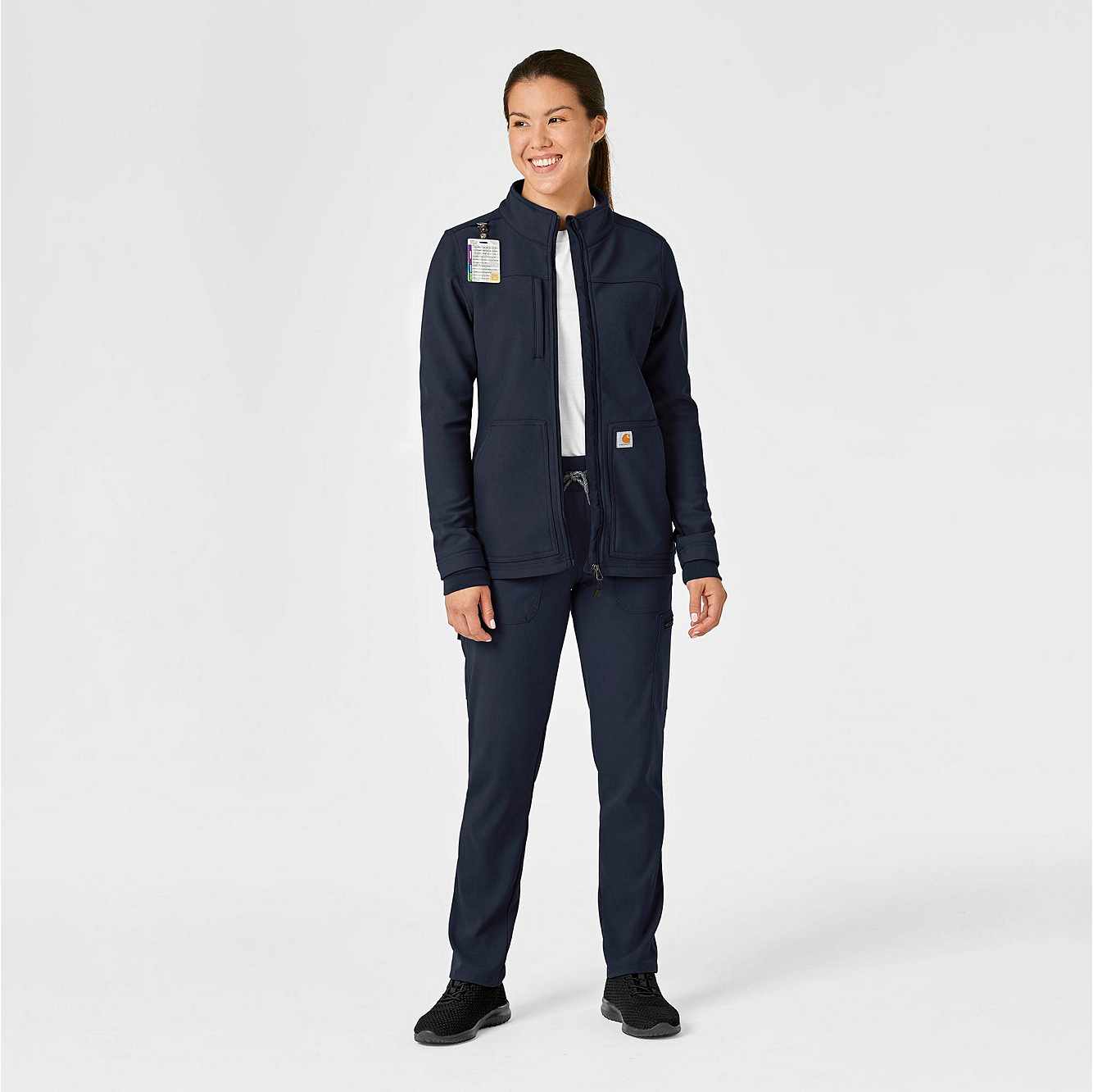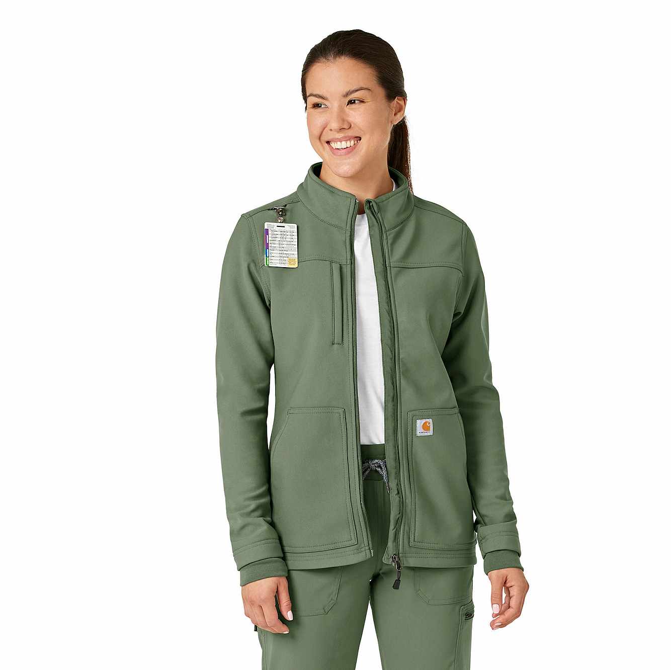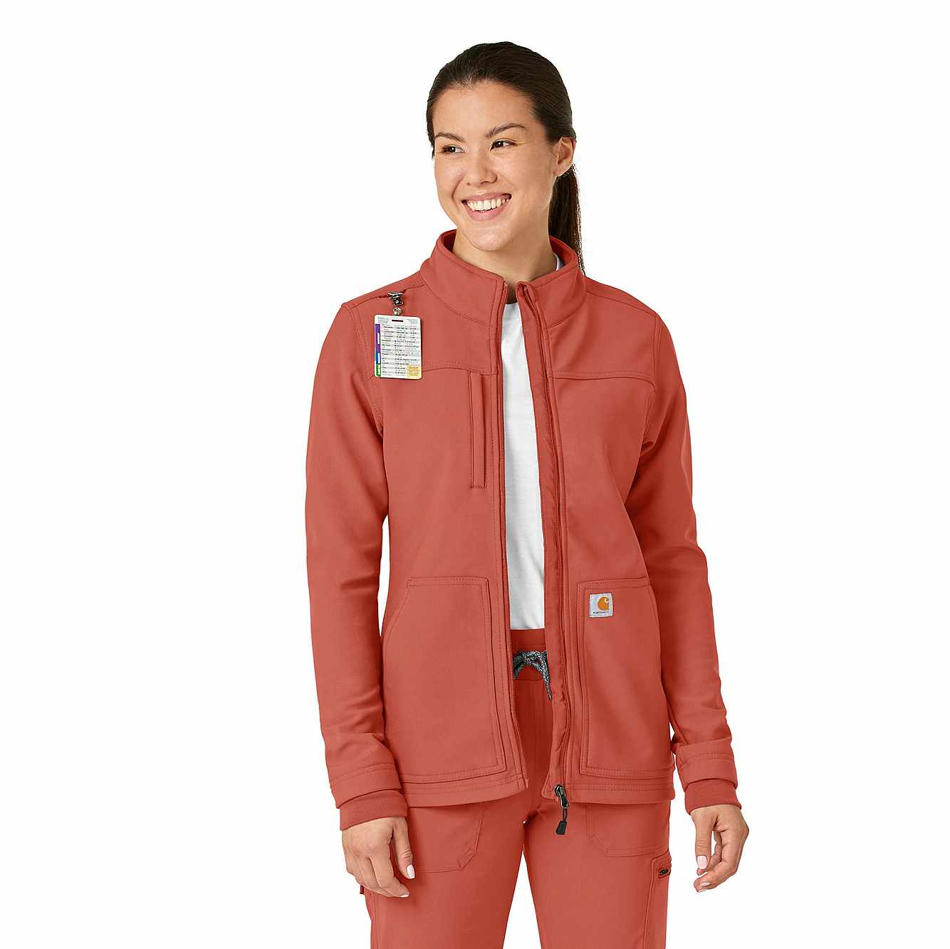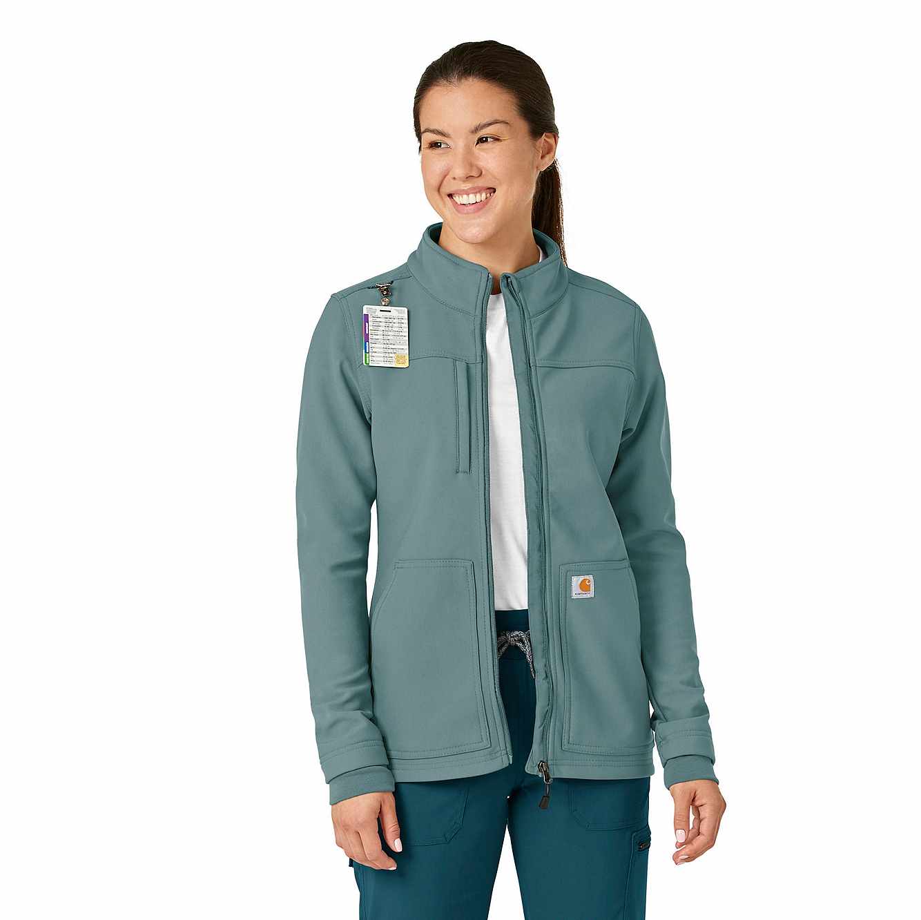 When the shifts are long and the pace is fast, this women's bonded fleece scrub jacket delivers warmth, comfort and easy range of movement with Rugged Flex® stretch technology to help you get the job done. HEIQ ECO DRY technology provides eco-friendly durable water repellency to help keep you dry.