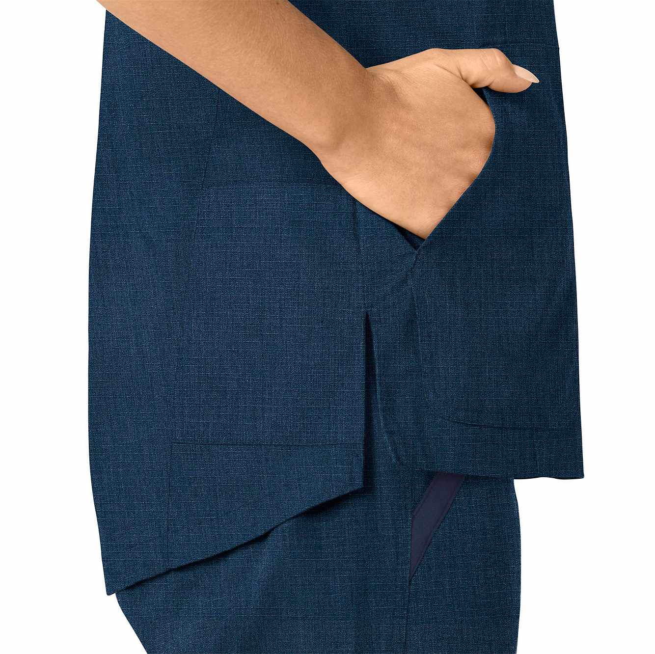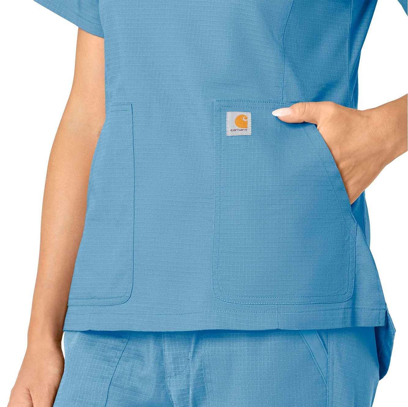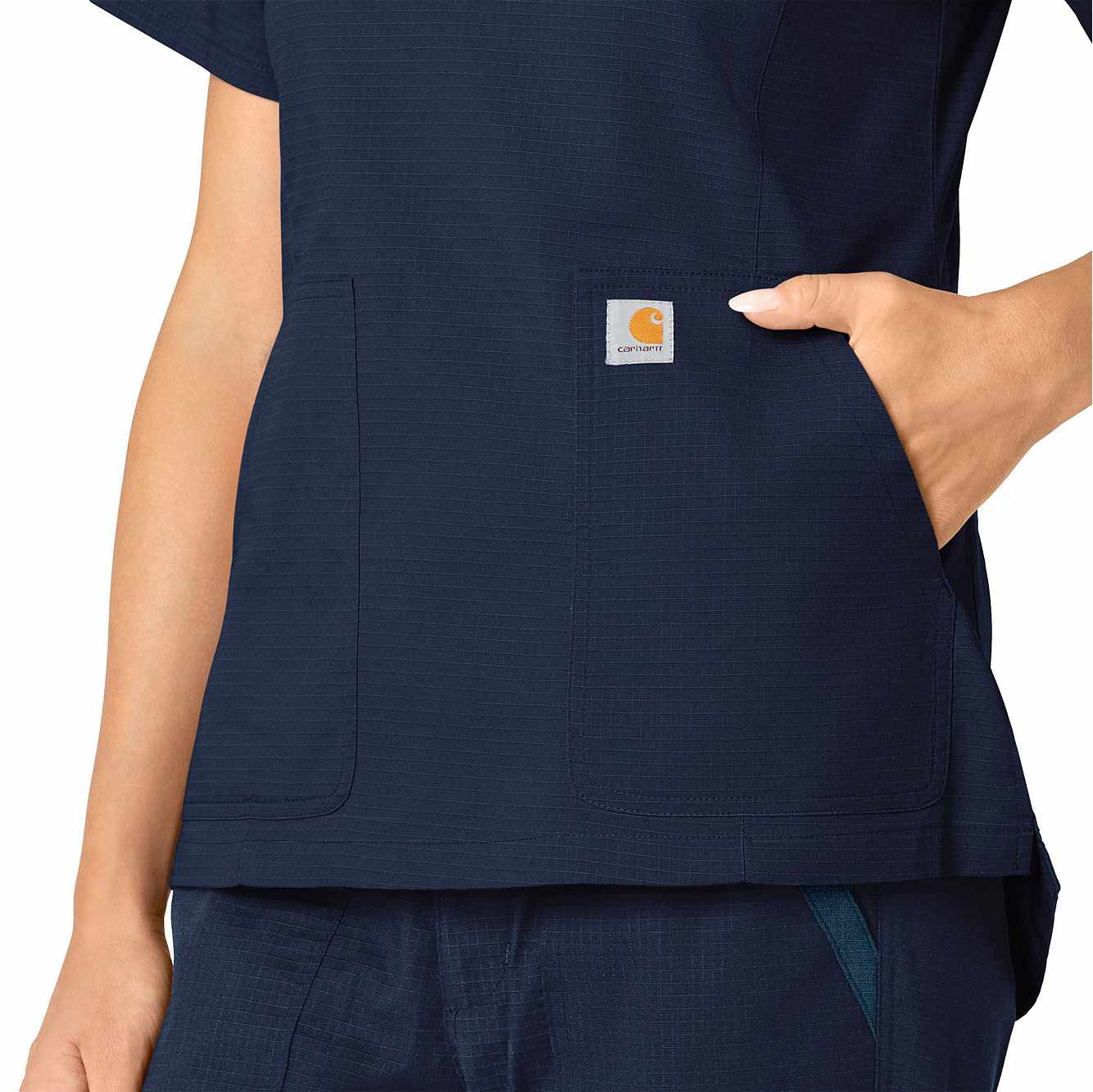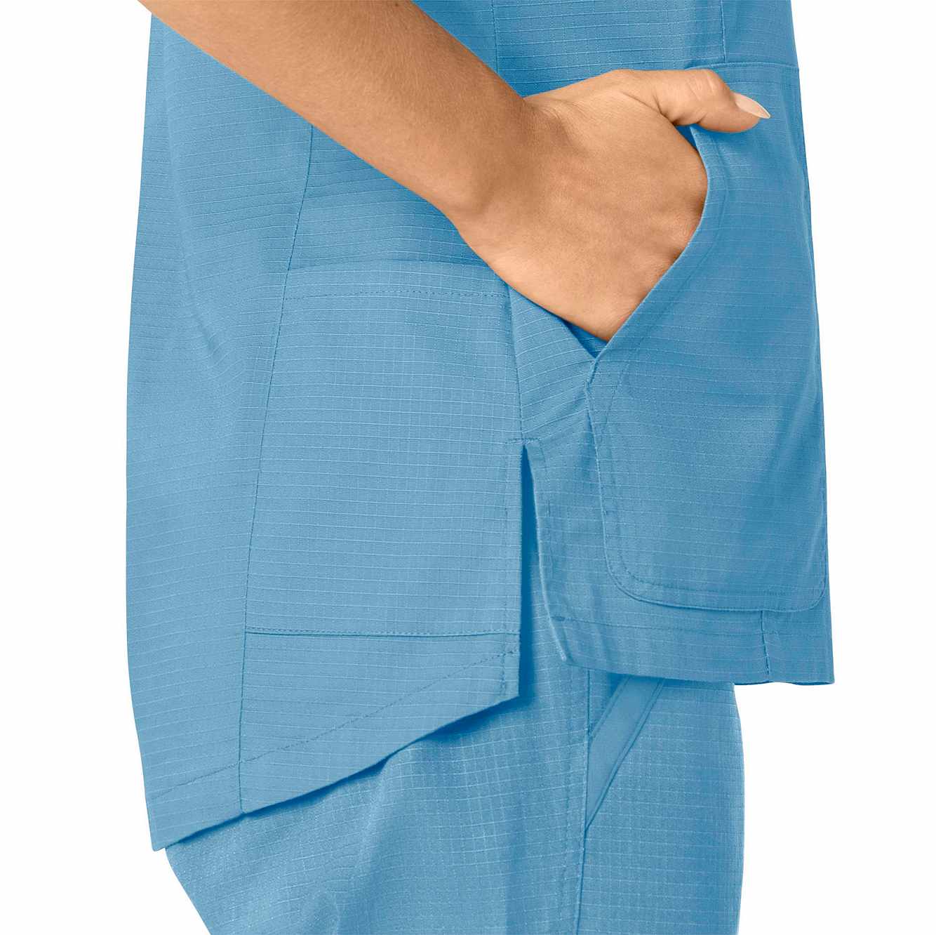 Stay organized throughout your shift in this women's V-neck scrub top. Large front patch side-entry pocket skeep everything from your pen to your phone within easy reach. The ripstop cotton-blend build features a back pleat and a split hem for a full range of mobility for reaching, lifting, and bending on the job.
