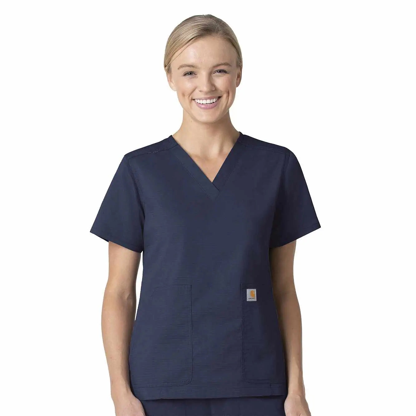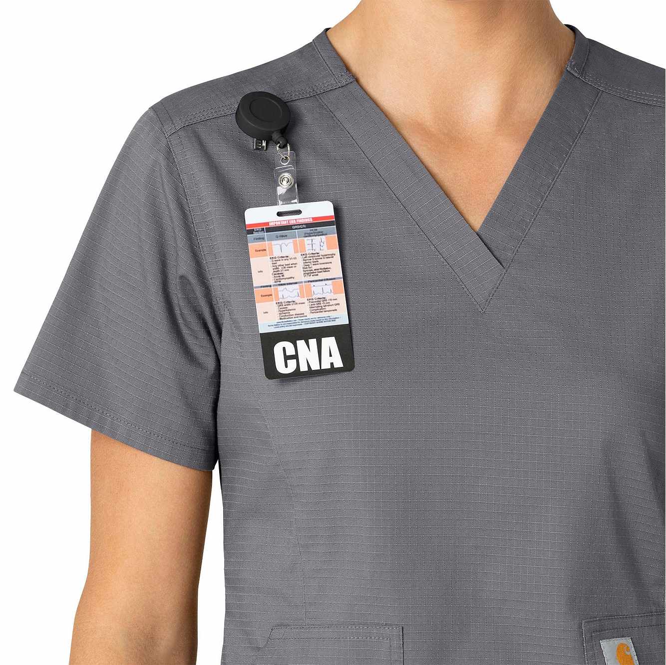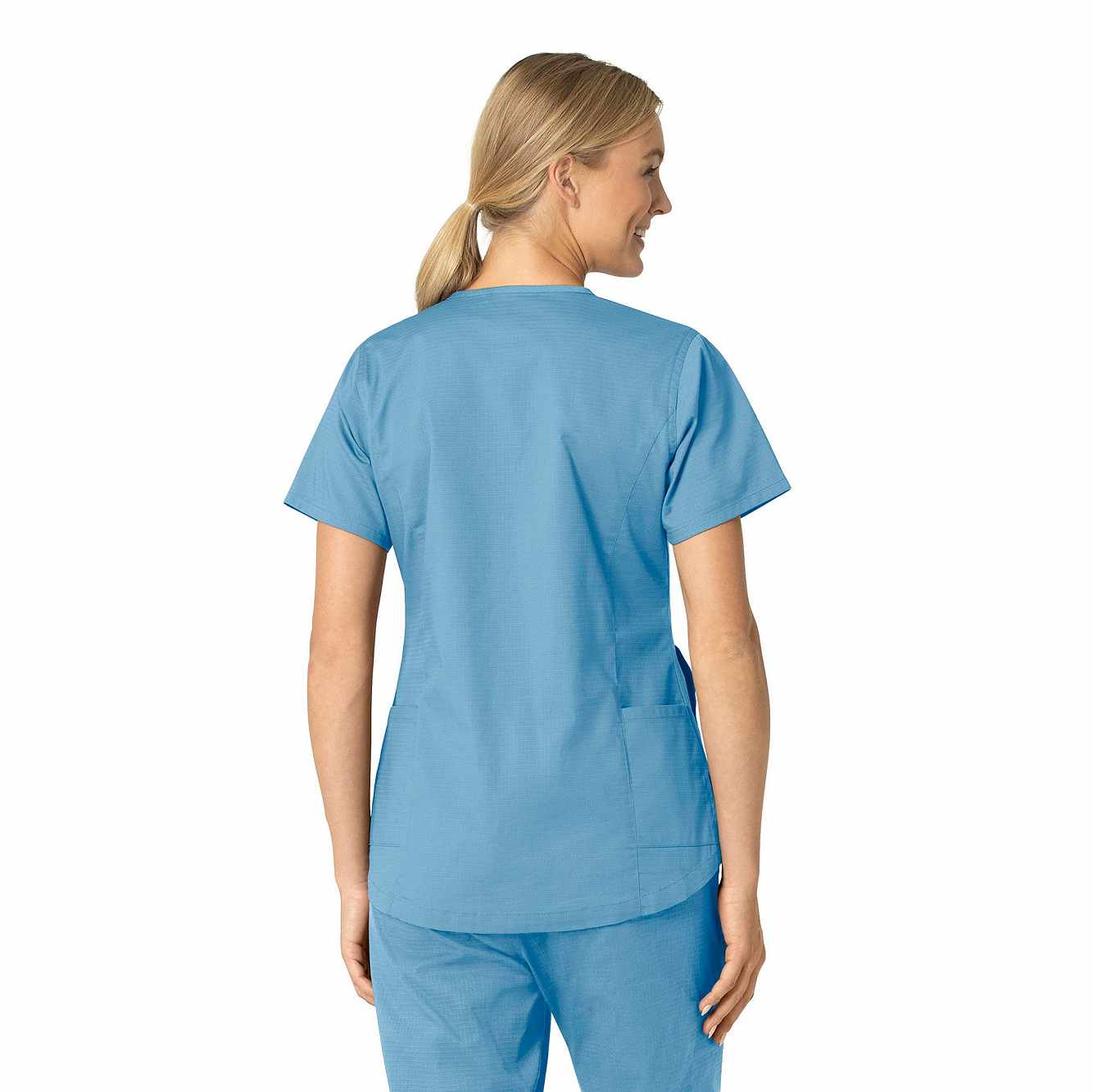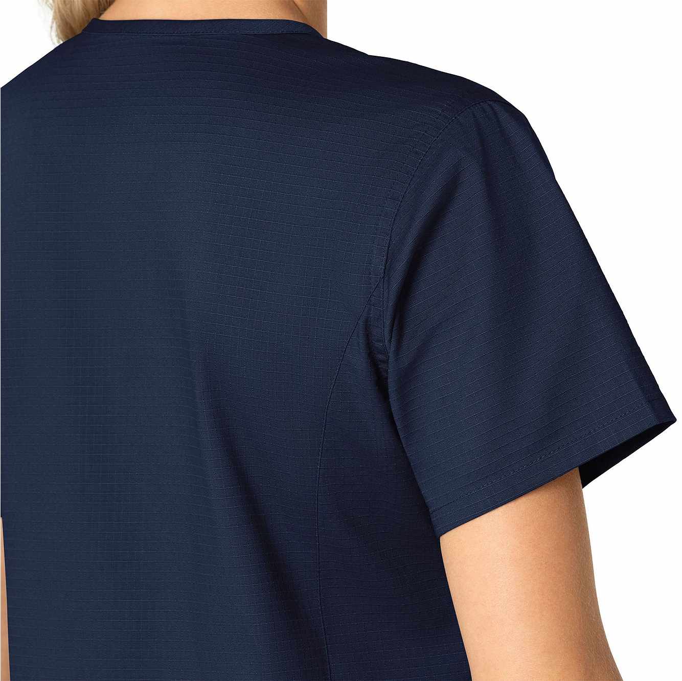 Stay organized throughout your shift in this women's V-neck scrub top. Large front patch side-entry pocket skeep everything from your pen to your phone within easy reach. The ripstop cotton-blend build features a back pleat and a split hem for a full range of mobility for reaching, lifting, and bending on the job.