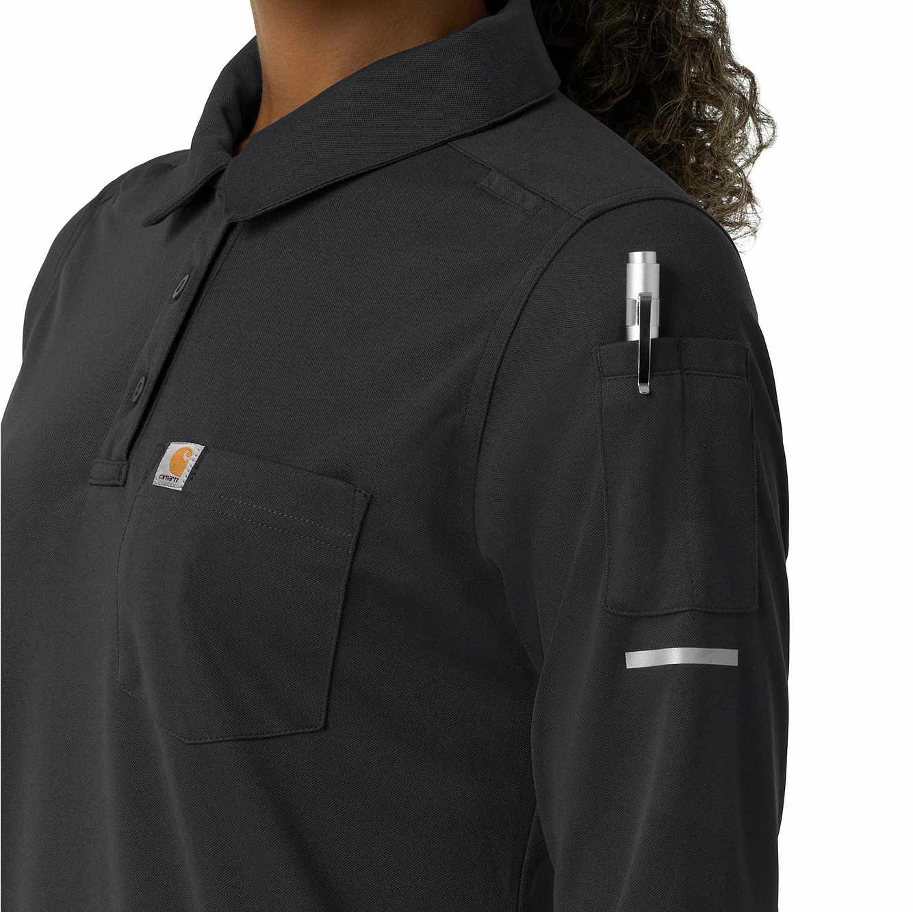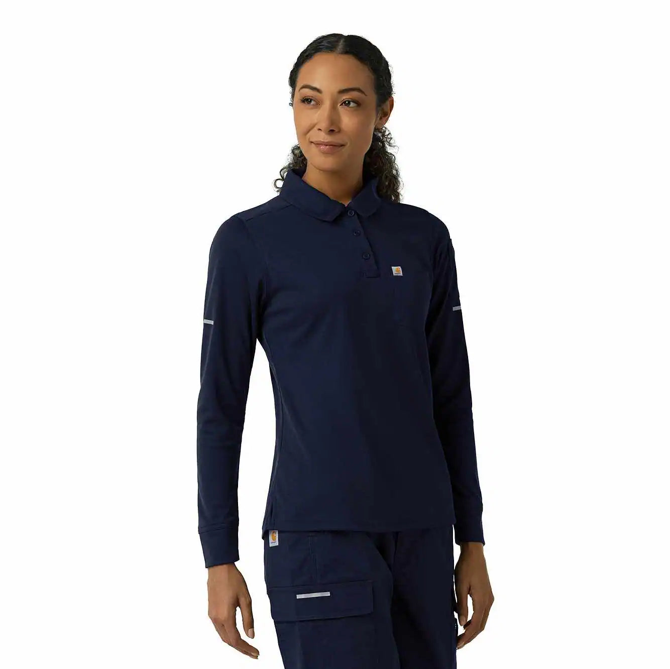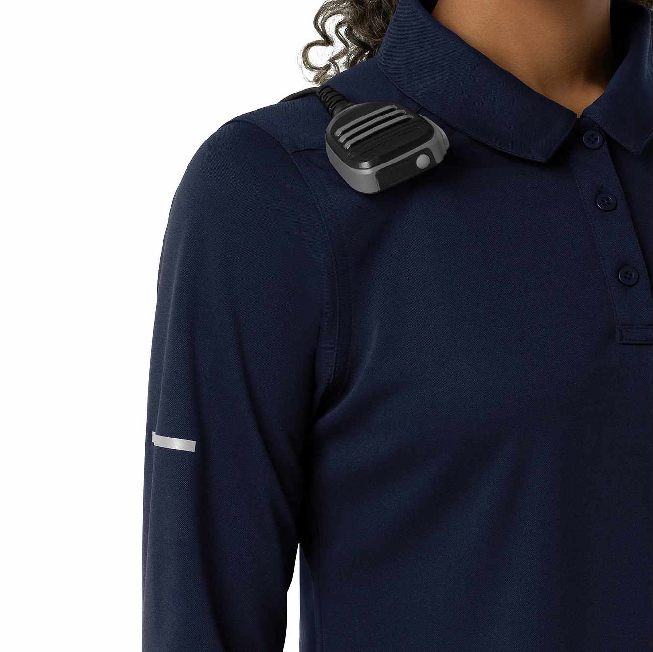 When you're on the front lines of emergency response, you need a uniform that can keep up. This women's long sleeve polo top is built for those critical moments when anything can happen. Crafted from a substantial heavyweight poly pique fabric, it provides reliable durability and a professional appearance that instills confidence. The long sleeves offer added coverage and protection, while the breathable fabric ensures comfort even in high-pressure situations. This polo is equipped to handle the demands of emergency response with a range of specialized features. Multiple pockets provide secure storage for essential tools and equipment, keeping everything you need organized and within reach. Integrated mic clips offer convenient access to communication devices, allowing for clear and efficient communication during critical moments. A utility loop provides a secure attachment point for keys or other small essentials, and a reinforced bartack ensures your pen is always at the ready for documentation. With its combination of durable construction, specialized features, and a professional appearance, this long sleeve polo top is a trusted choice for those who dedicate themselves to emergency response. It's a uniform that reflects the seriousness of your profession while providing the comfort and functionality you need to perform at your best, no matter the challenge.