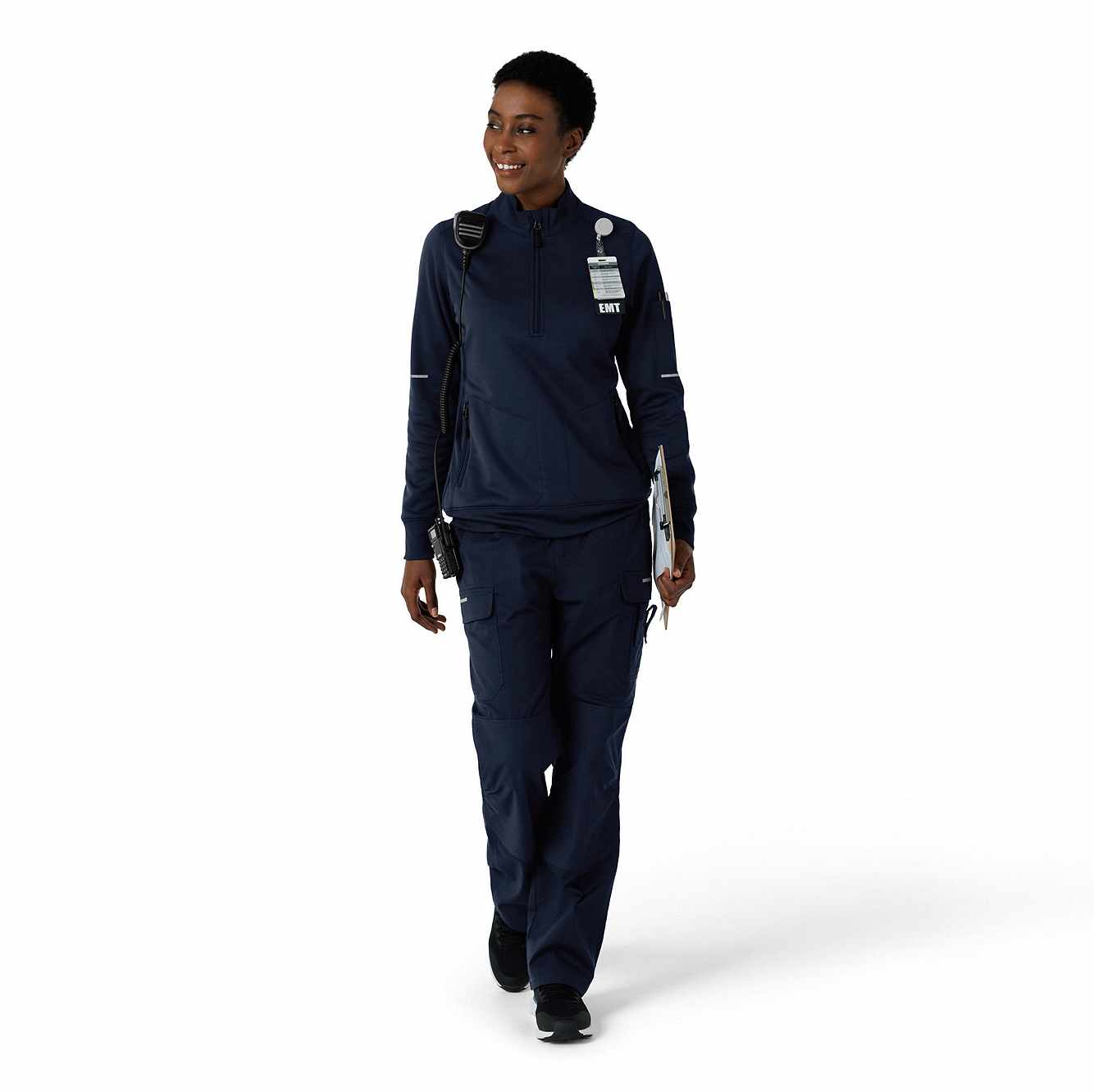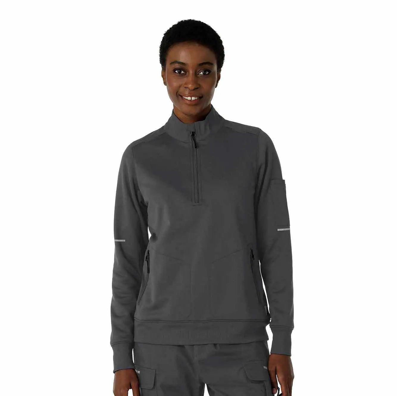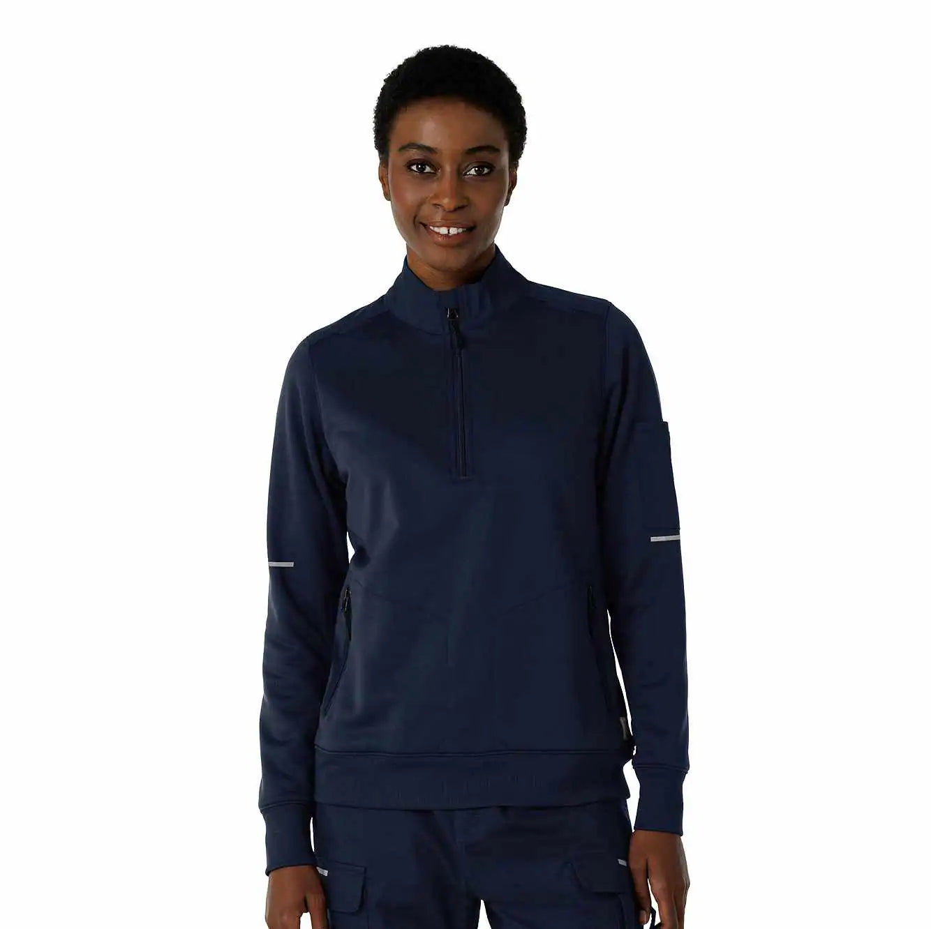 When your work takes you into unpredictable environments and challenging conditions, you need a layer that's ready for anything. This women's half-zip pullover is designed to provide reliable warmth and protection, no matter where your job leads you. Crafted from a cozy polyester fleece with a Durable Water Repellent (DWR) coating on the body, this half zip offers exceptional warmth and protection against light rain and moisture. The half-zip design allows for easy ventilation and temperature regulation, ensuring you stay comfortable in fluctuating conditions. Functionality is key, and this pullover is equipped with four pockets to keep your essentials organized and secure. Two of these pockets feature zippers, providing added security for valuables like your phone or wallet. Whether you're navigating a chilly worksite or braving the elements outdoors, this half zip is a versatile and reliable choice. With its combination of warmth, weather resistance, and practical features, this women's half-zip pullover is a must-have for anyone who demands versatility and performance from their gear. It's a dependable layer that will keep you comfortable and prepared, no matter what challenges come your way.