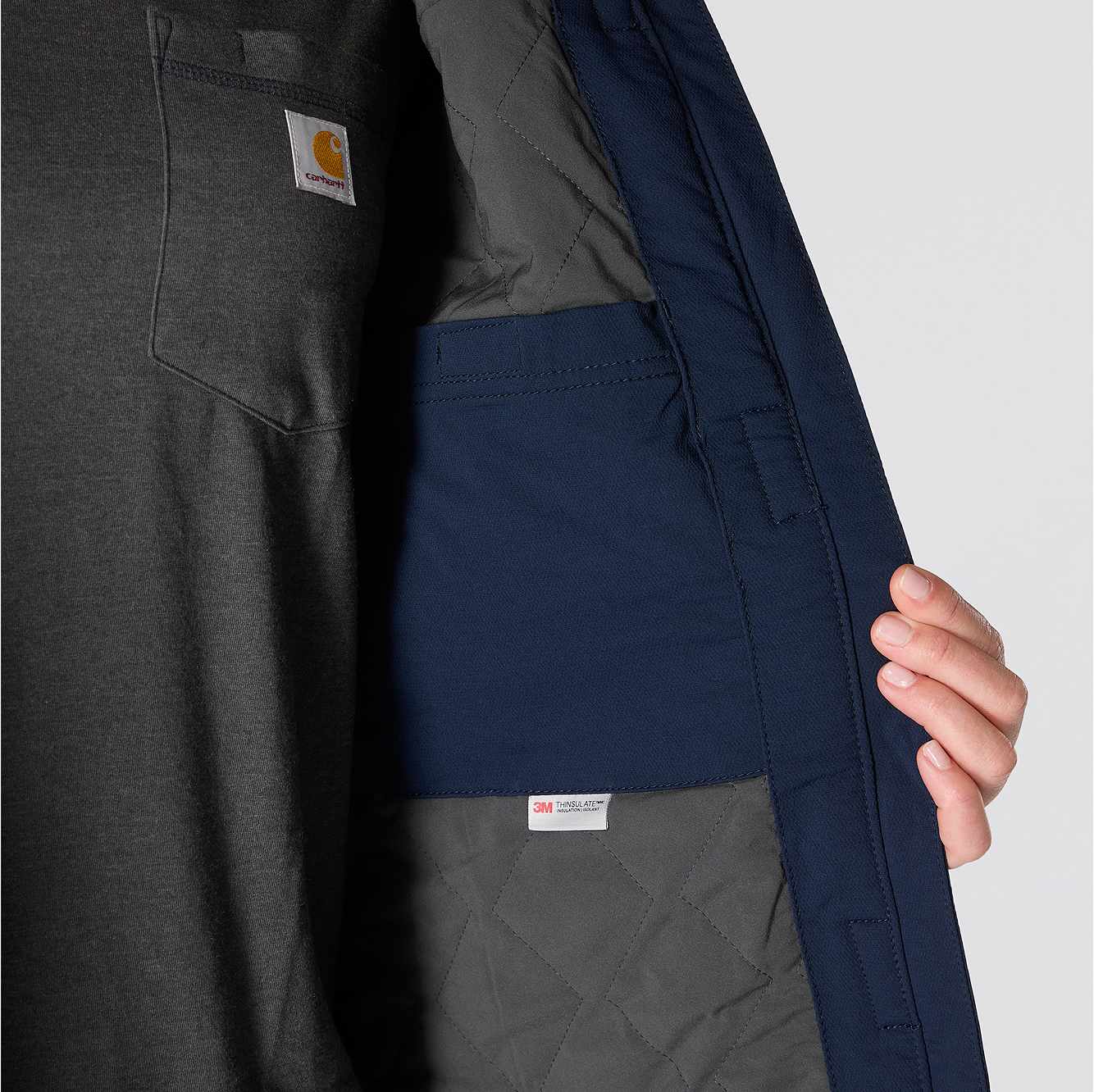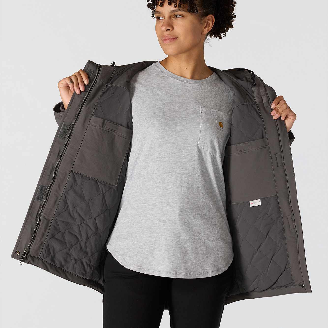 Carhartt has been working hard since 1889 to insure you have the best gear out there to get the job done. This women's jacket is made of durable nylon with built in stretch for easy movement. The water-resistant build protects against light rain and wind, while 100-gram insulation provides warmth without adding bulk.