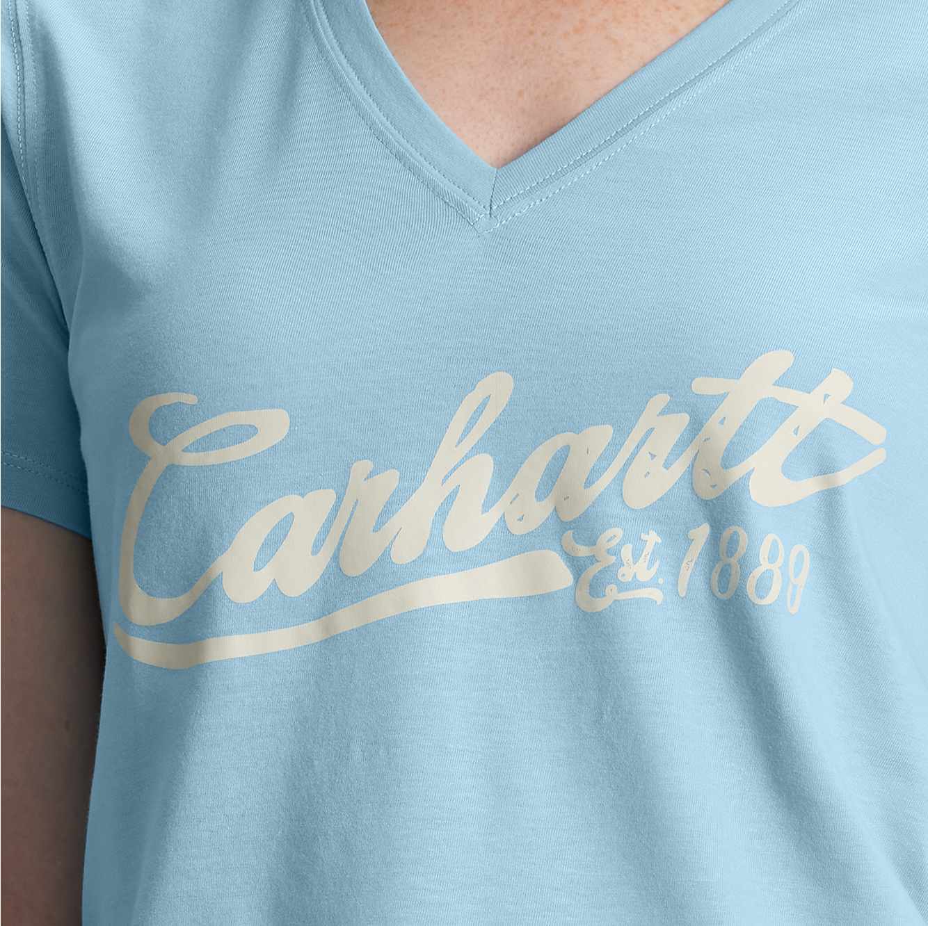 Soft and lightweight, this women's V-neck t-shirt redefines what comfort means in workwear. Made from breathable TENCEL™ fibers that don't sacrifice durability. Built for a relaxed fit, with a Carhartt graphic on the front.