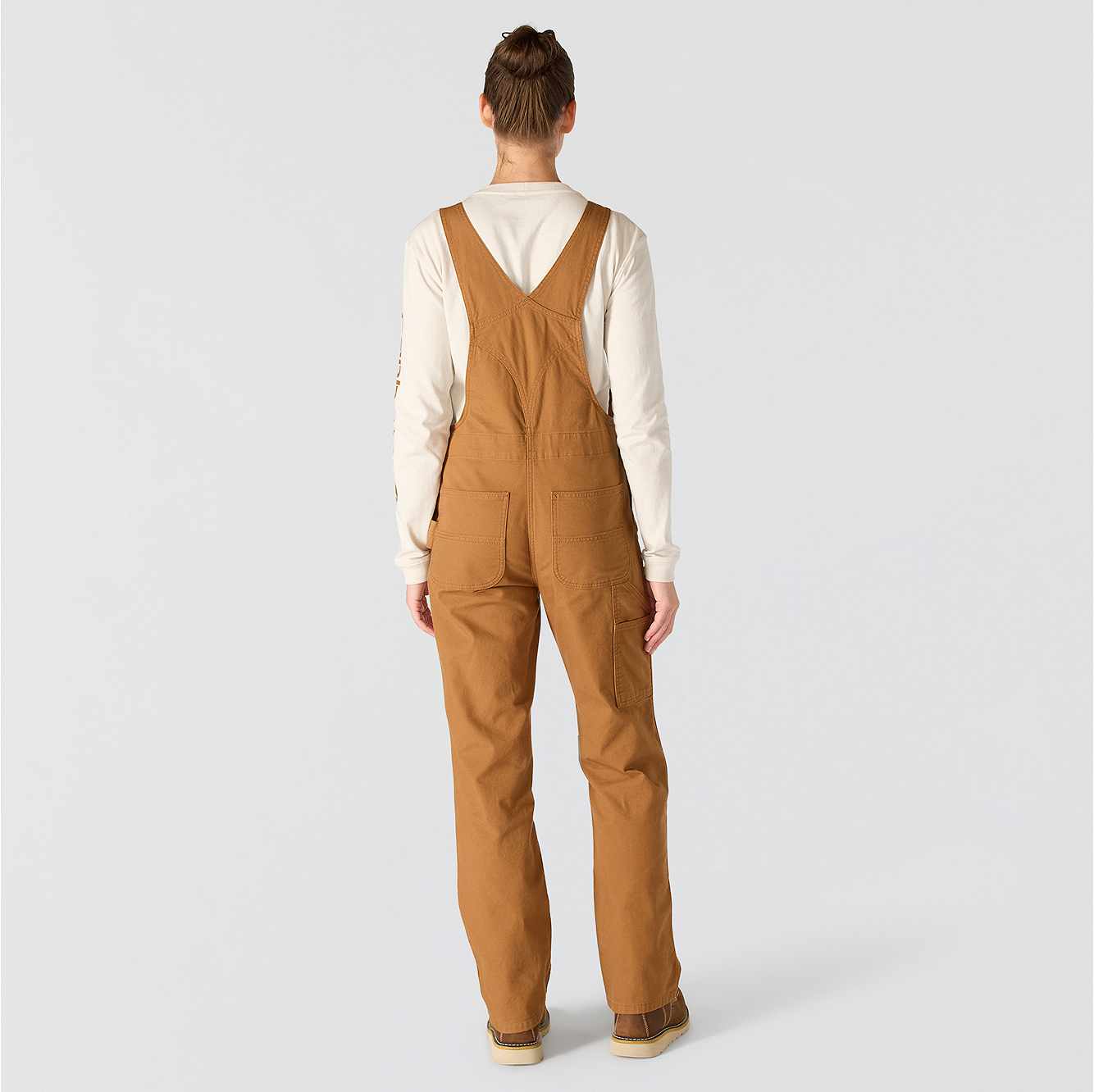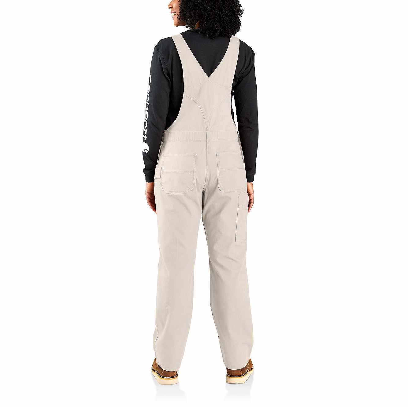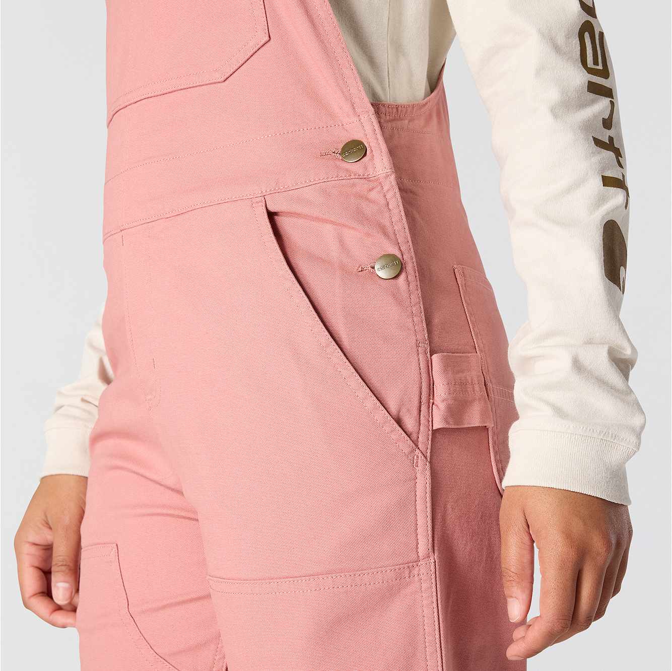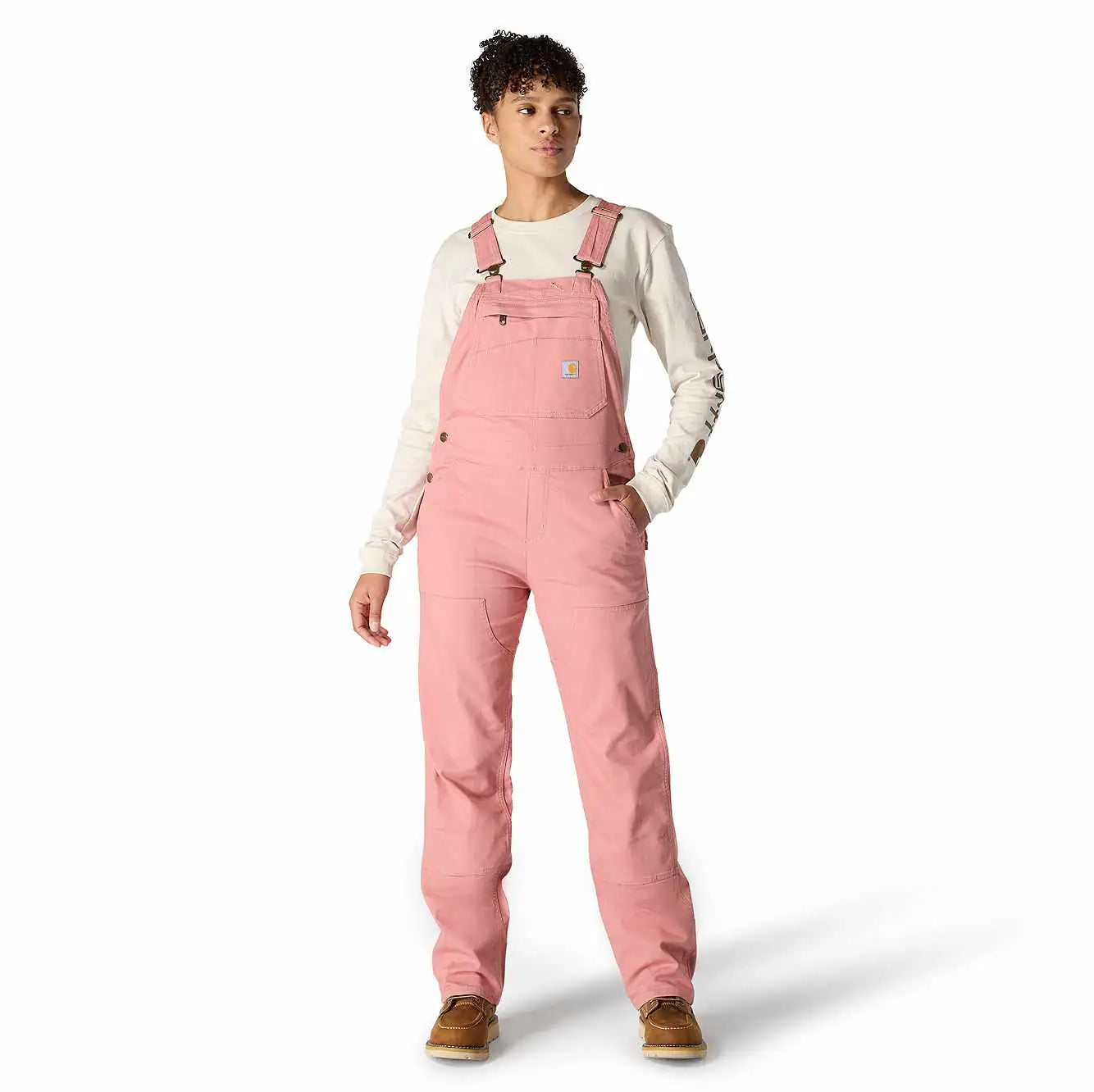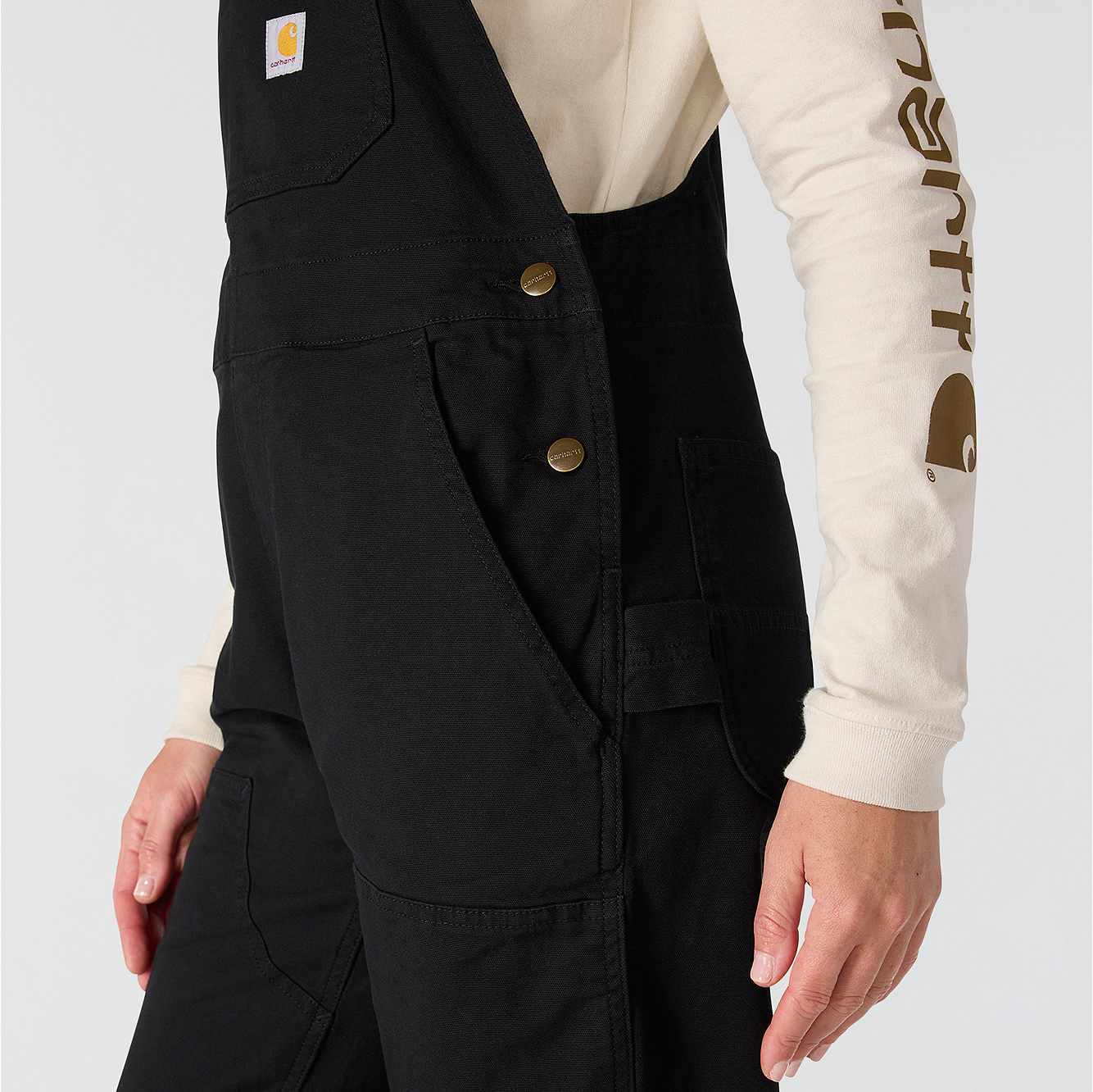 These women's bibs have the classic look of our duck overalls, but with a soft stretch-canvas construction that gives you full freedom to move. The zip pocket on the chest is large enough to fit a phone, and the several slip-in pockets have various sizes to accommodate your different tools. A double layer at the knees increases the durability factor plus gives you a place to stick your knee pads.