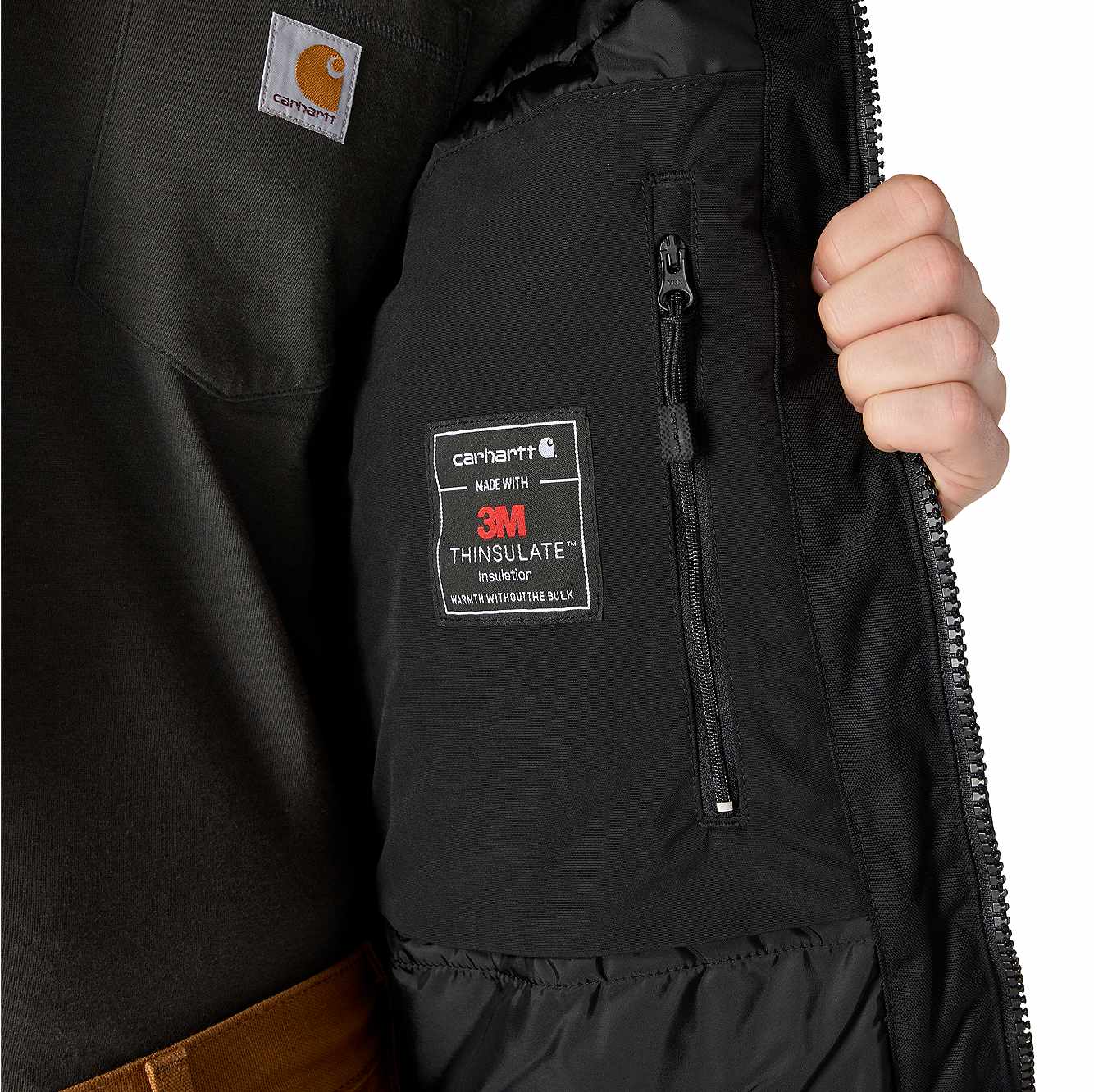 Carhartt Yukon Extremes gear is engineered for ultimate performance in the coldest conditions, and this insulated active jac is no exception. Triple stitched seams on the Cordura® shell provide rugged protection, while built-in wind- and rain-resistant technologies keep the elements at bay. There's lightweight insulation in the hood, body, and arms for comprehensive coverage that won't hinder your mobility and rib knit sleeve and waist cuffs keep warmth in and cold out. Reflective hits on the front and back help you stay seen in low light and limited visibility work conditions, while numerous interior and exterior pockets provide plenty of storage options.